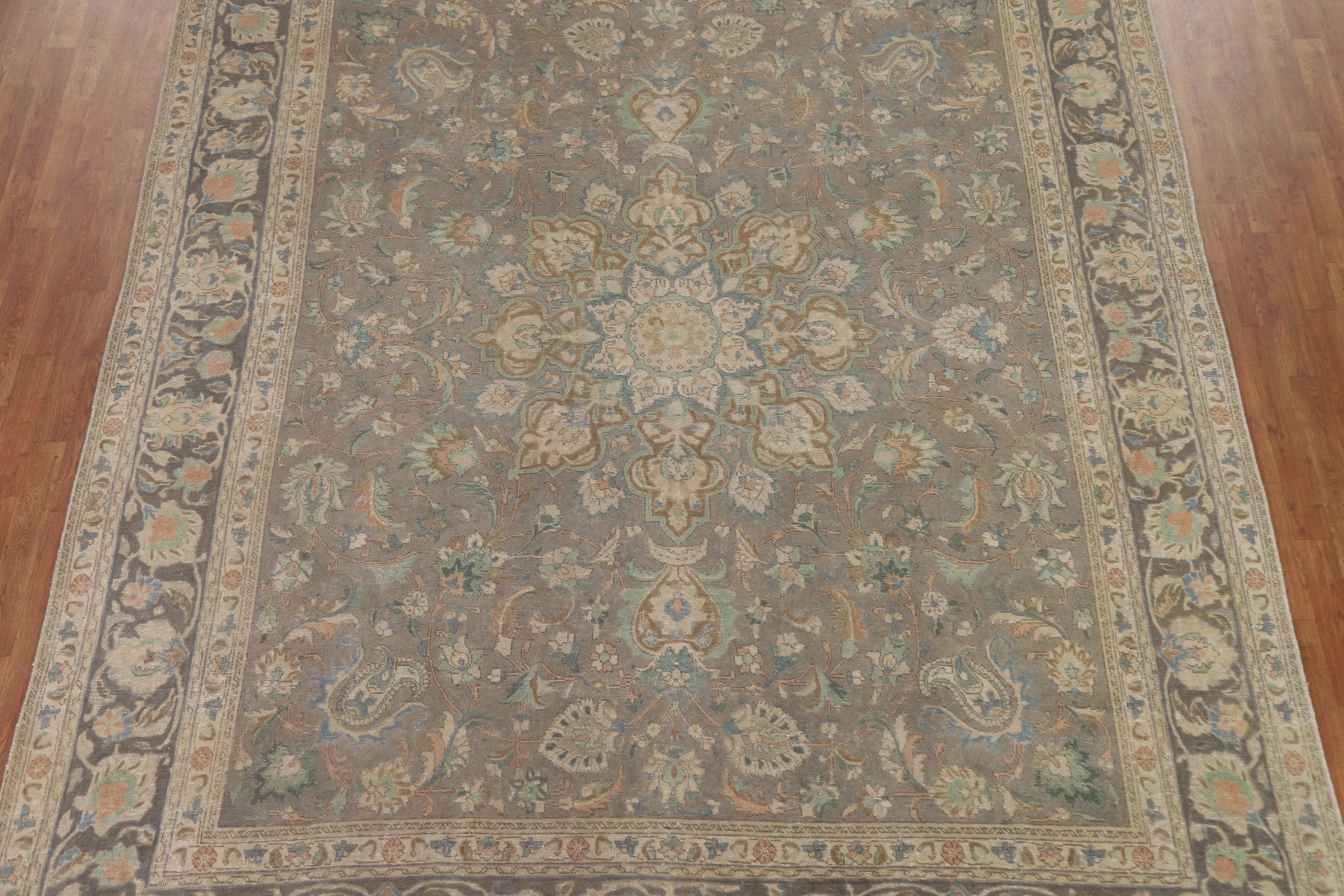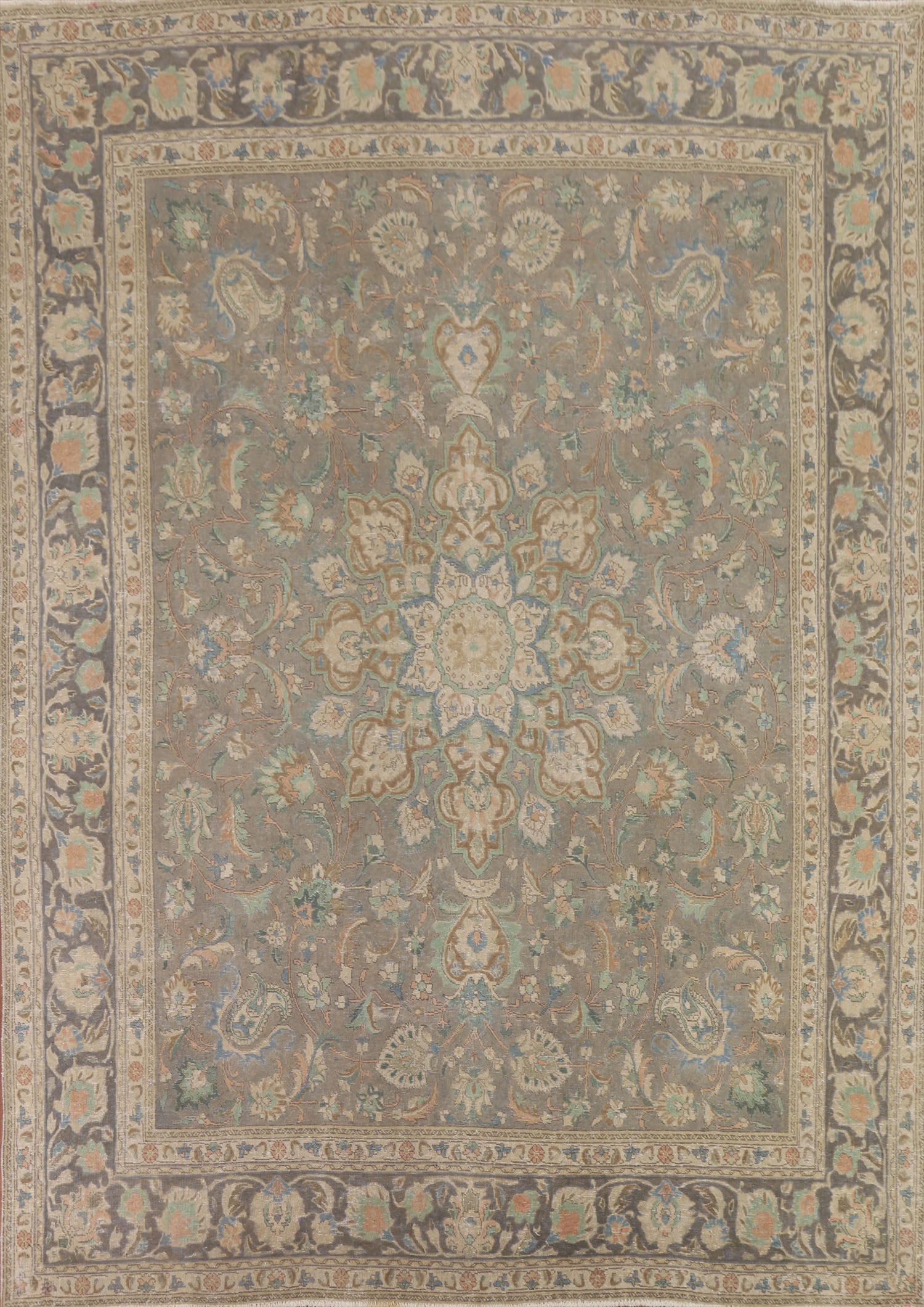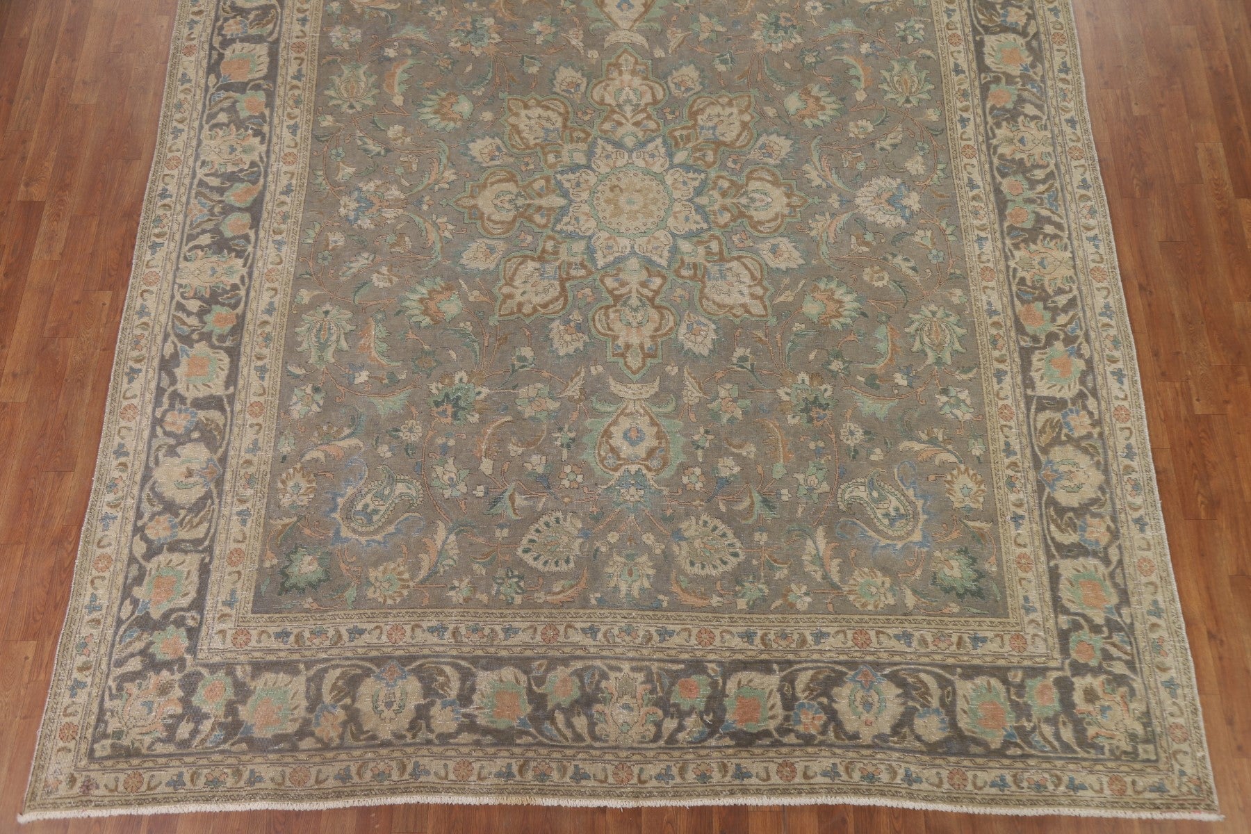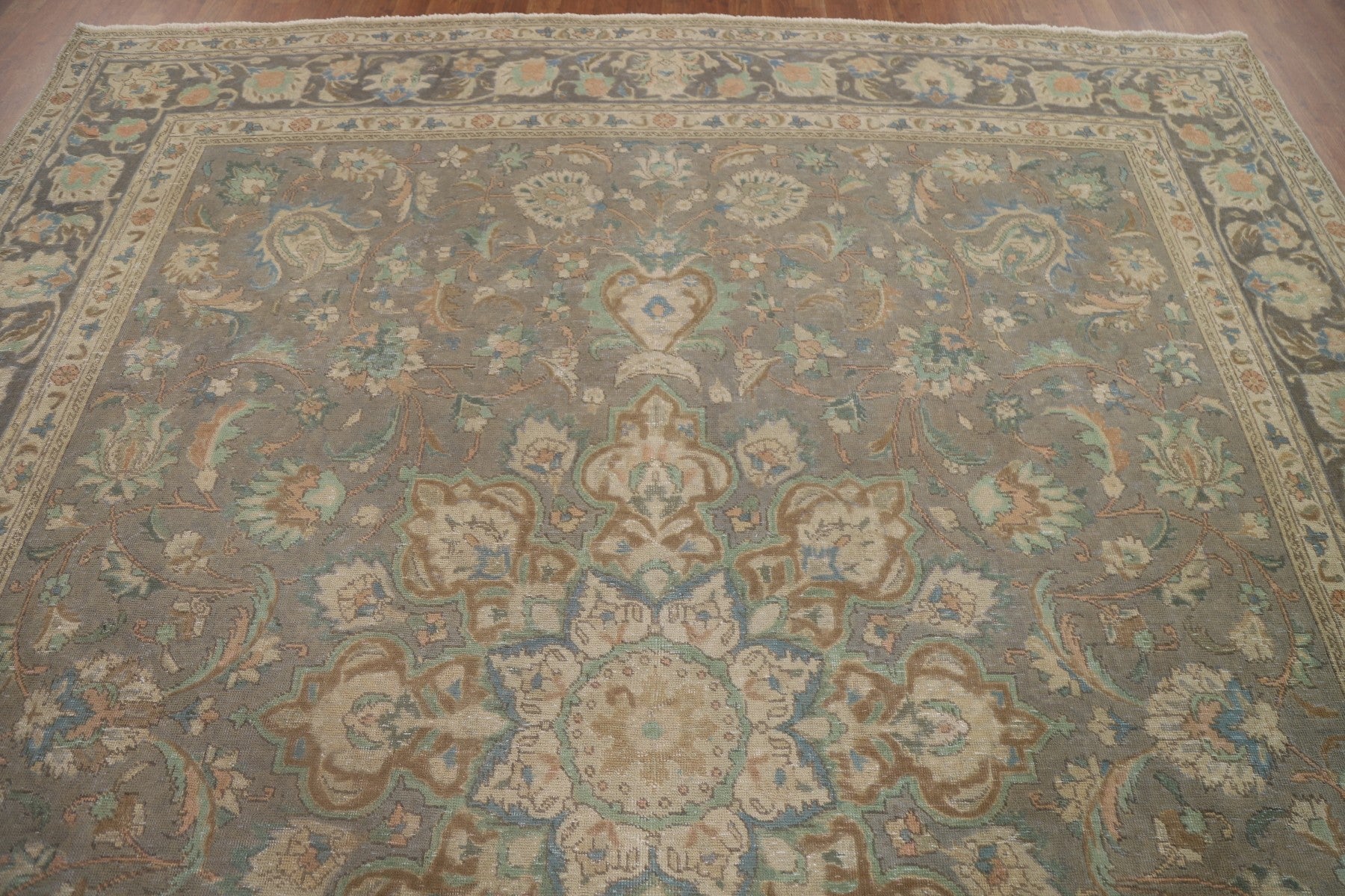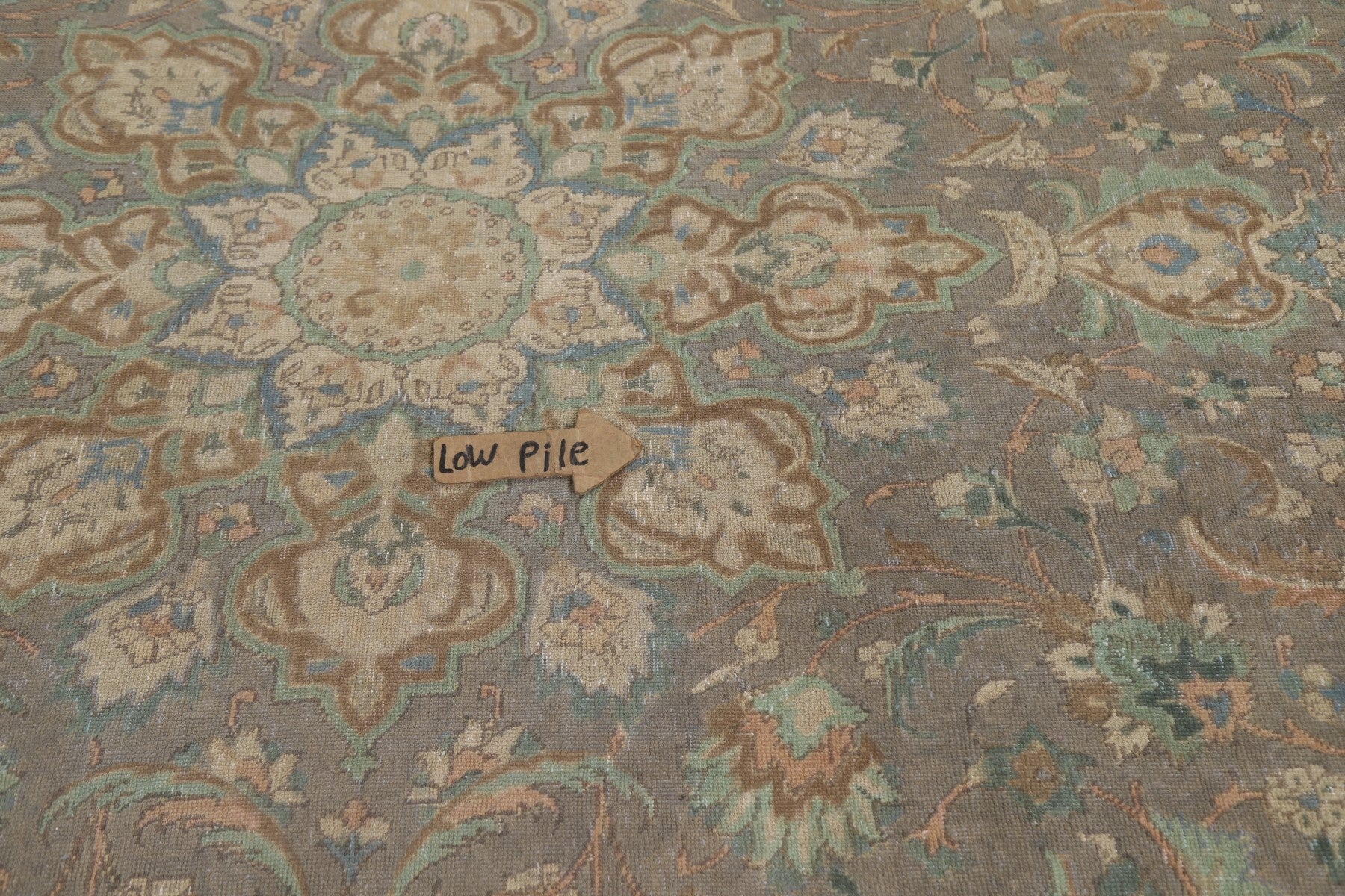 A Beautiful Genuine Persia ( Persia ) Tabriz rug is Hand Knotted by skillful weavers in Persia ( Persia ) with 100% Wool Material. This rug is in Very Good (Low Pile) condition. dimensions are 11' 3'' X 9' 3'' in foot and 343 X 282 in centimeter. the primary color is Brown.