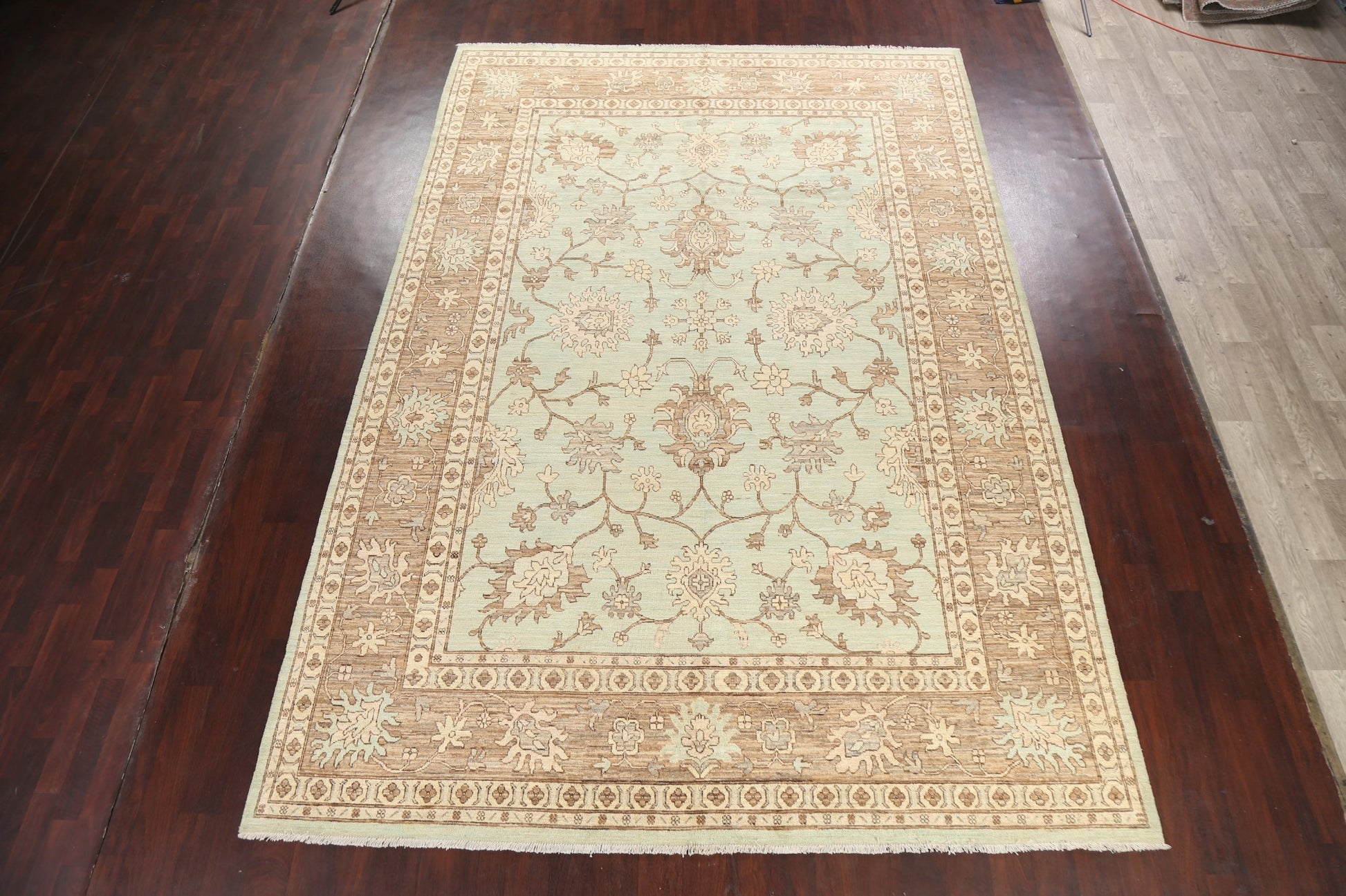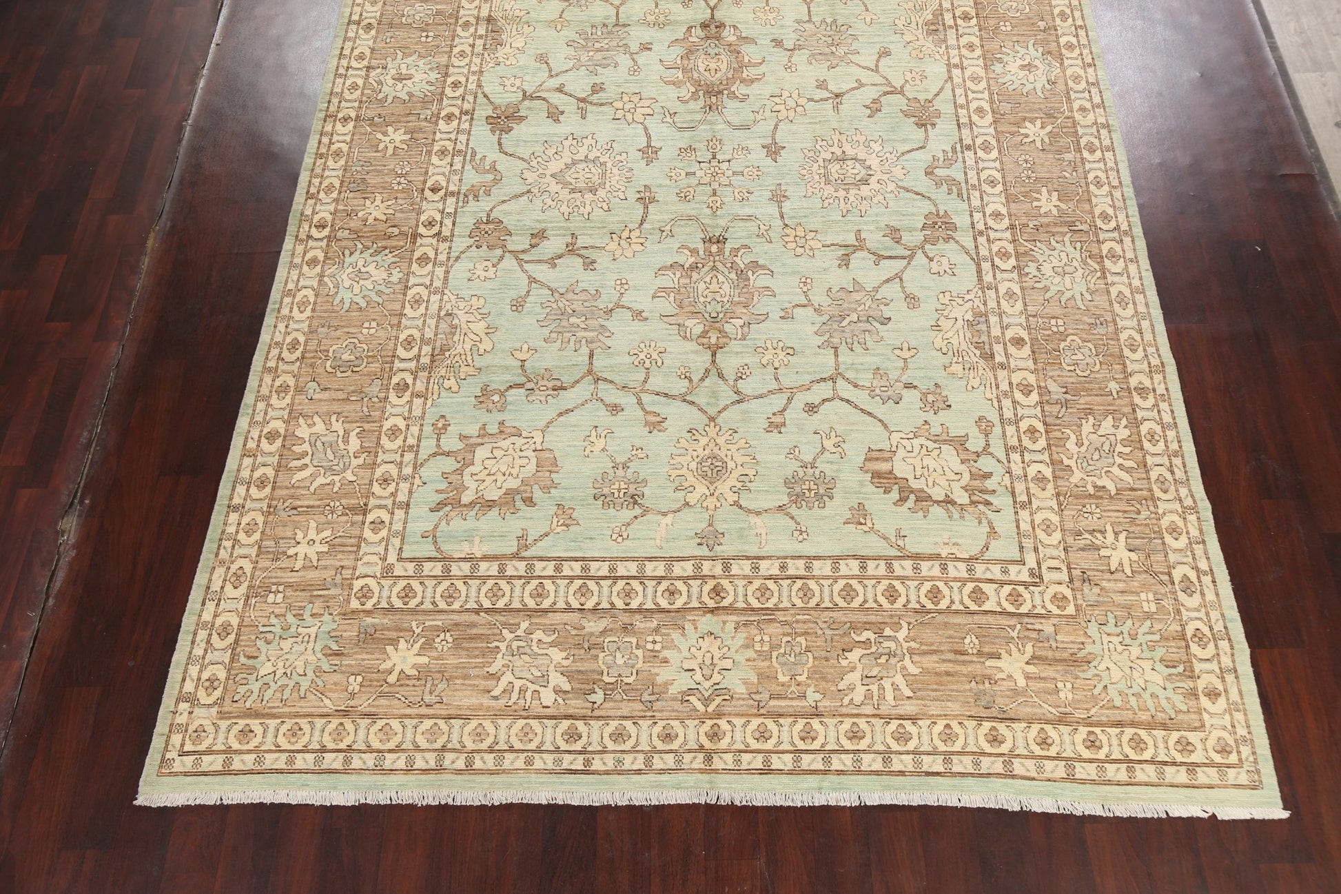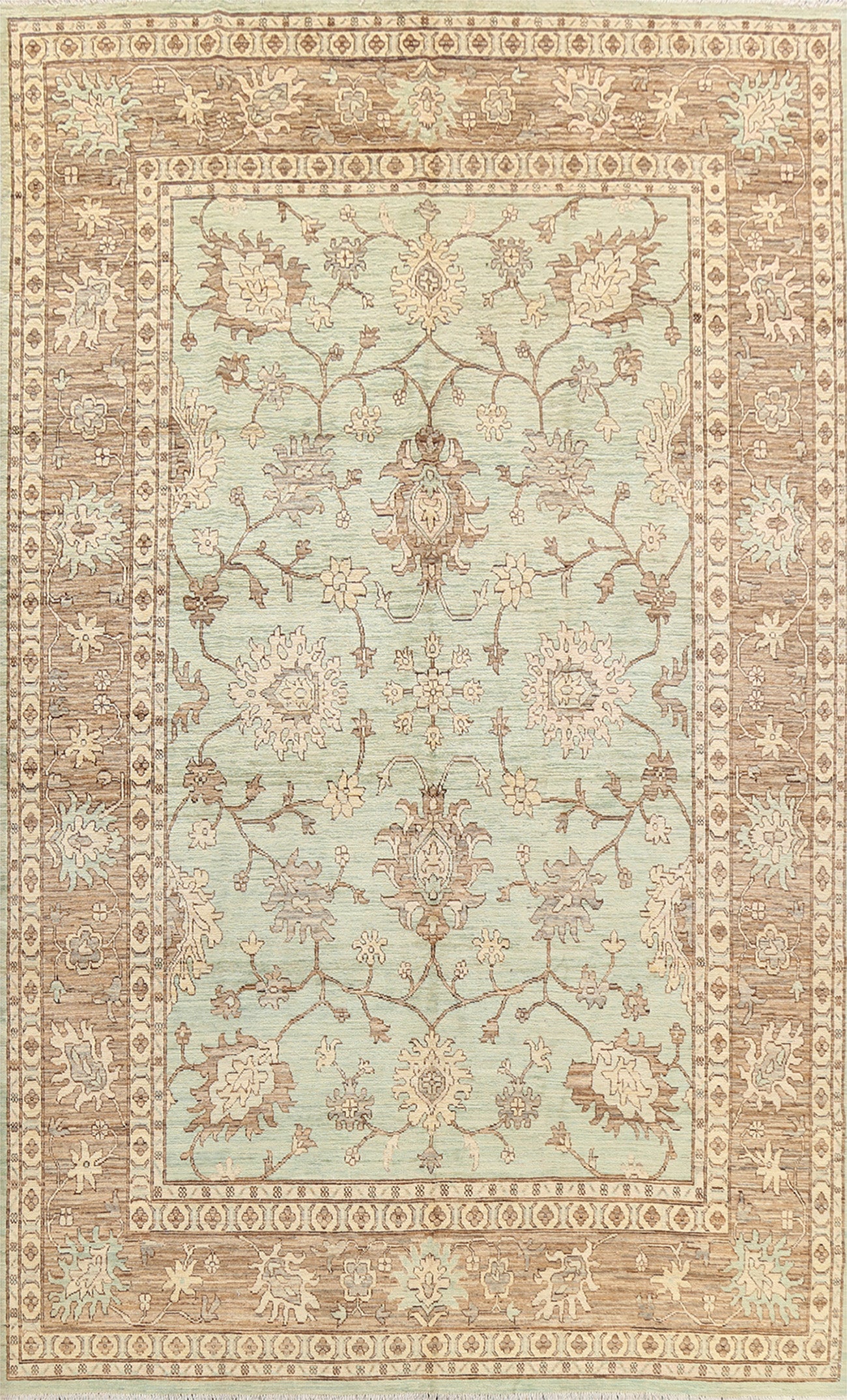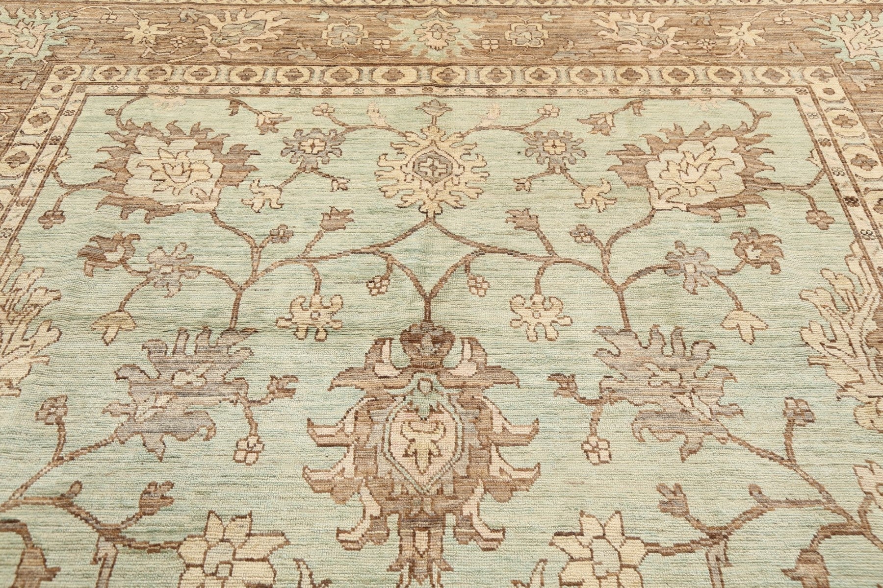 A Beautiful Genuine Pakistan Ziegler rug is Hand Knotted by skillful weavers in Pakistan with 100% Wool Material. This rug is in New, First Quality condition. dimensions are 12' 11'' X 8' 9'' in foot and 394 X 267 in centimeter. the primary color is Green.
