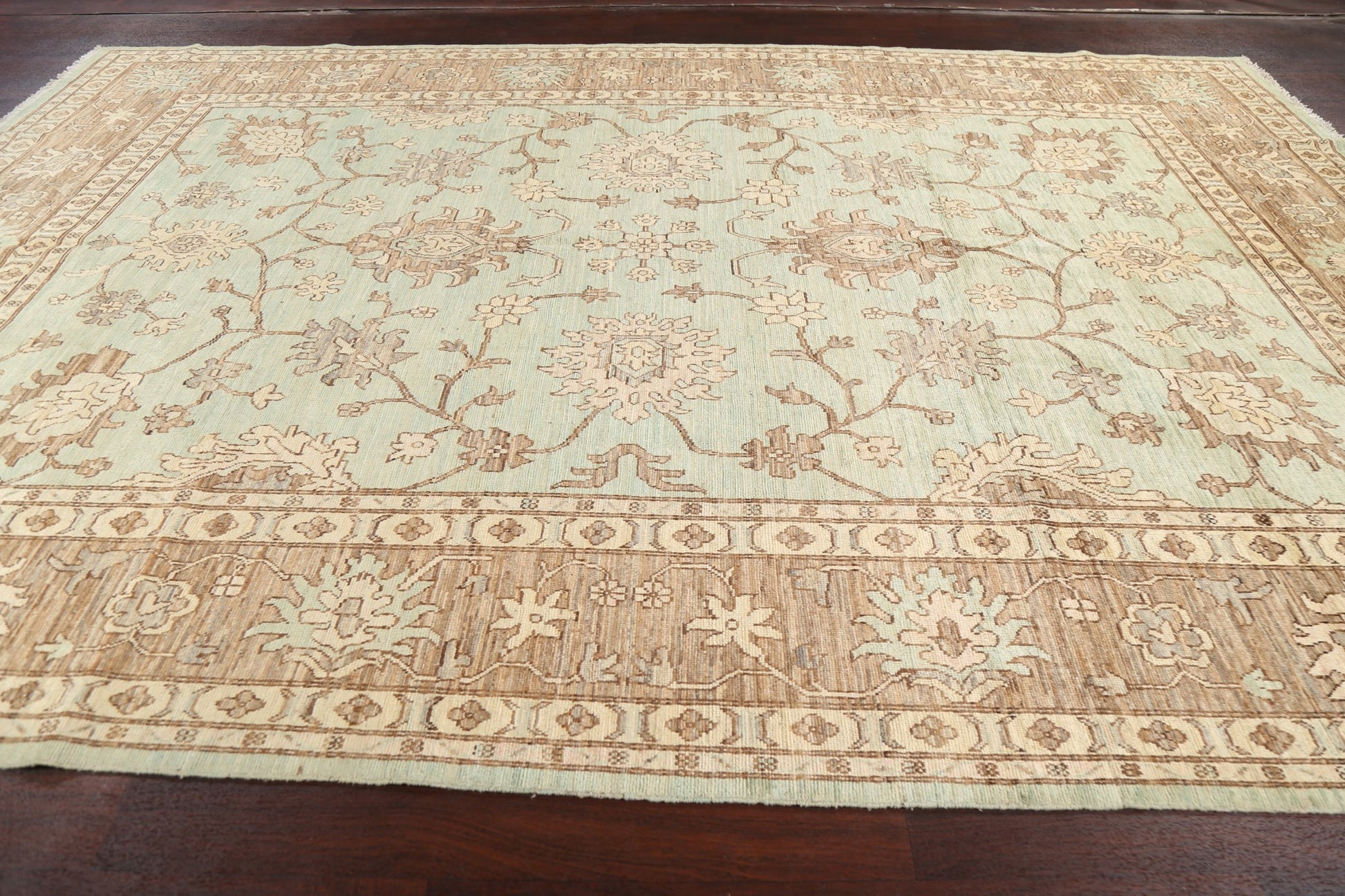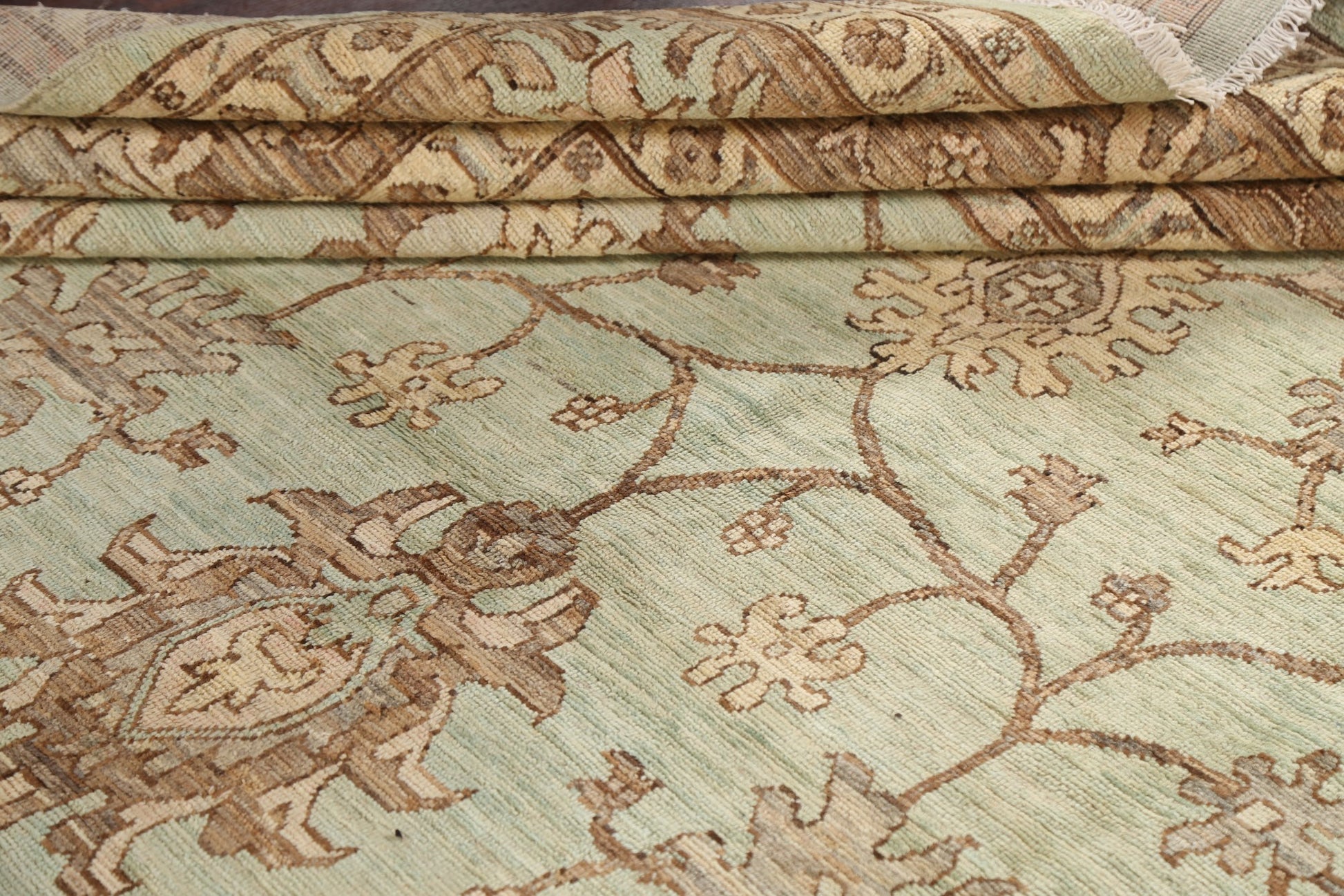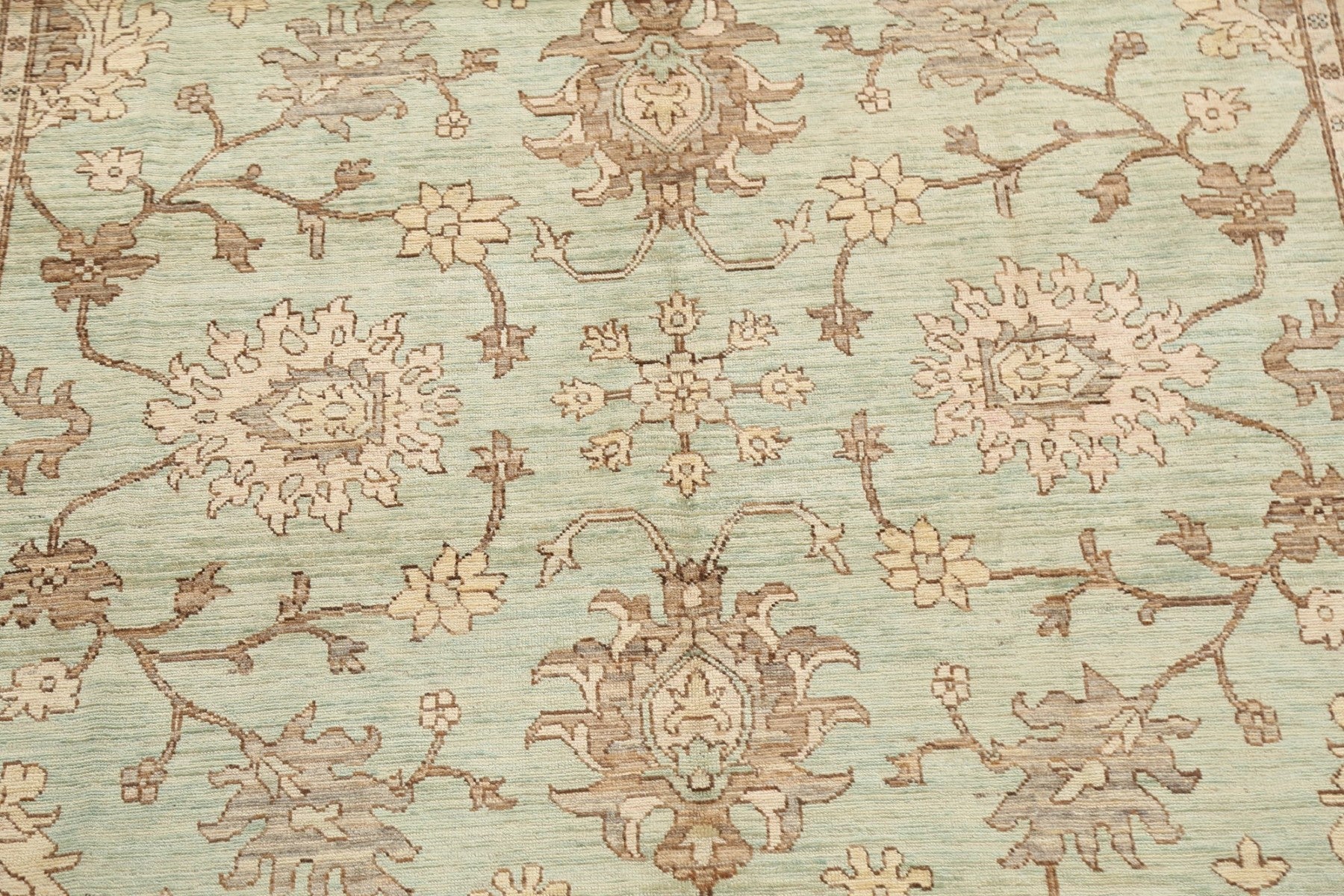 A Beautiful Genuine Pakistan Ziegler rug is Hand Knotted by skillful weavers in Pakistan with 100% Wool Material. This rug is in New, First Quality condition. dimensions are 12' 11'' X 8' 9'' in foot and 394 X 267 in centimeter. the primary color is Green.