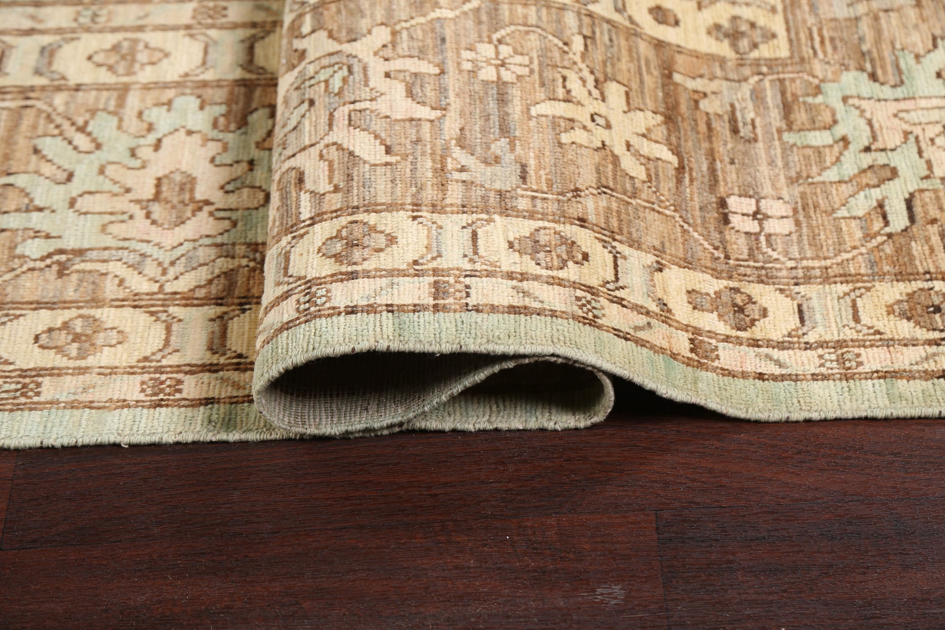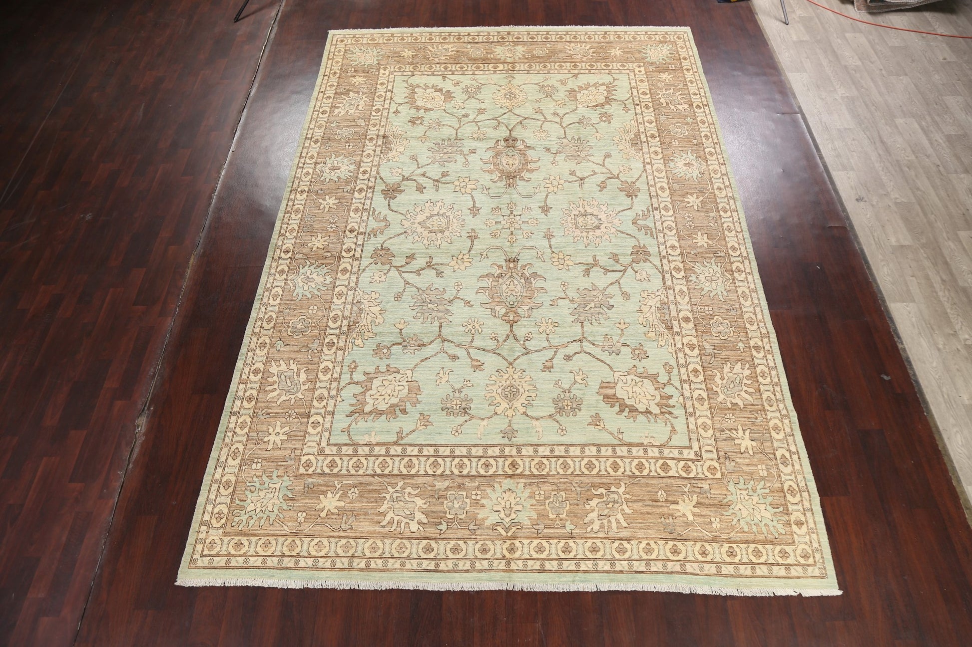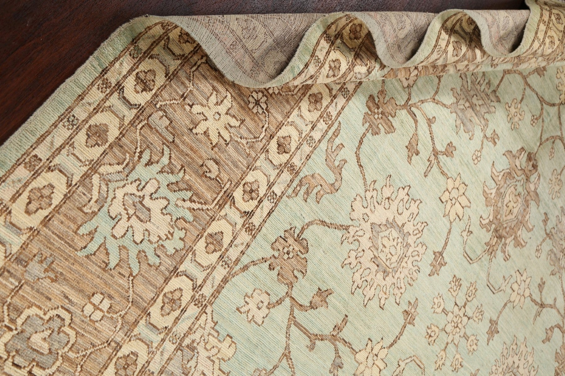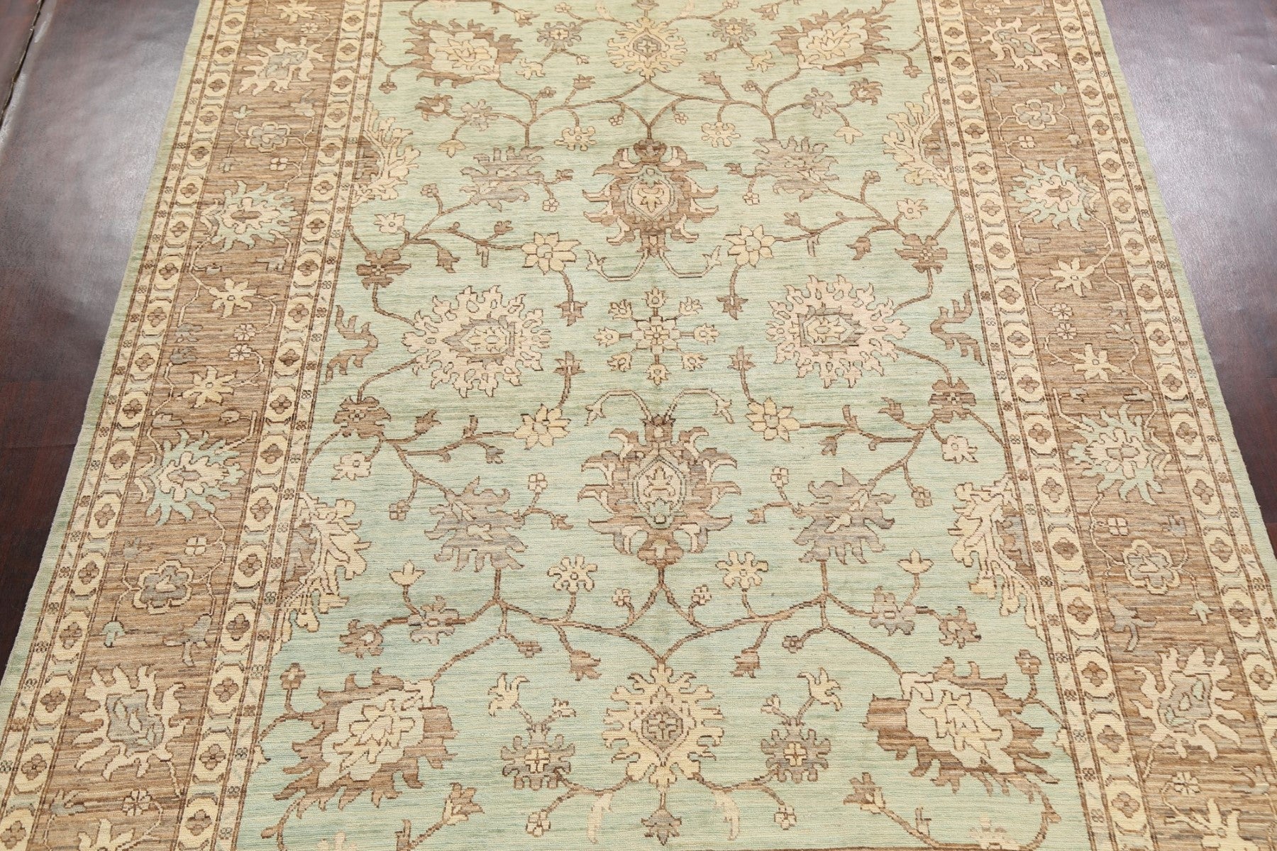A Beautiful Genuine Pakistan Ziegler rug is Hand Knotted by skillful weavers in Pakistan with 100% Wool Material. This rug is in New, First Quality condition. dimensions are 12' 11'' X 8' 9'' in foot and 394 X 267 in centimeter. the primary color is Green.