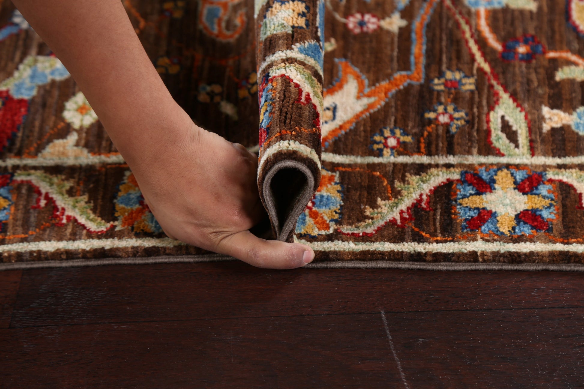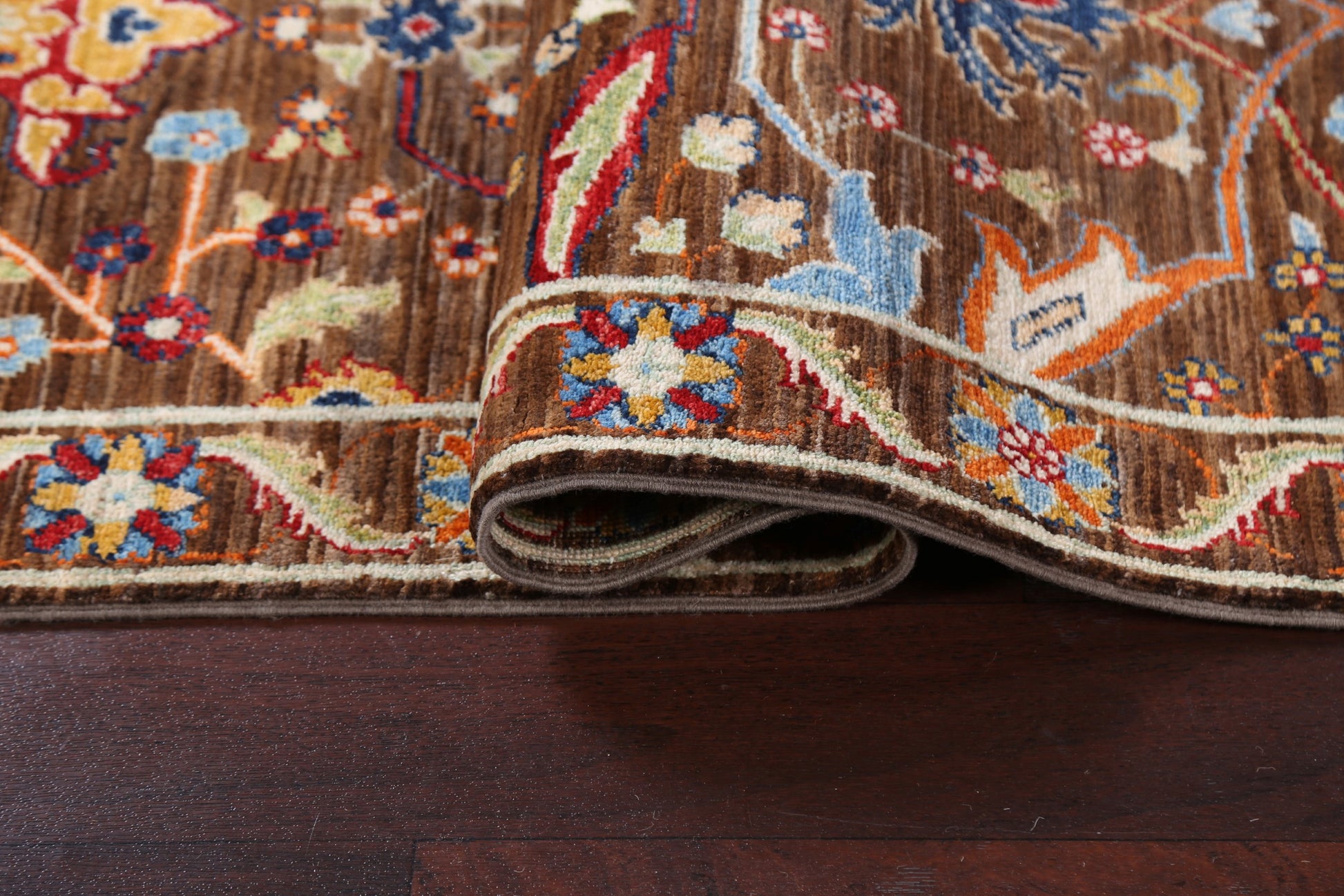 A Beautiful Genuine Pakistan Ziegler rug is Hand Knotted by skillful weavers in Pakistan with 100% Wool Material. This rug is in New, First Quality condition. dimensions are 9' 7'' X 2' 7'' in foot and 292 X 79 in centimeter. the primary color is Brown.
