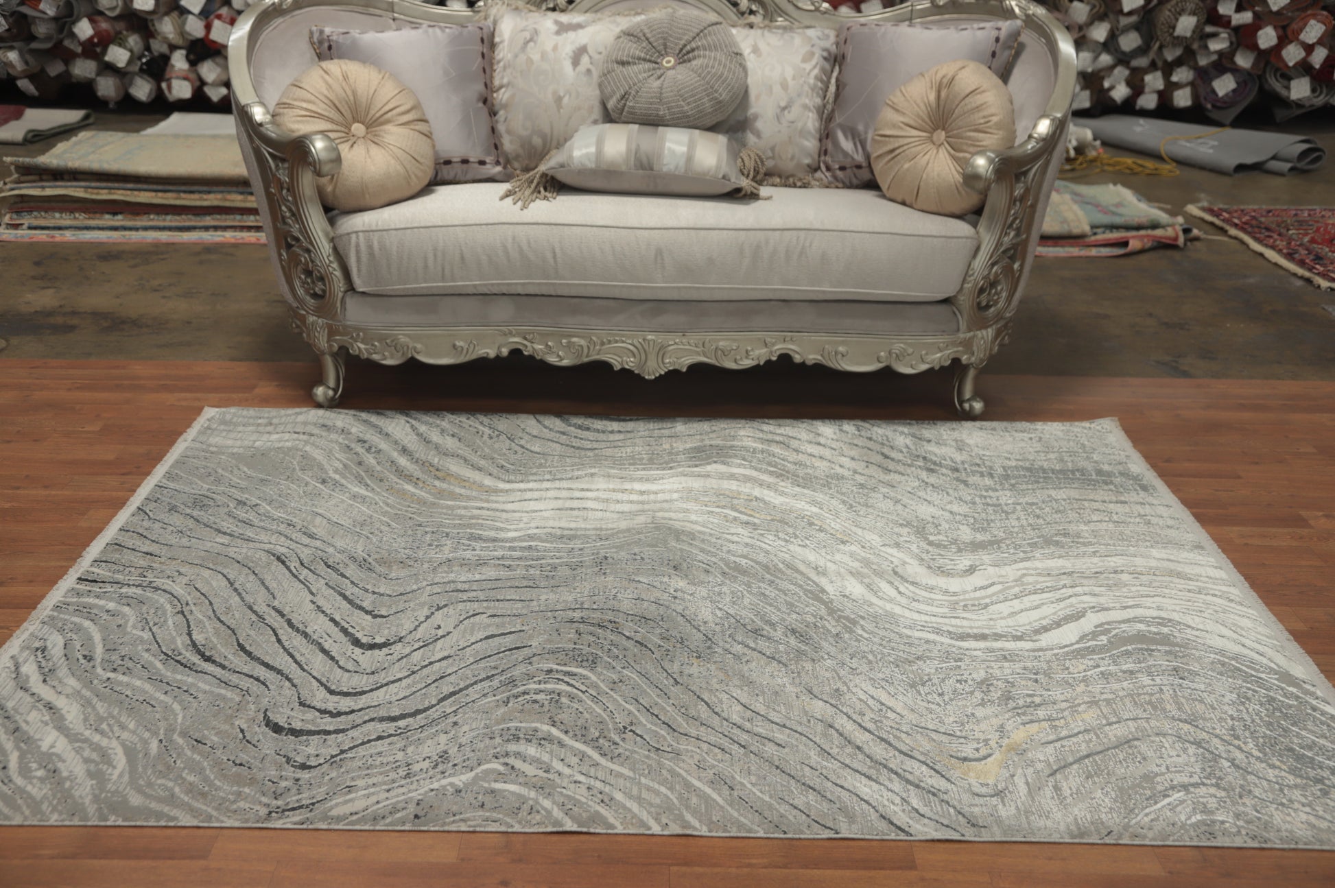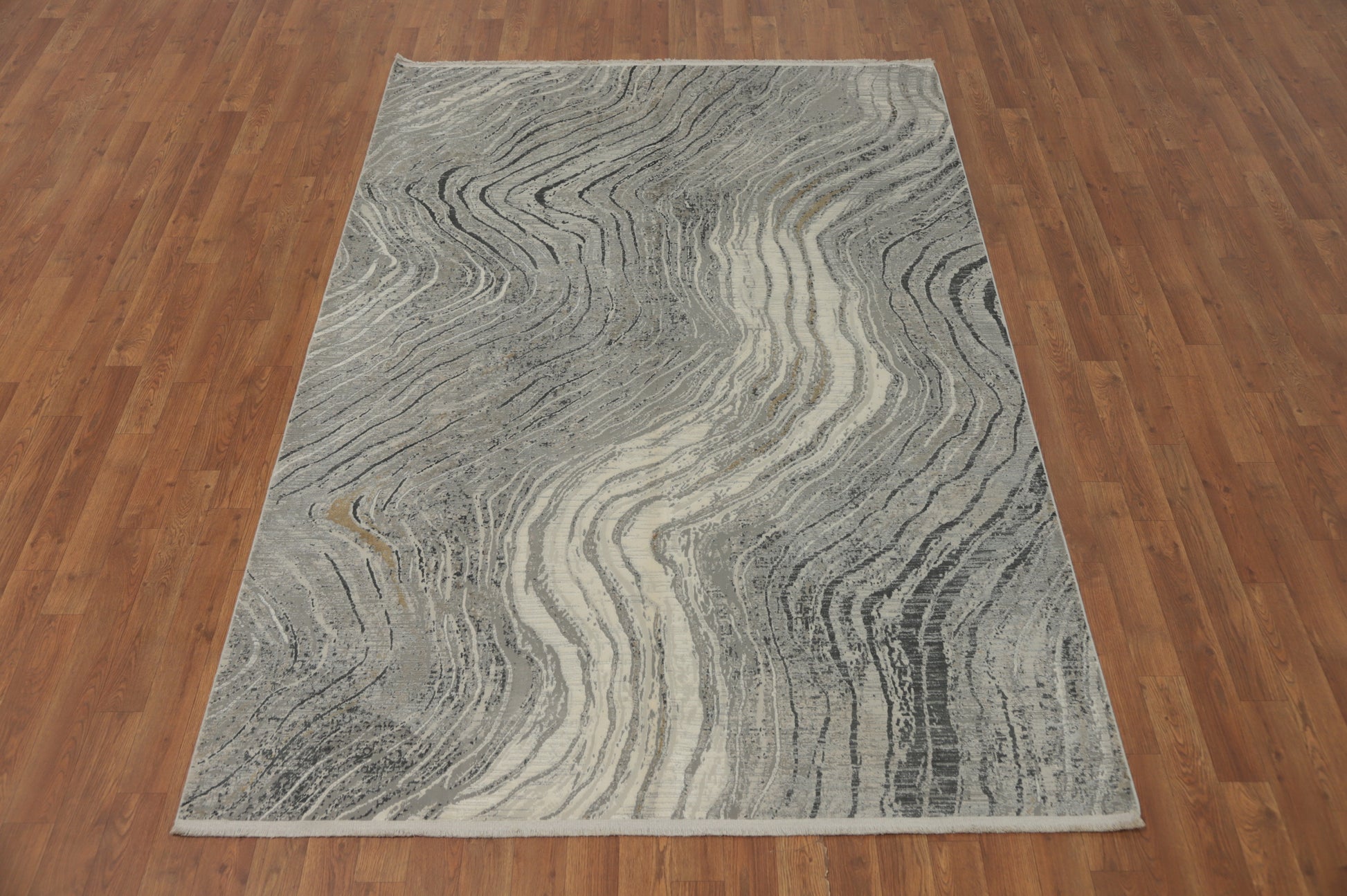 Flowing Lines Abstract Contemporary Gray Design Rug 5x7
