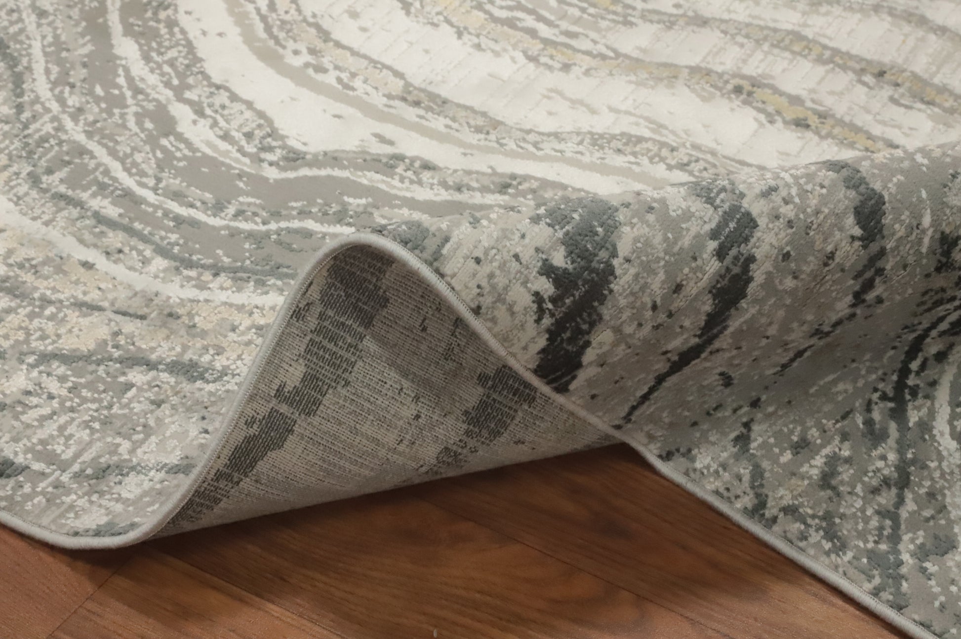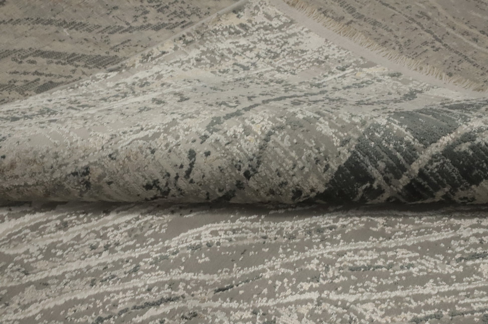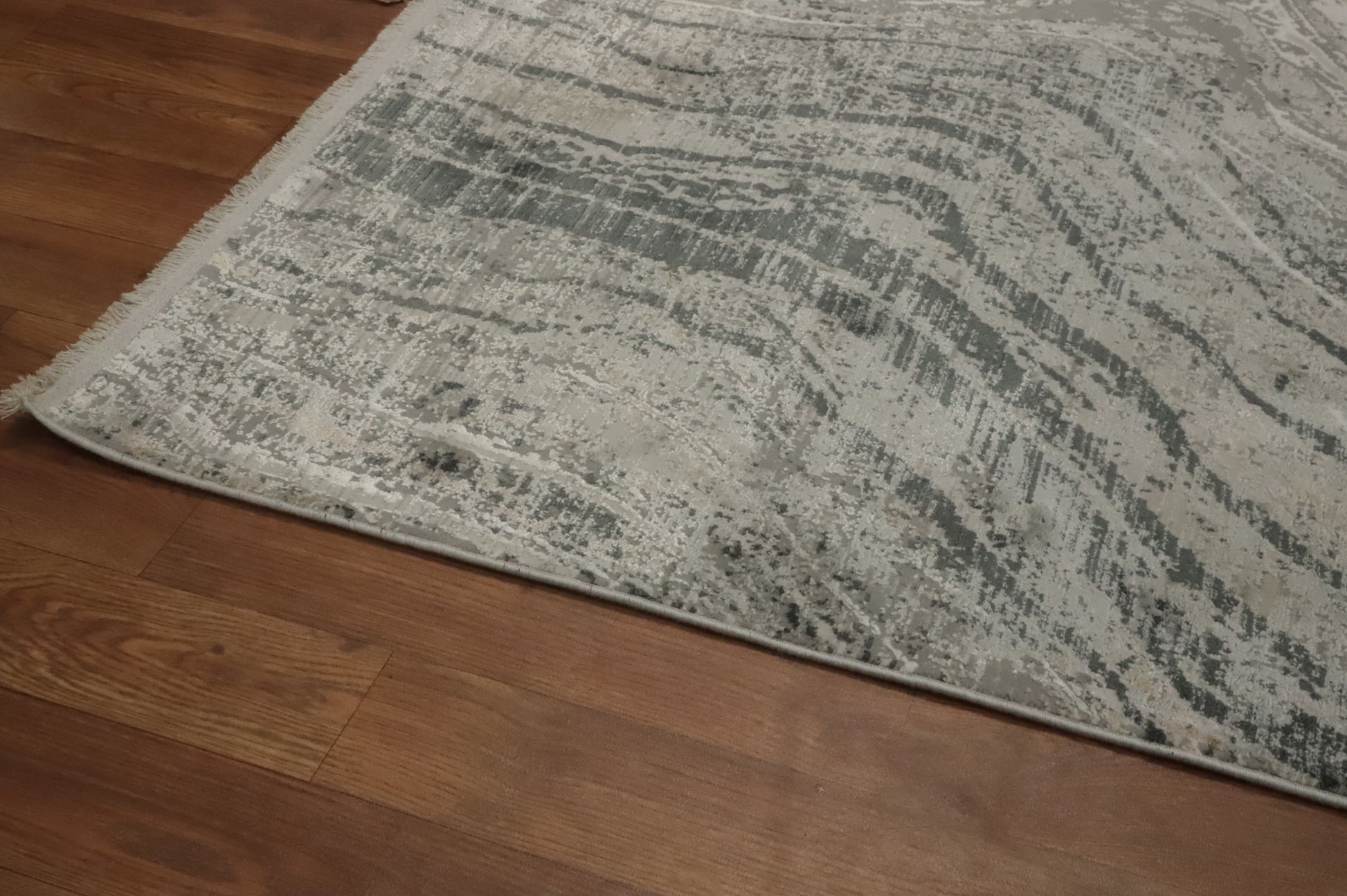 A Beautiful Genuine Turkey Modern rug is Machine Made by skillful weavers in Turkey with Polyester Material. This rug is in New, First Quality condition. dimensions are 7' 5'' X 5' 2'' in foot and 226 X 157 in centimeter. the primary color is Greys & Charcoal.