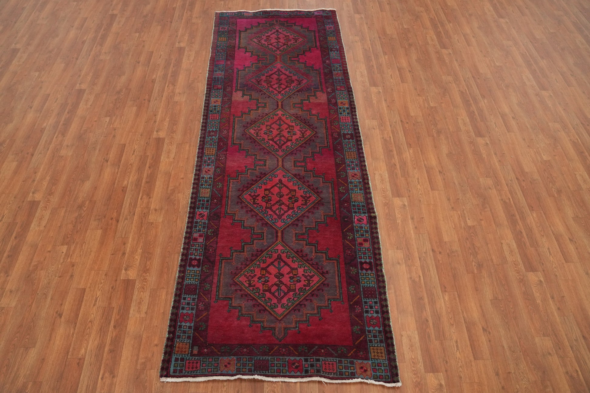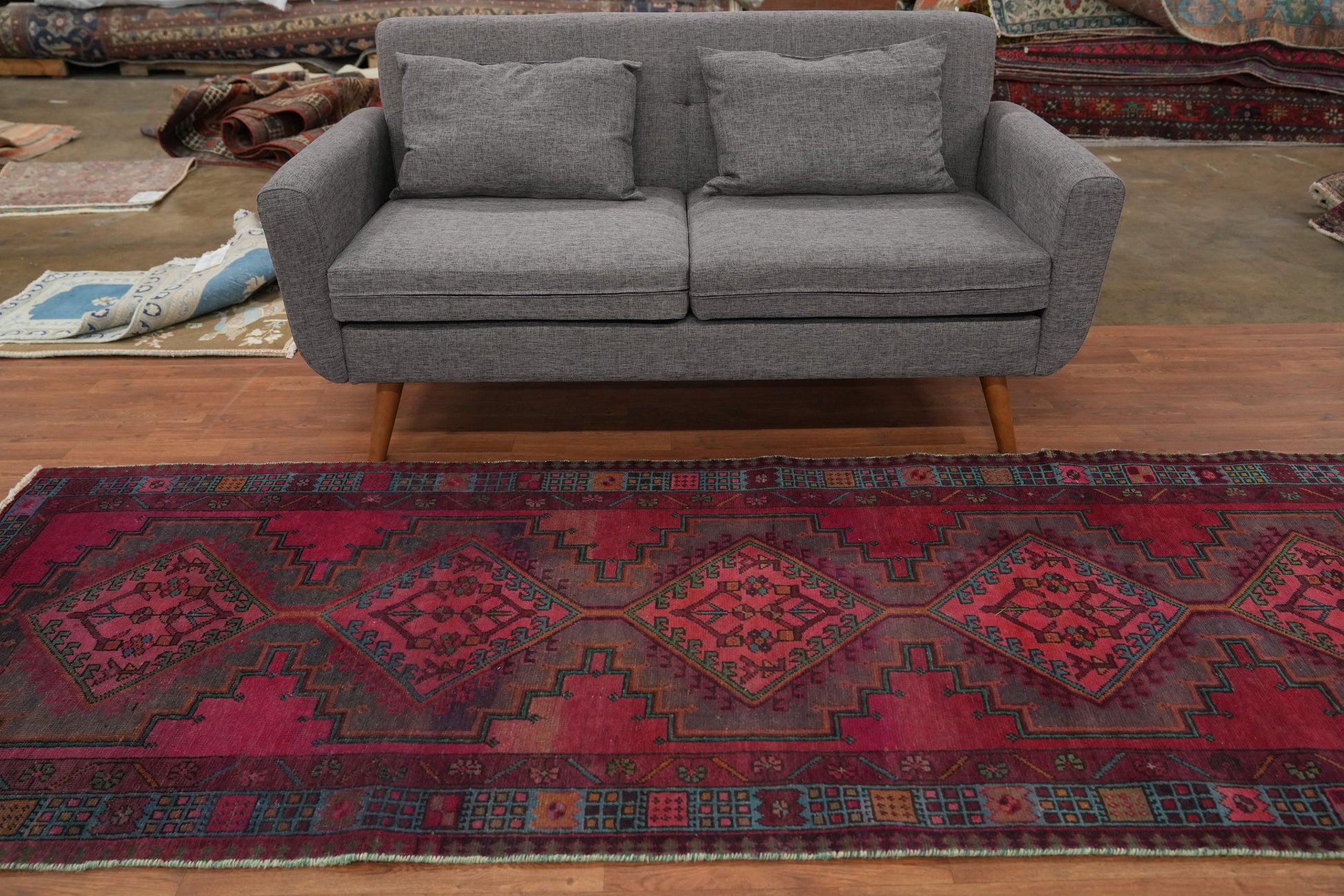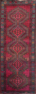Fuchsia Pink Geometric Ardebil Persian Runner Rug 4x10