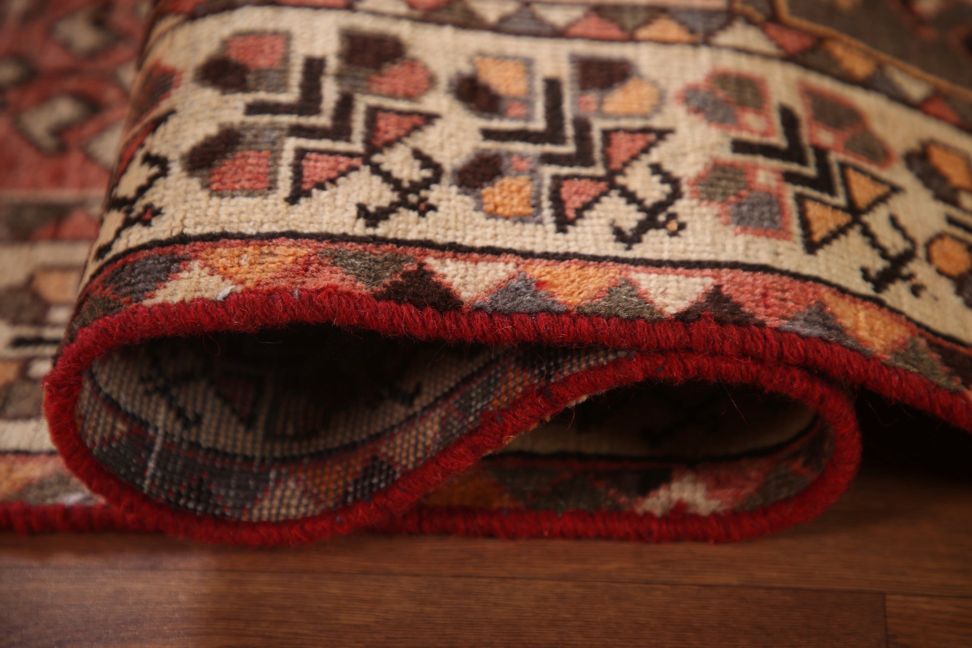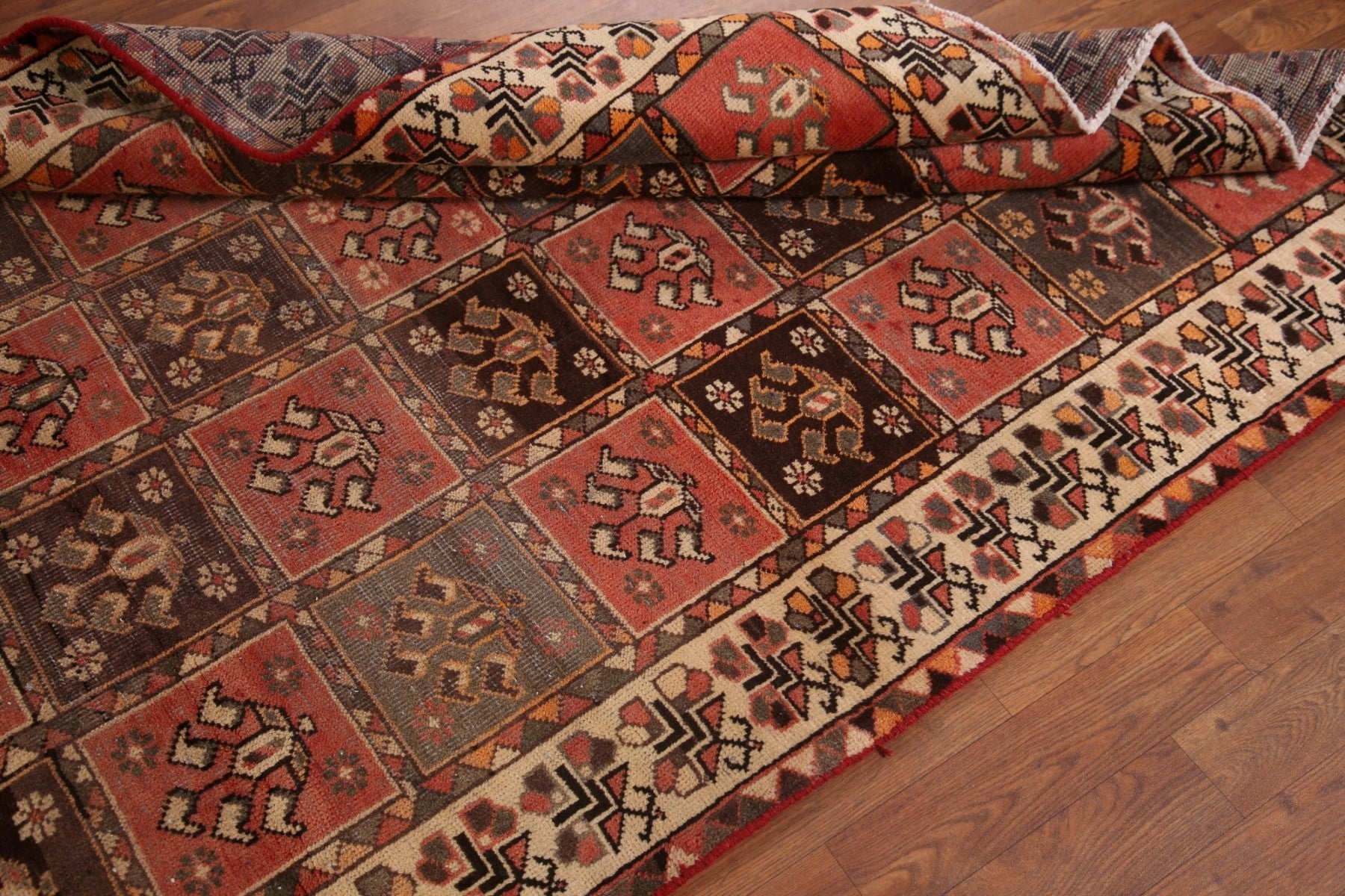 A Beautiful Genuine Persia ( Persia ) Bakhtiari rug is Hand Knotted by skillful weavers in Persia ( Persia ) with 100% Wool Material. This rug is in Very Good (Low Pile-Abrash) condition. dimensions are 9' 3'' X 4' 9'' in foot and 282 X 145 in centimeter. the primary color is Red.