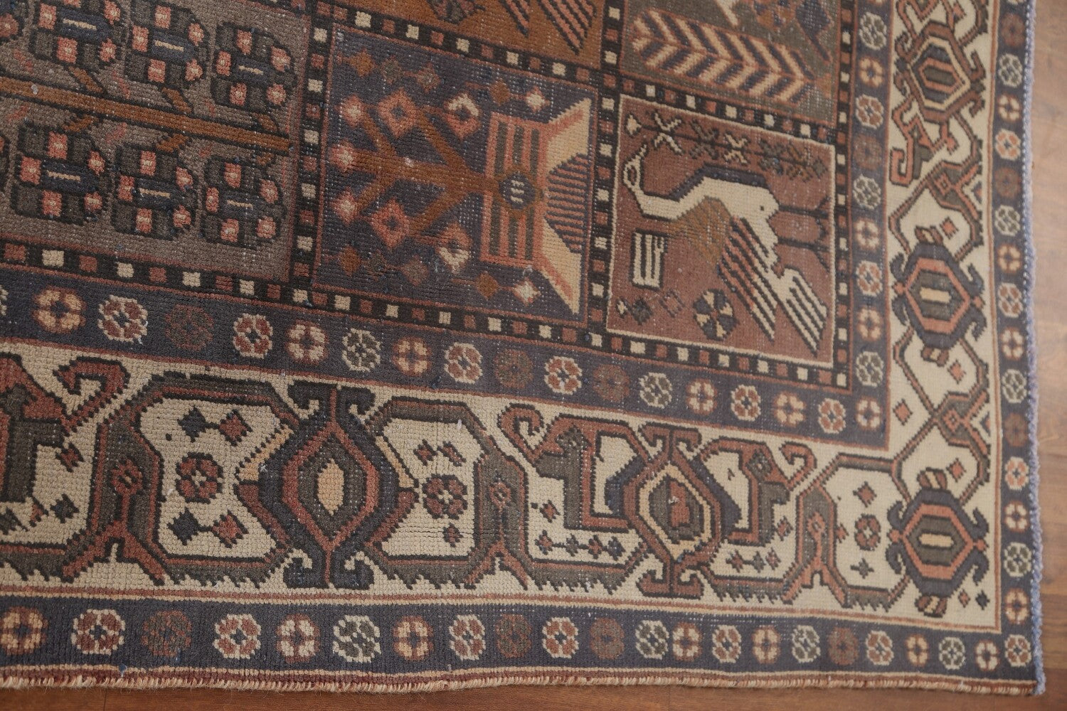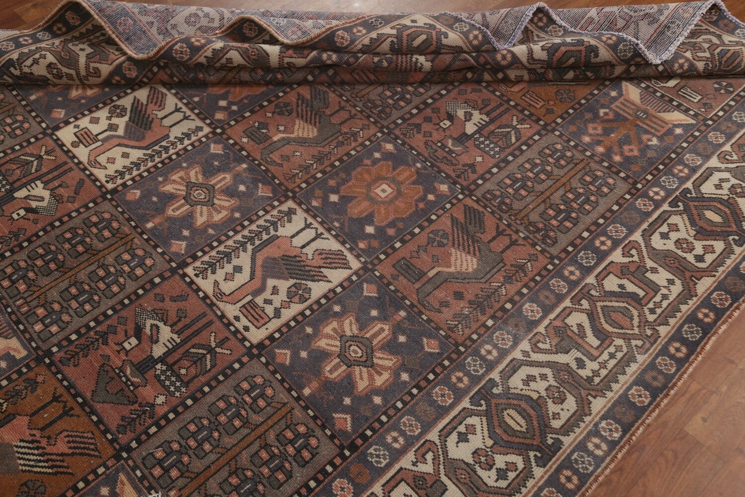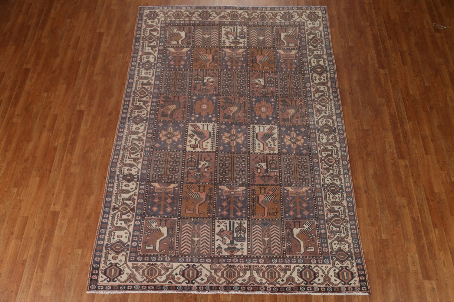 A Beautiful Genuine Persia ( Persia ) Bakhtiari rug is Hand Knotted by skillful weavers in Persia ( Persia ) with 100% Wool Material. This rug is in Very Good ( Low Pile ) condition. dimensions are 9' 9'' X 6' 9'' in foot and 297 X 206 in centimeter. the primary color is Multi-Colored.