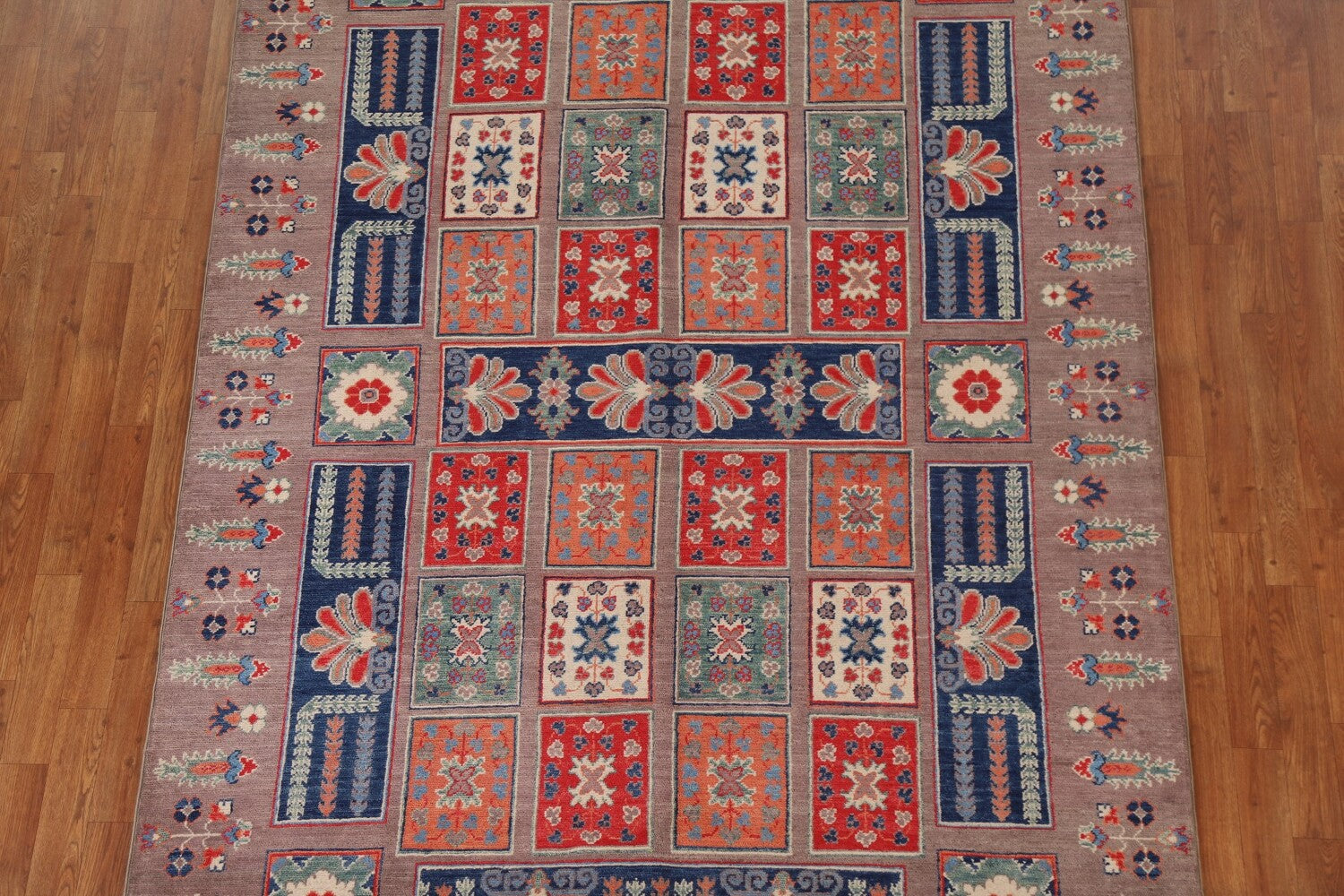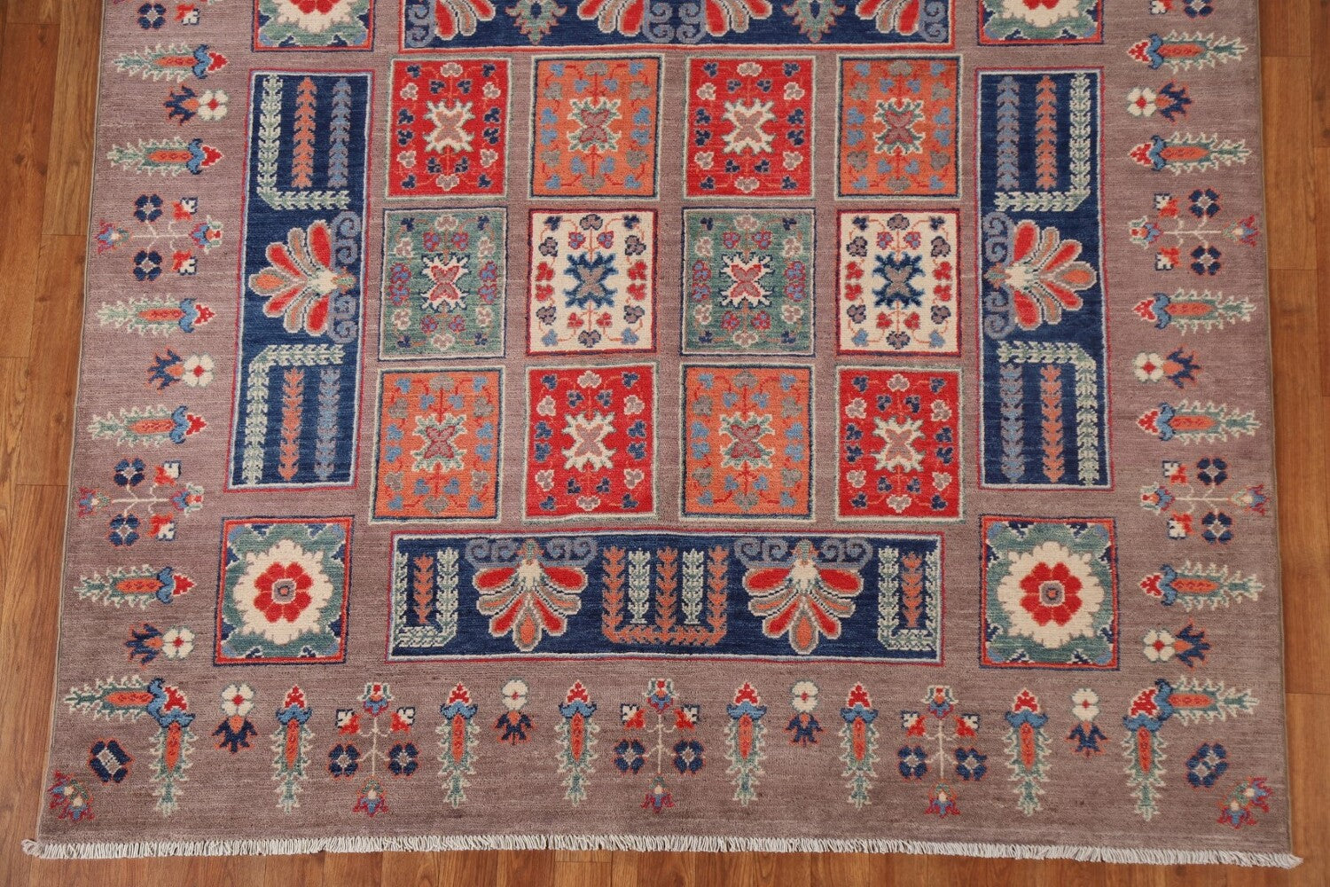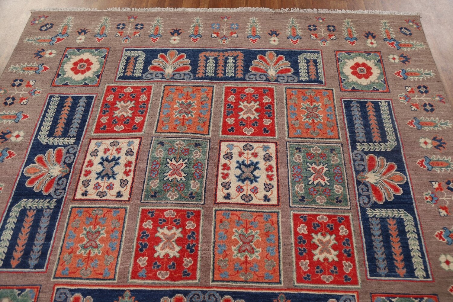 A Beautiful Genuine Pakistan Kazak rug is Hand Knotted by skillful weavers in Pakistan with 100% Wool Material. This rug is in New, First Quality condition. dimensions are 8' 11'' X 6' 0'' in foot and 272 X 183 in centimeter. the primary color is Brown.