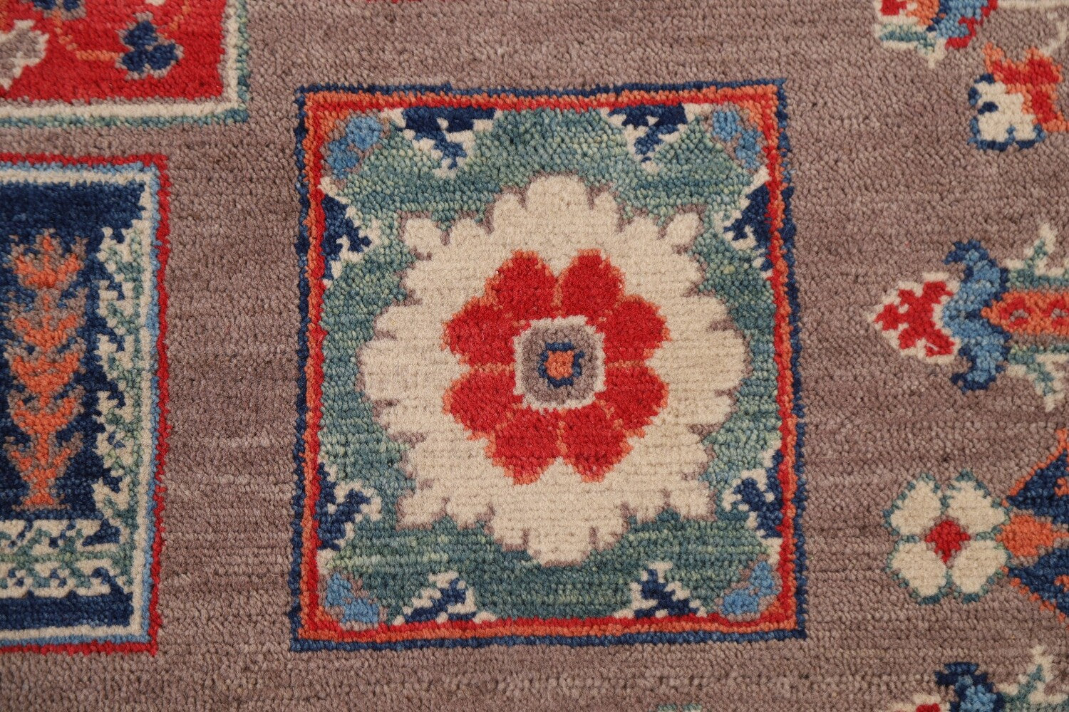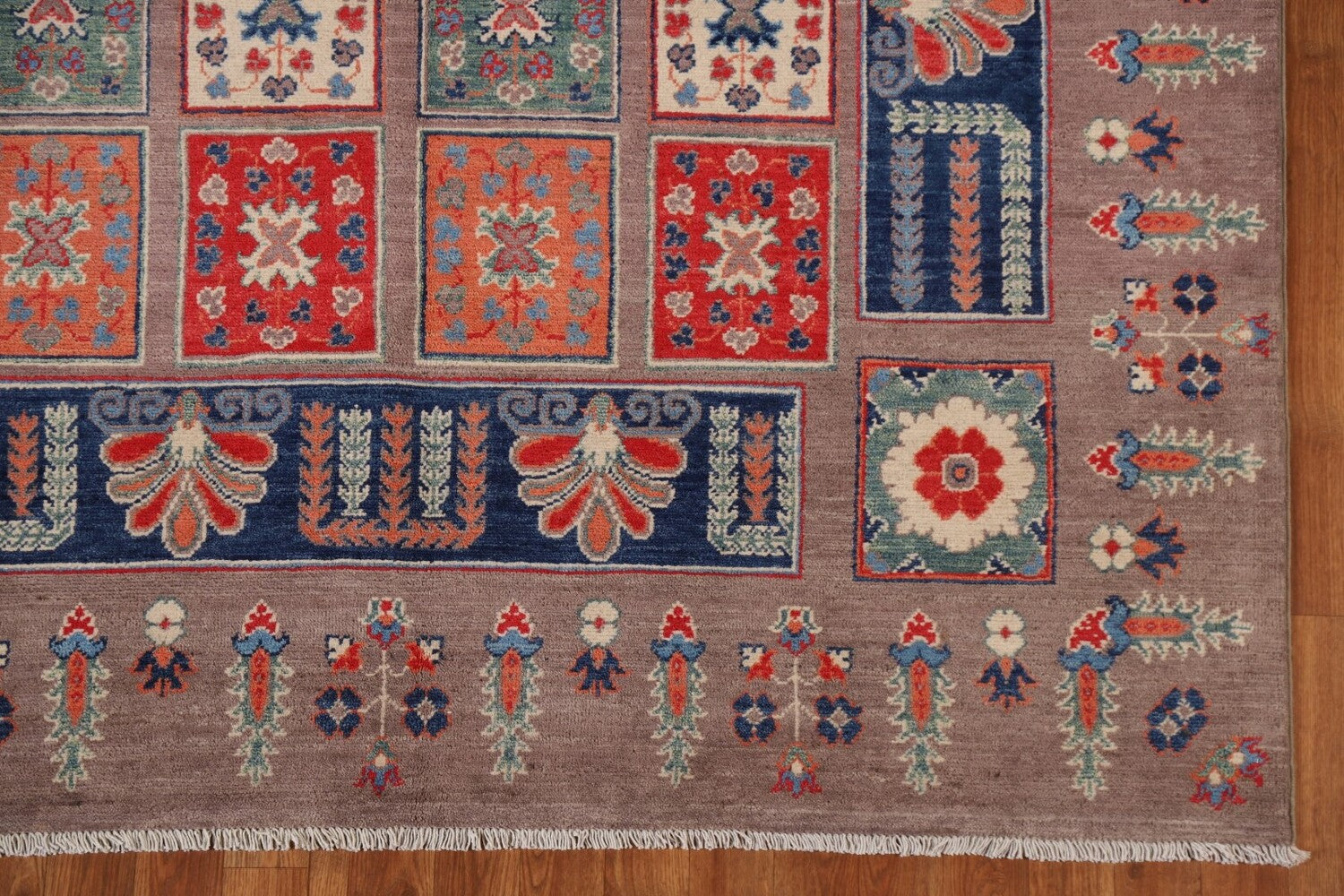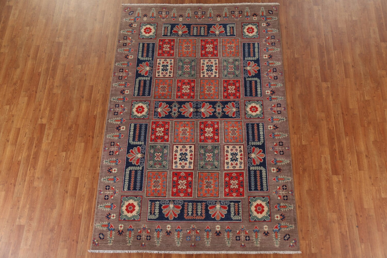A Beautiful Genuine Pakistan Kazak rug is Hand Knotted by skillful weavers in Pakistan with 100% Wool Material. This rug is in New, First Quality condition. dimensions are 8' 11'' X 6' 0'' in foot and 272 X 183 in centimeter. the primary color is Brown.
