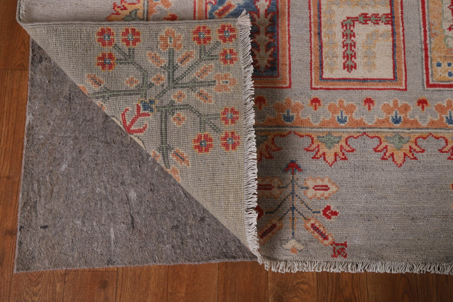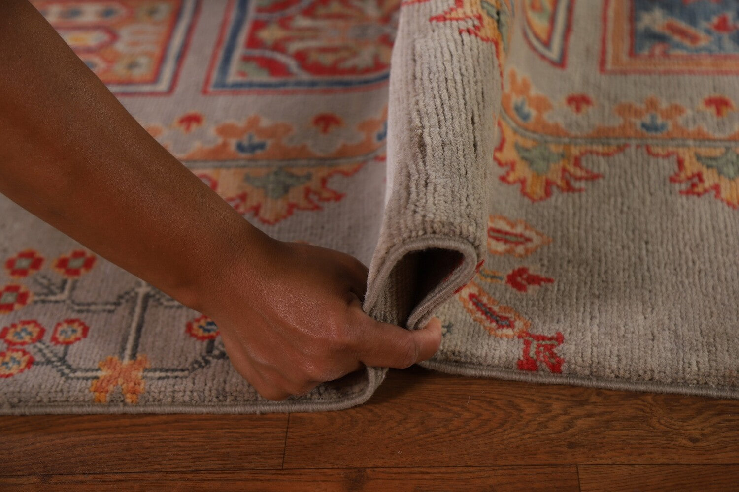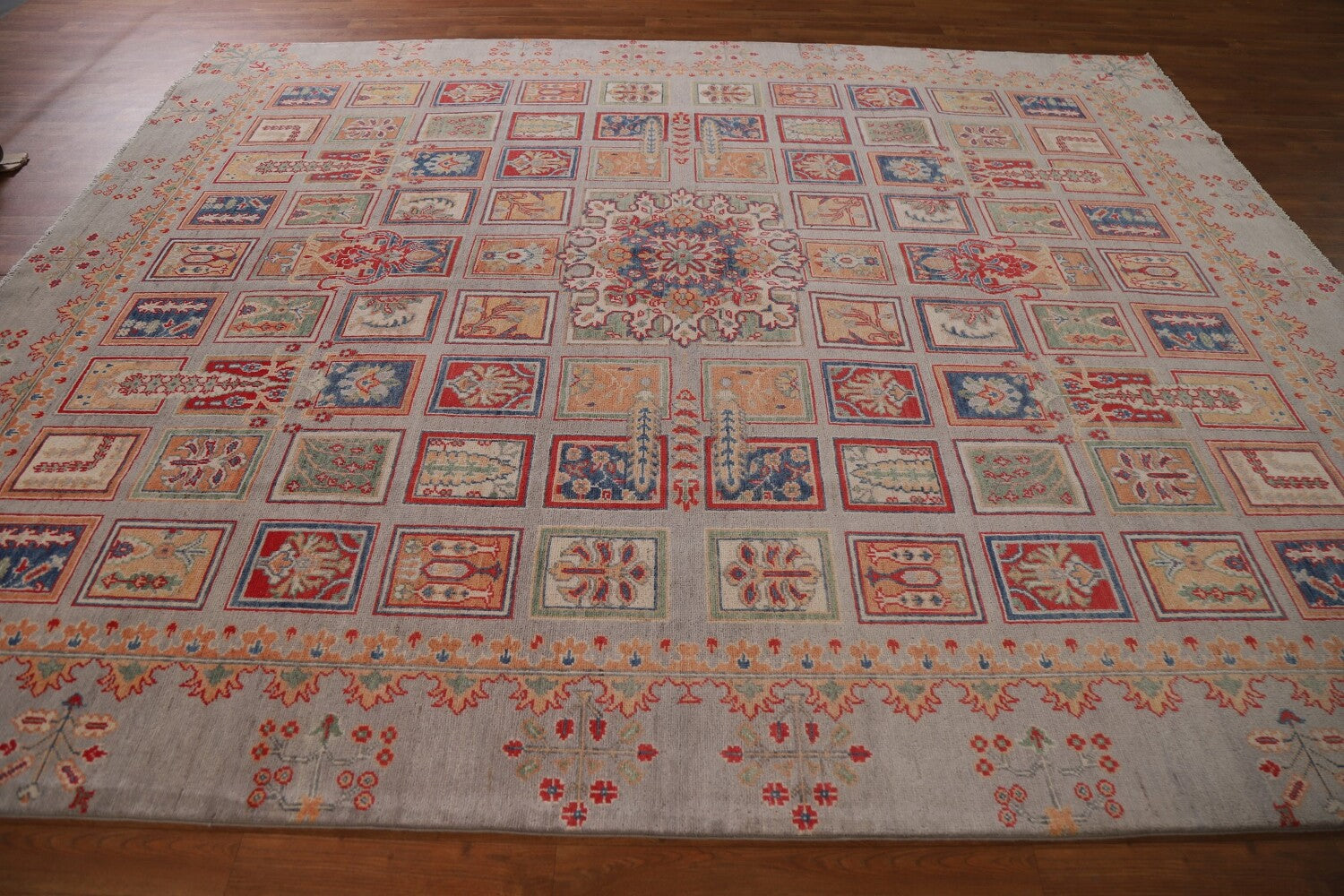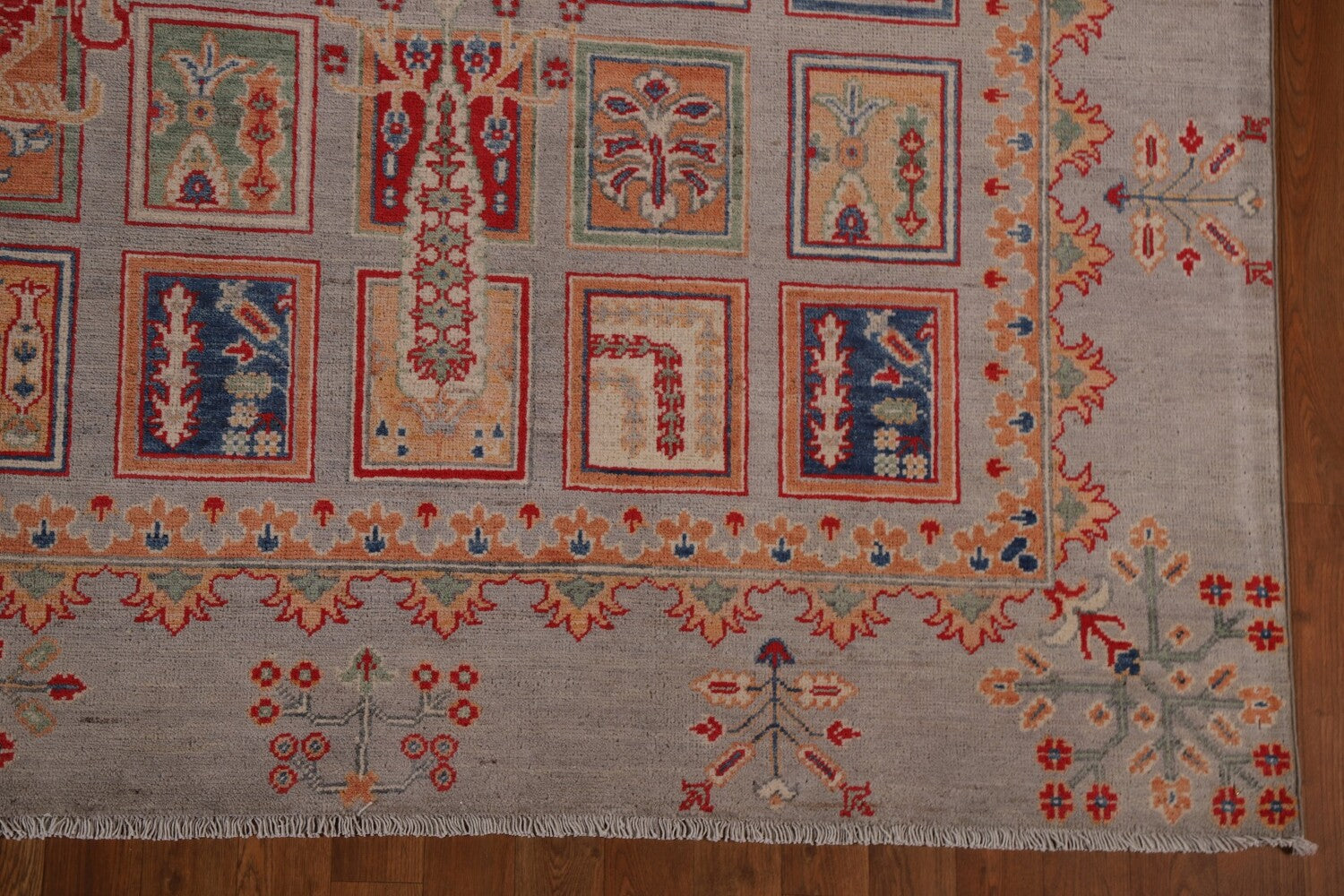 A Beautiful Genuine Pakistan Kazak rug is Hand Knotted by skillful weavers in Pakistan with 100% Wool Material. This rug is in New, First Quality condition. dimensions are 9' 11'' X 8' 2'' in foot and 302 X 249 in centimeter. the primary color is Brown.