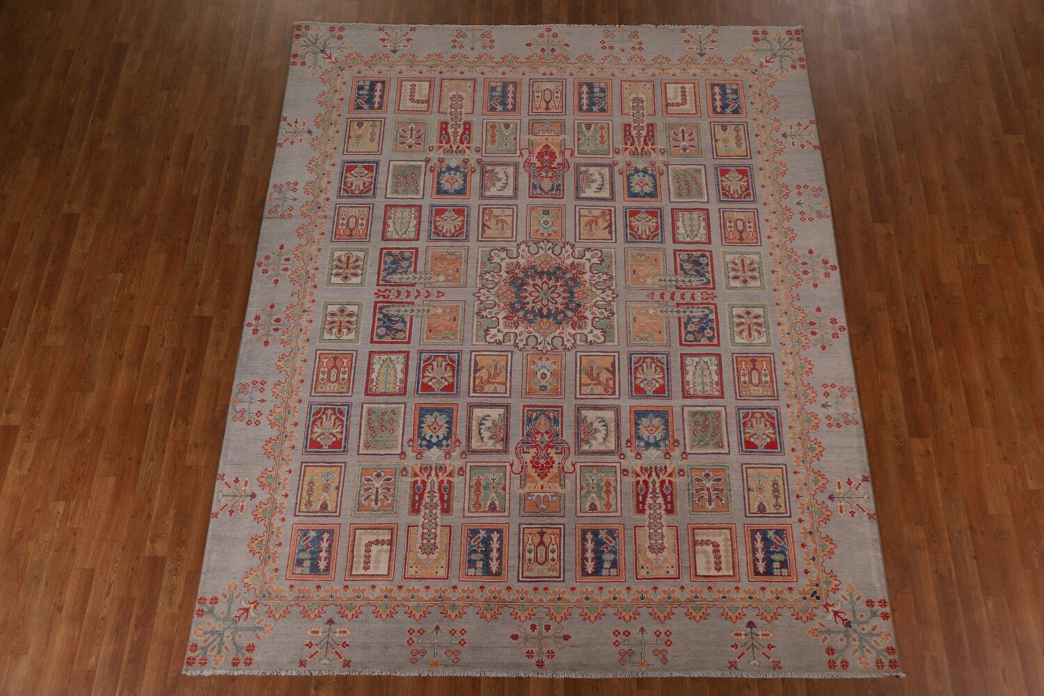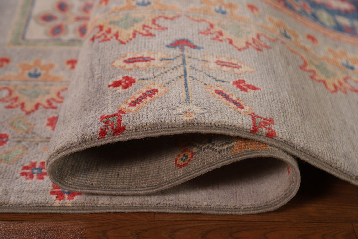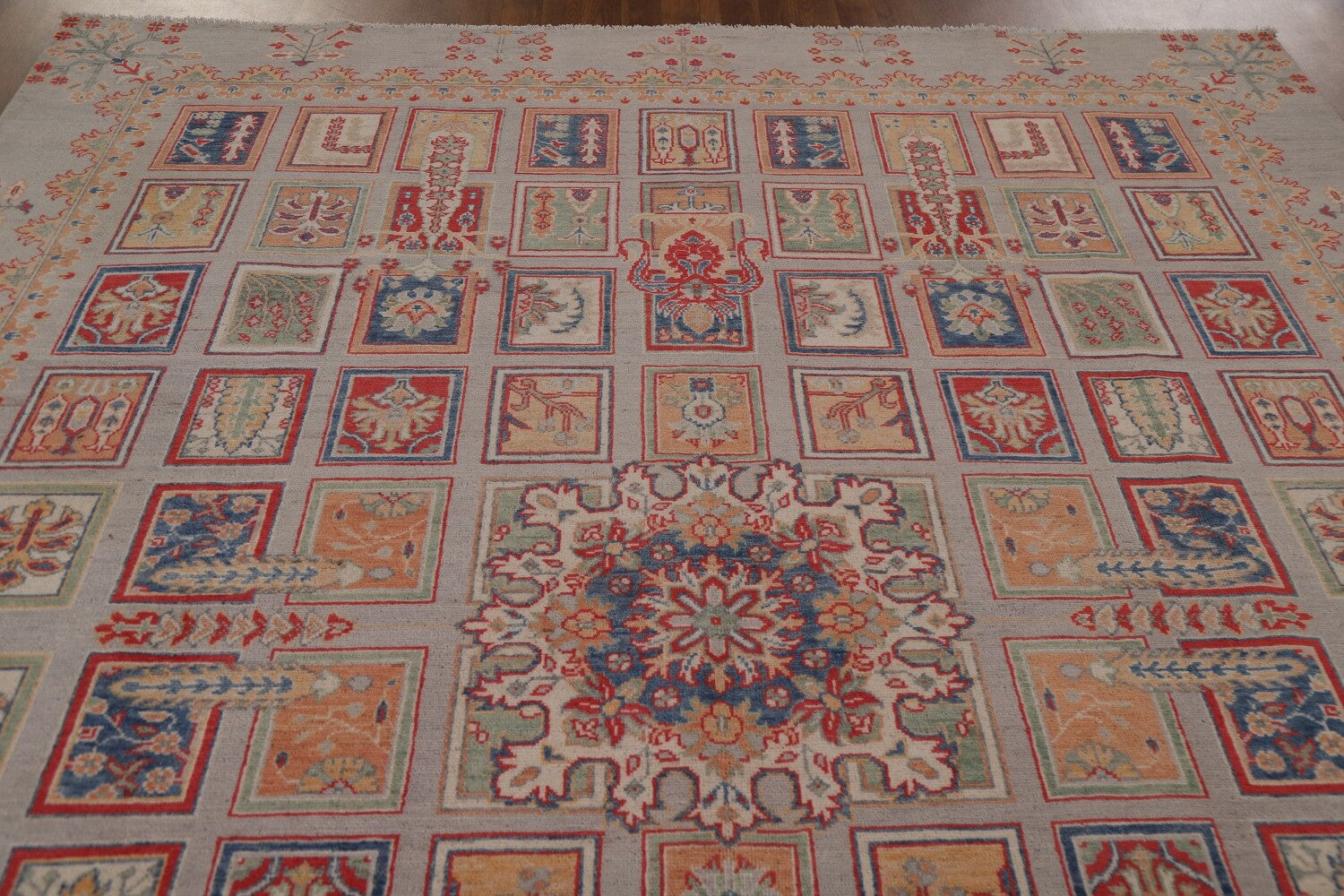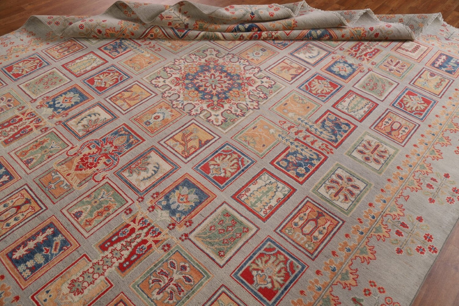 A Beautiful Genuine Pakistan Kazak rug is Hand Knotted by skillful weavers in Pakistan with 100% Wool Material. This rug is in New, First Quality condition. dimensions are 9' 11'' X 8' 2'' in foot and 302 X 249 in centimeter. the primary color is Brown.