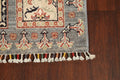 A Beautiful Genuine Pakistan Kazak rug is Hand Knotted by skillful weavers in Pakistan with 100% Wool Material. This rug is in New, First Quality condition. dimensions are 11' 0'' X 2' 8'' in foot and 335 X 81 in centimeter. the primary color is Greys & Charcoal.