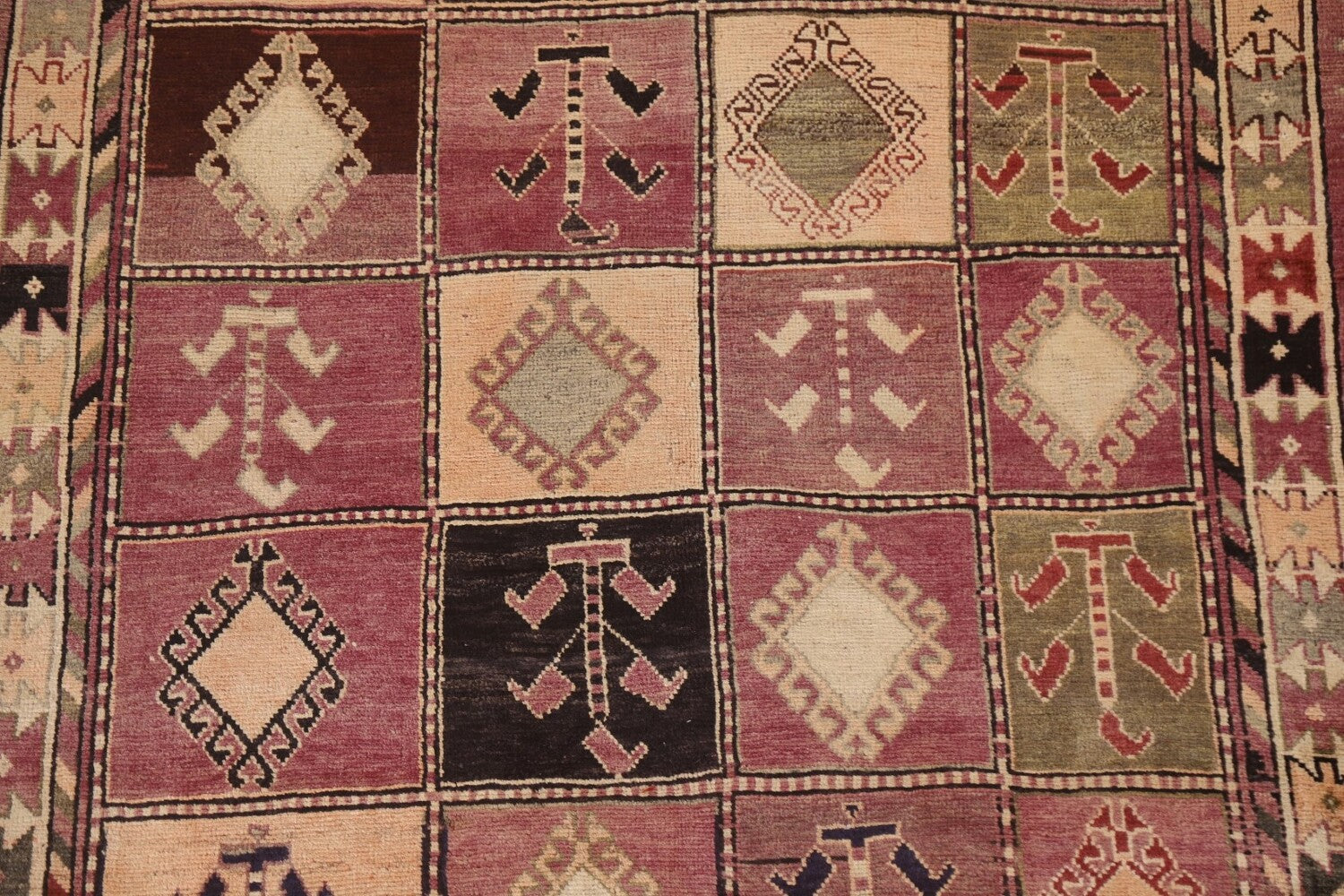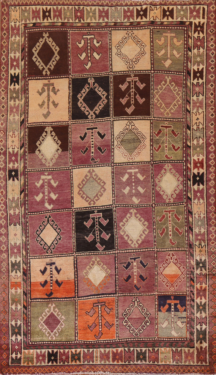 A Beautiful Genuine Persia ( Persia ) Shiraz rug is Hand Knotted by skillful weavers in Persia ( Persia ) with 100% Wool Material. This rug is in Very Good (Abrash) condition. dimensions are 8' 2'' X 4' 11'' in foot and 249 X 150 in centimeter. the primary color is Purples.