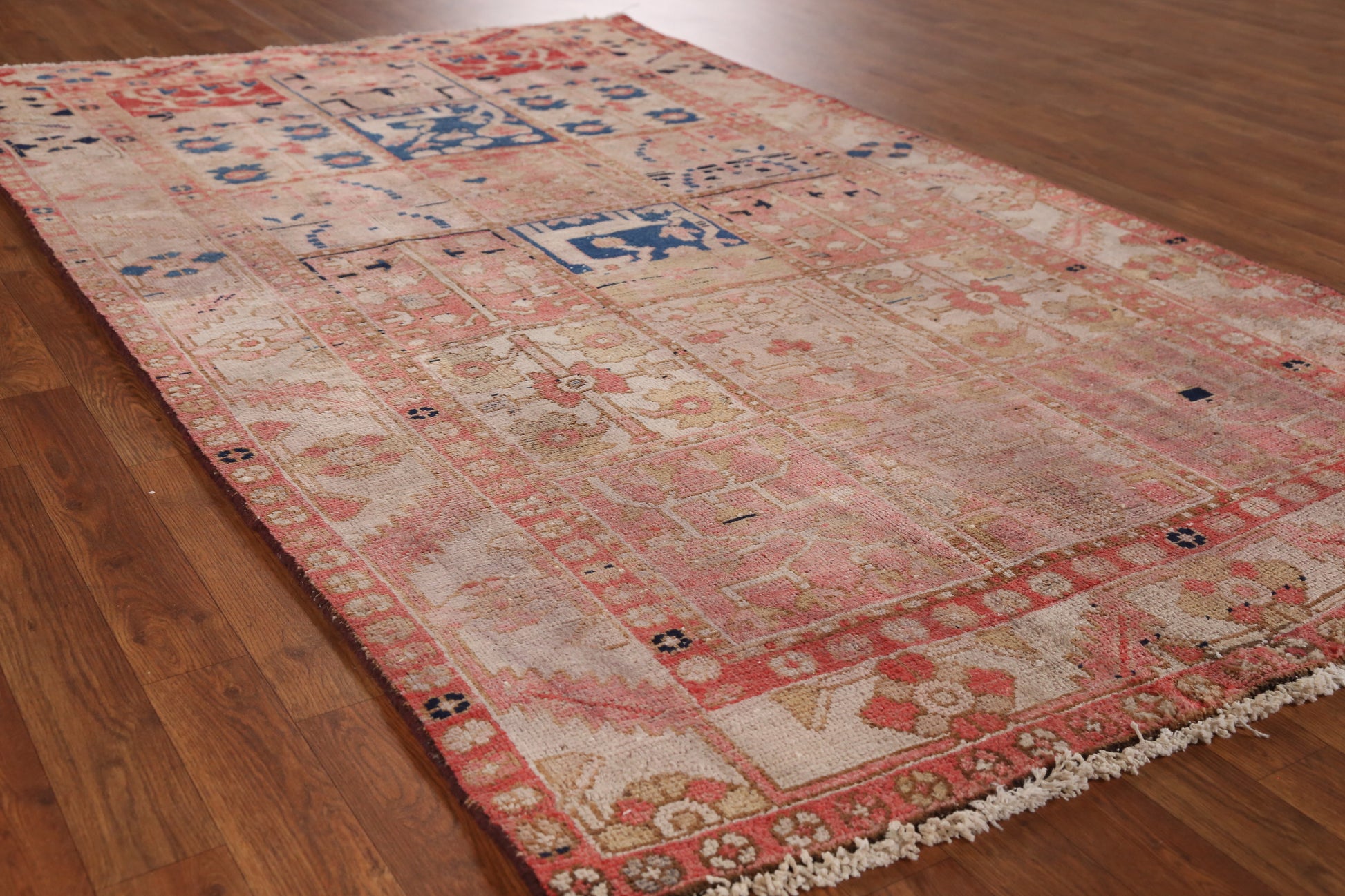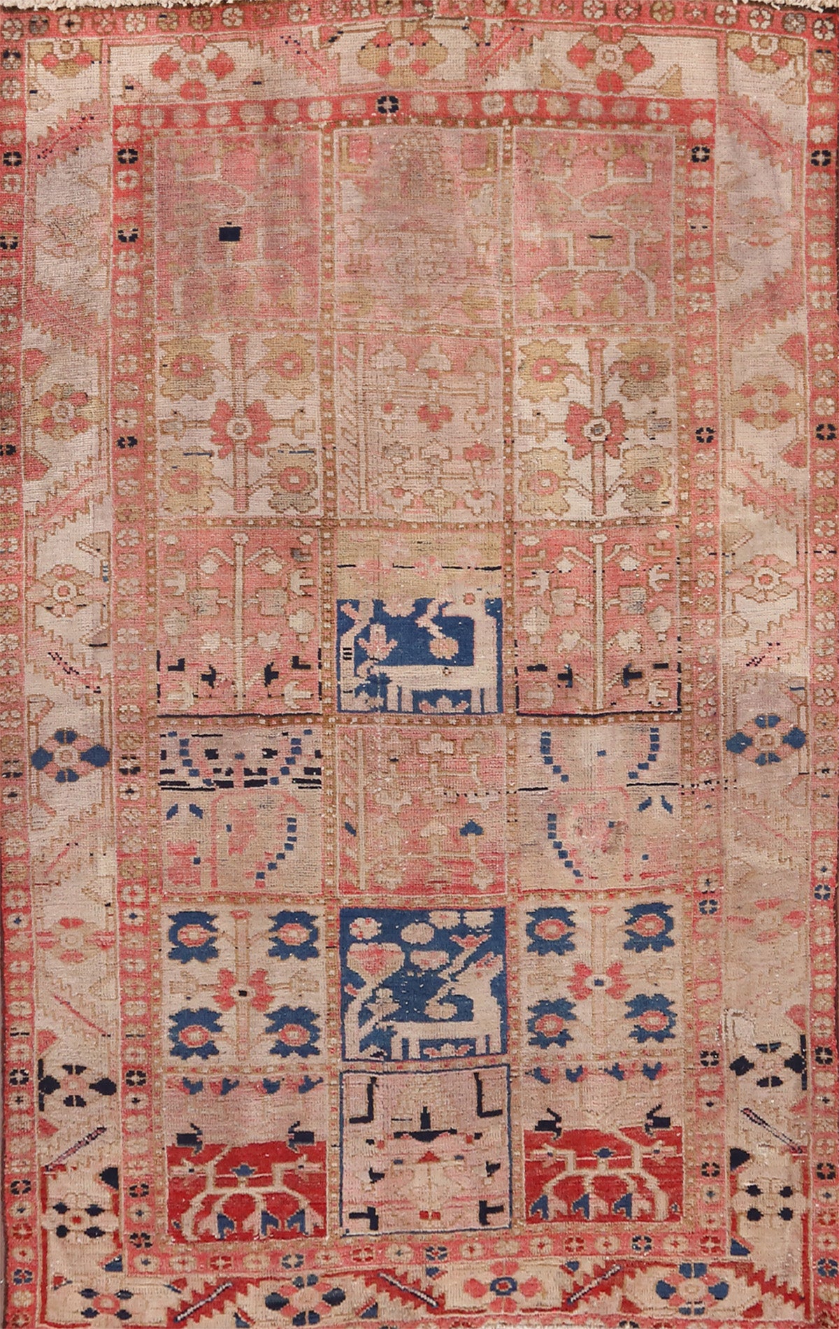 A Beautiful Genuine Persia ( Persia ) Bakhtiari rug is Hand Knotted by skillful weavers in Persia ( Persia ) with 100% Wool Material. This rug is in Very Good (Low Pile-Abrash) condition. dimensions are 7' 5'' X 4' 7'' in foot and 226 X 140 in centimeter. the primary color is Pink.