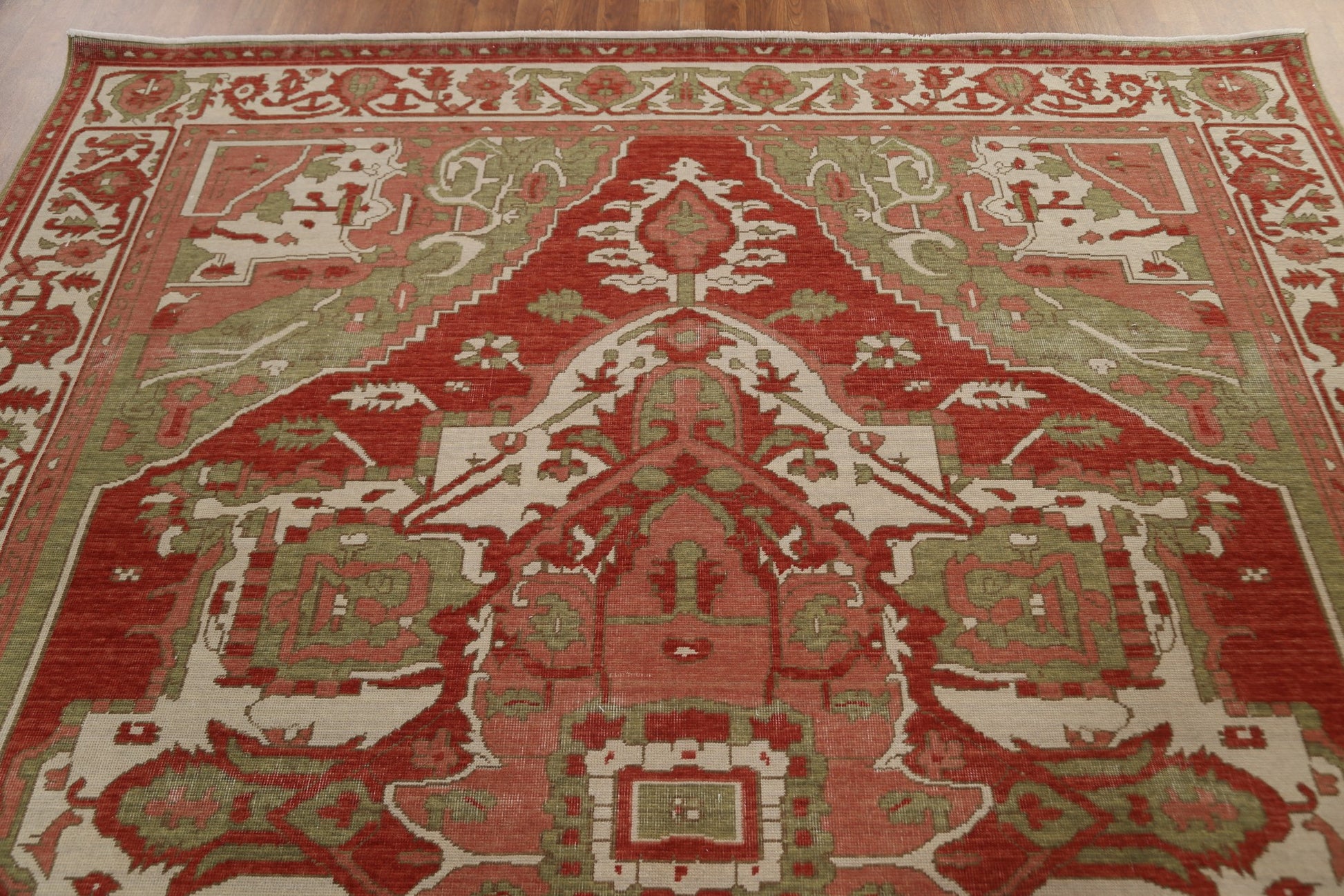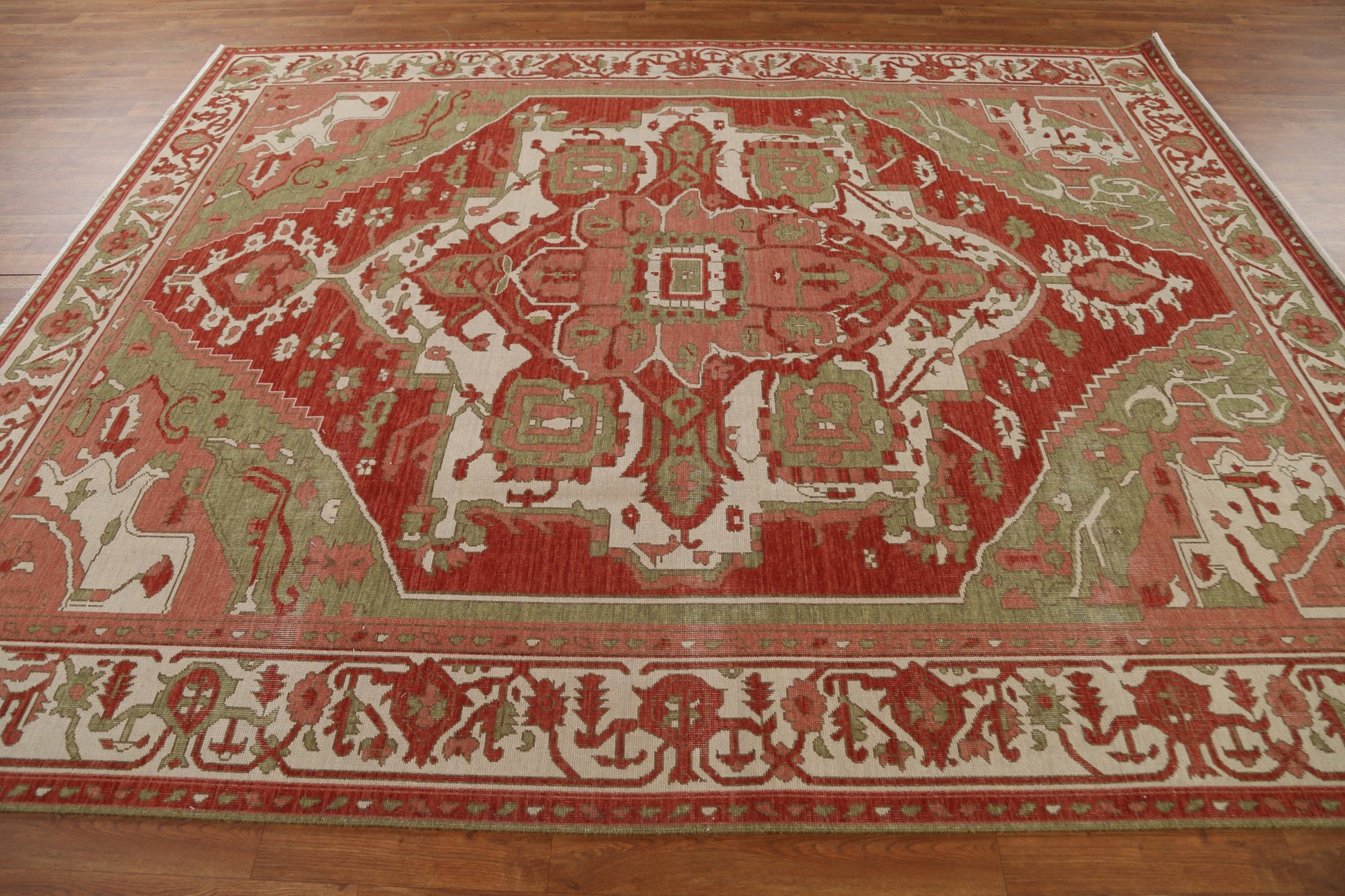 A Beautiful Genuine Turkey Heriz (serapi) rug is Hand Knotted by skillful weavers in Turkey with 100% Wool Material. This rug is in New, First Quality condition. dimensions are 9' 9'' X 8' 0'' in foot and 297 X 244 in centimeter. the primary color is Red.
