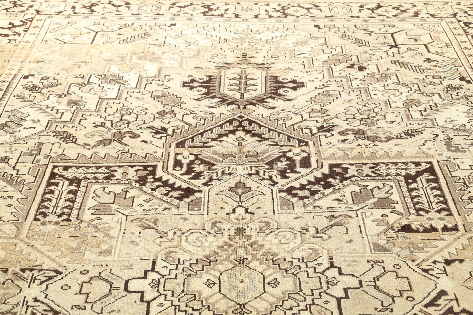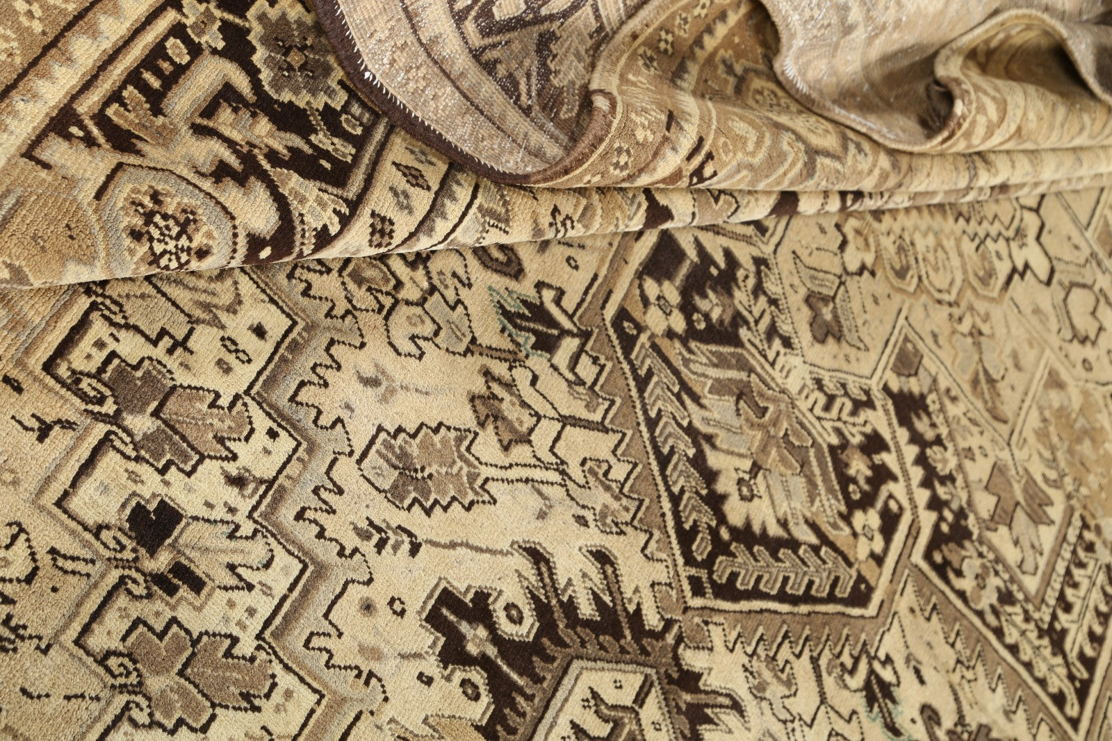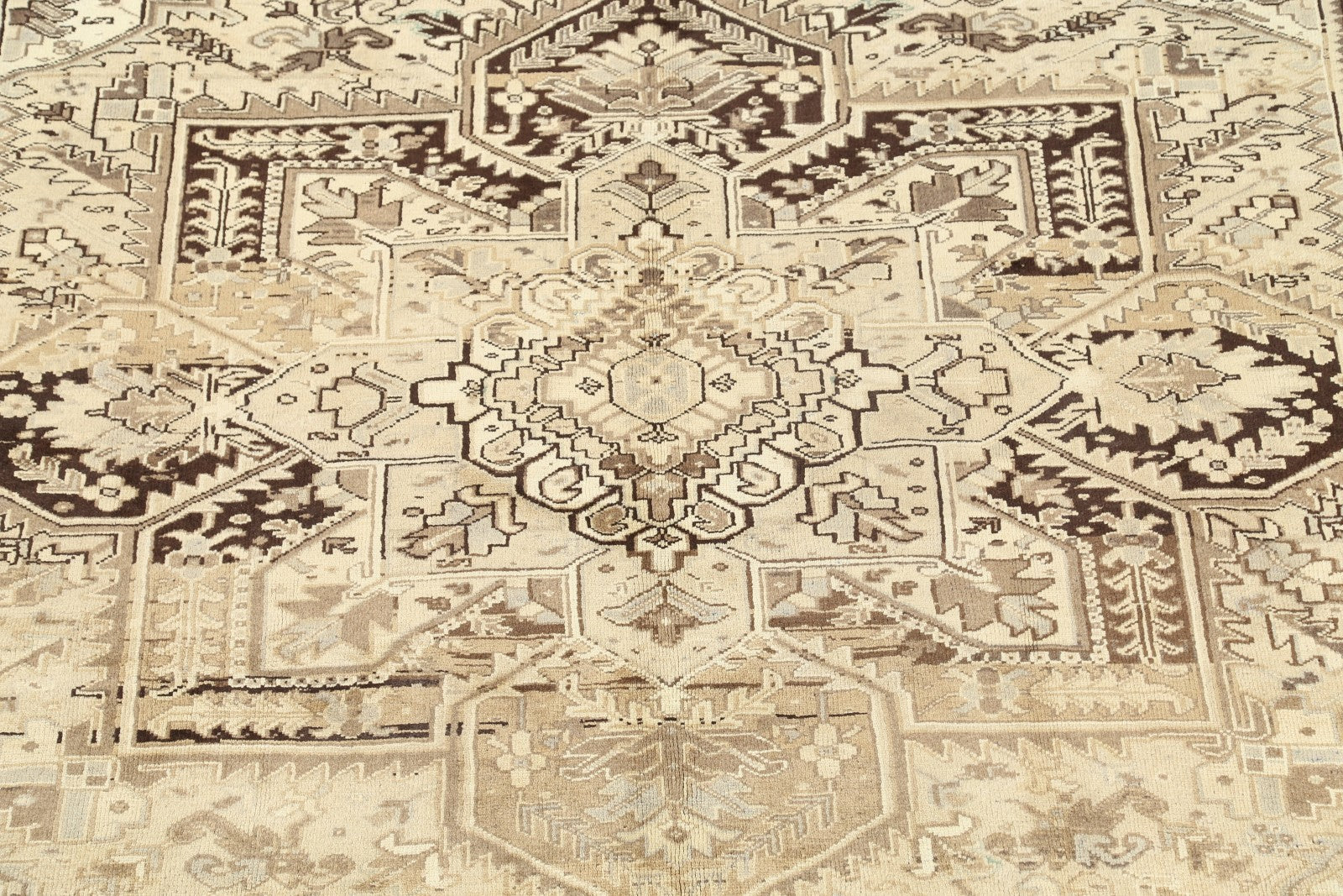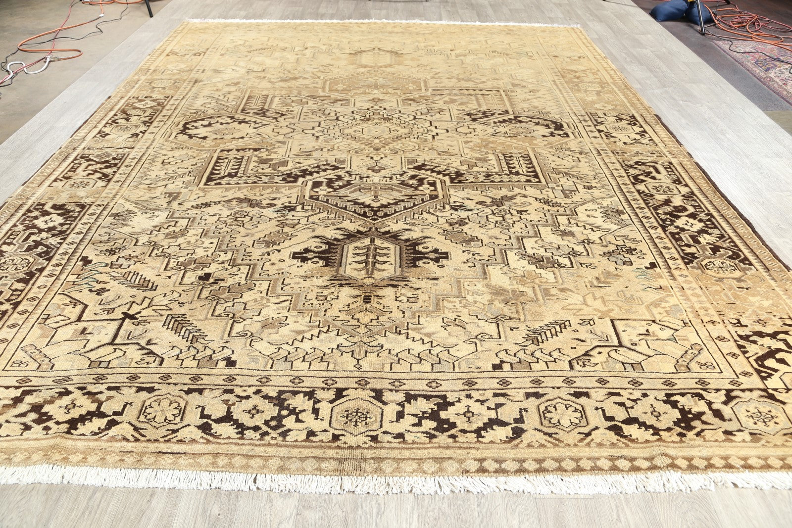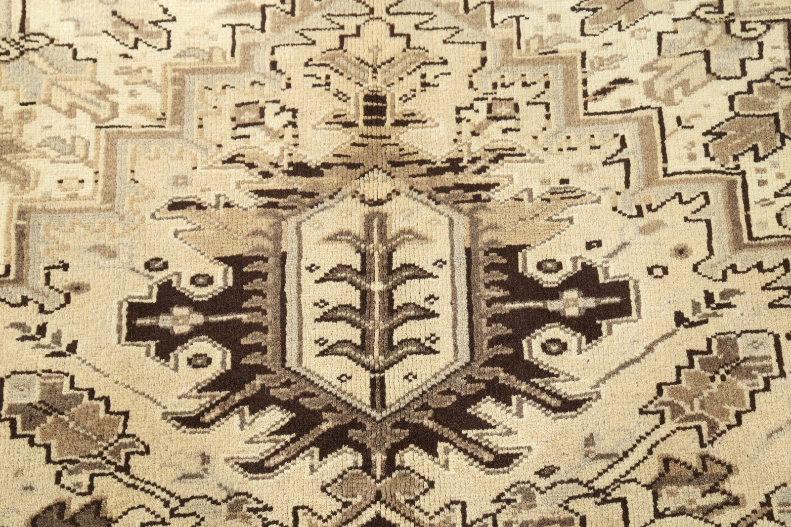 A Beautiful Genuine Persia ( Persia ) Heriz rug is Hand Knotted by skillful weavers in Persia ( Persia ) with 100% Wool Material. This rug is in Excellent ( Abrash ) condition. dimensions are 12' 10'' X 10' 1'' in foot and 391 X 307 in centimeter. the primary color is Beige & Ivories.