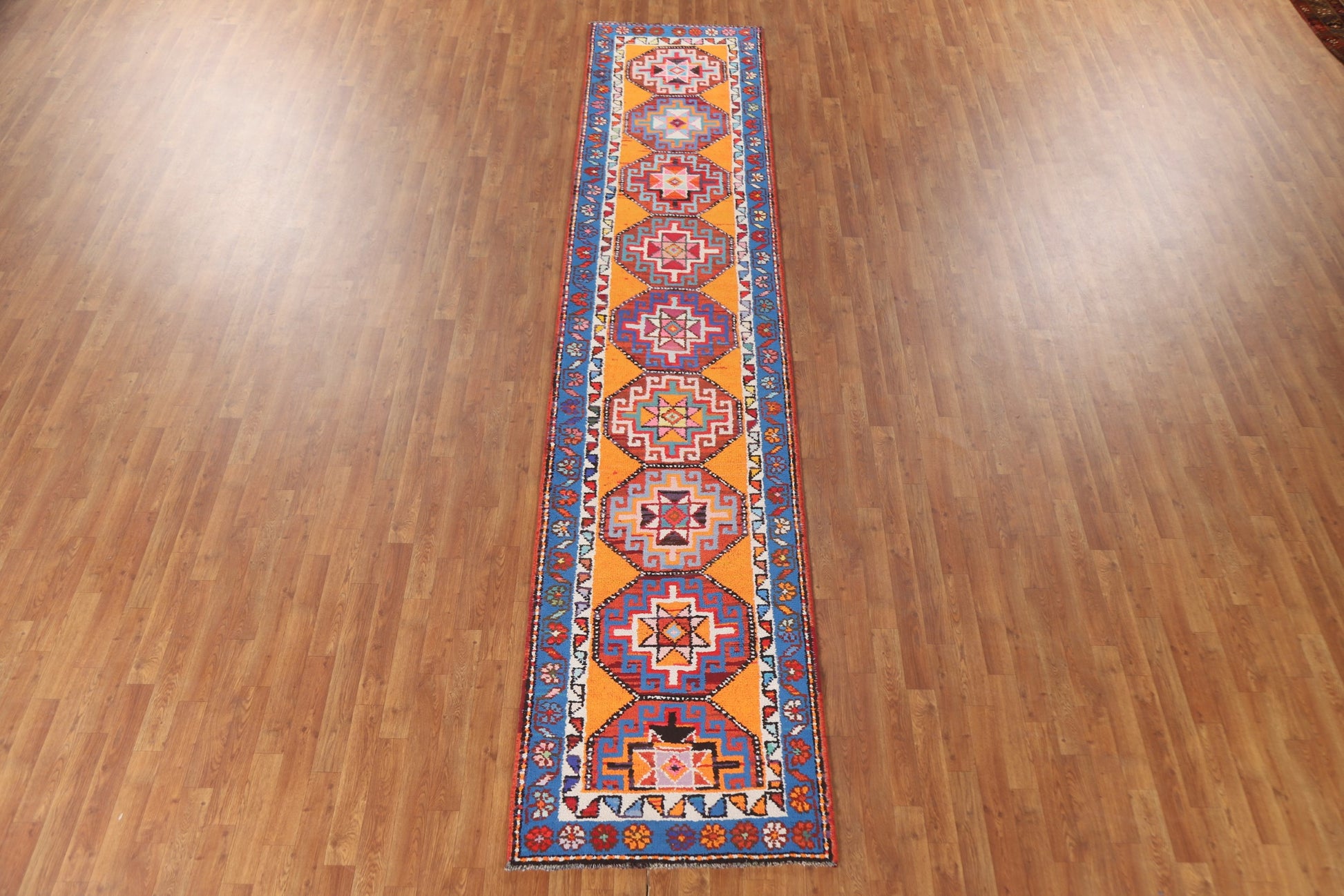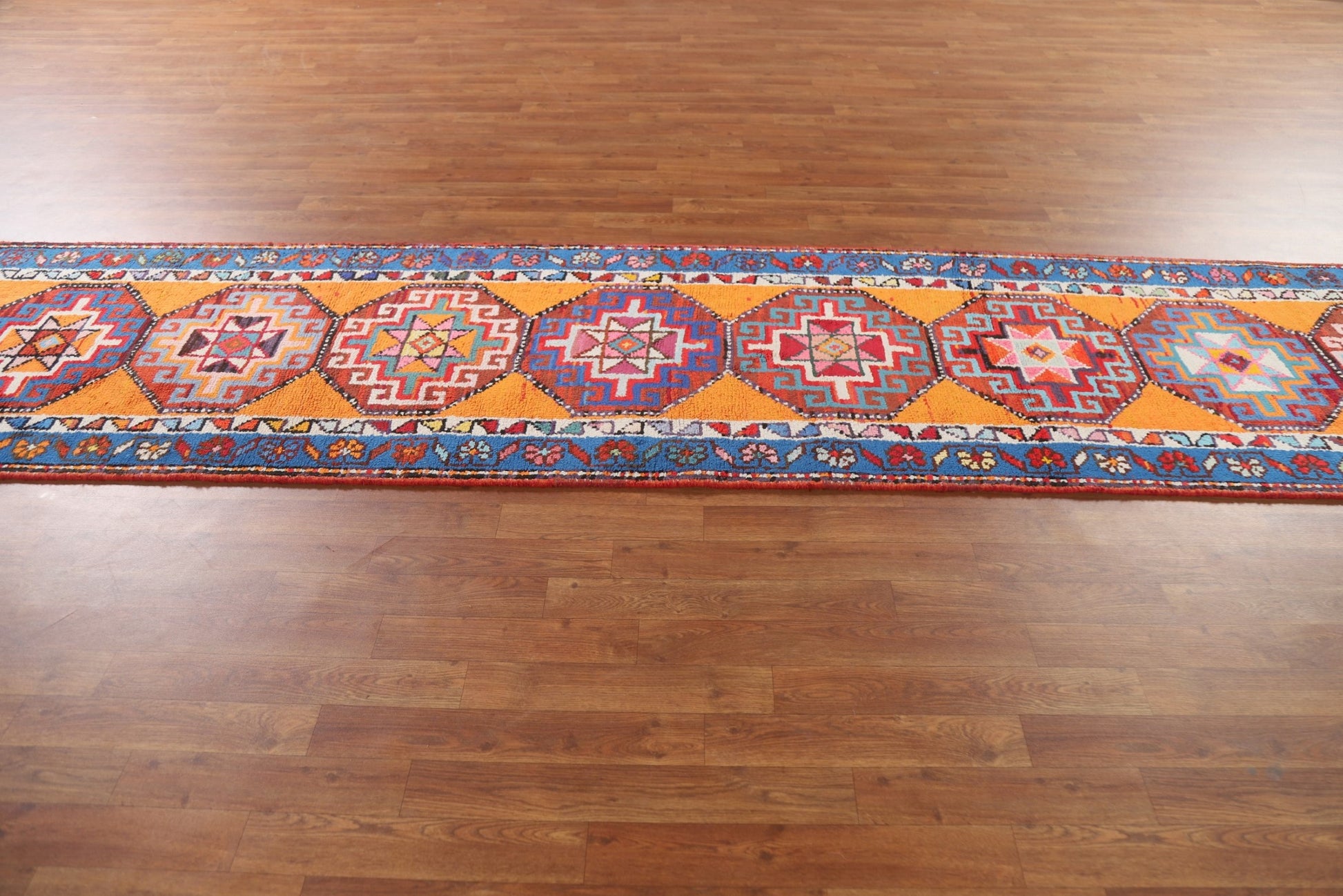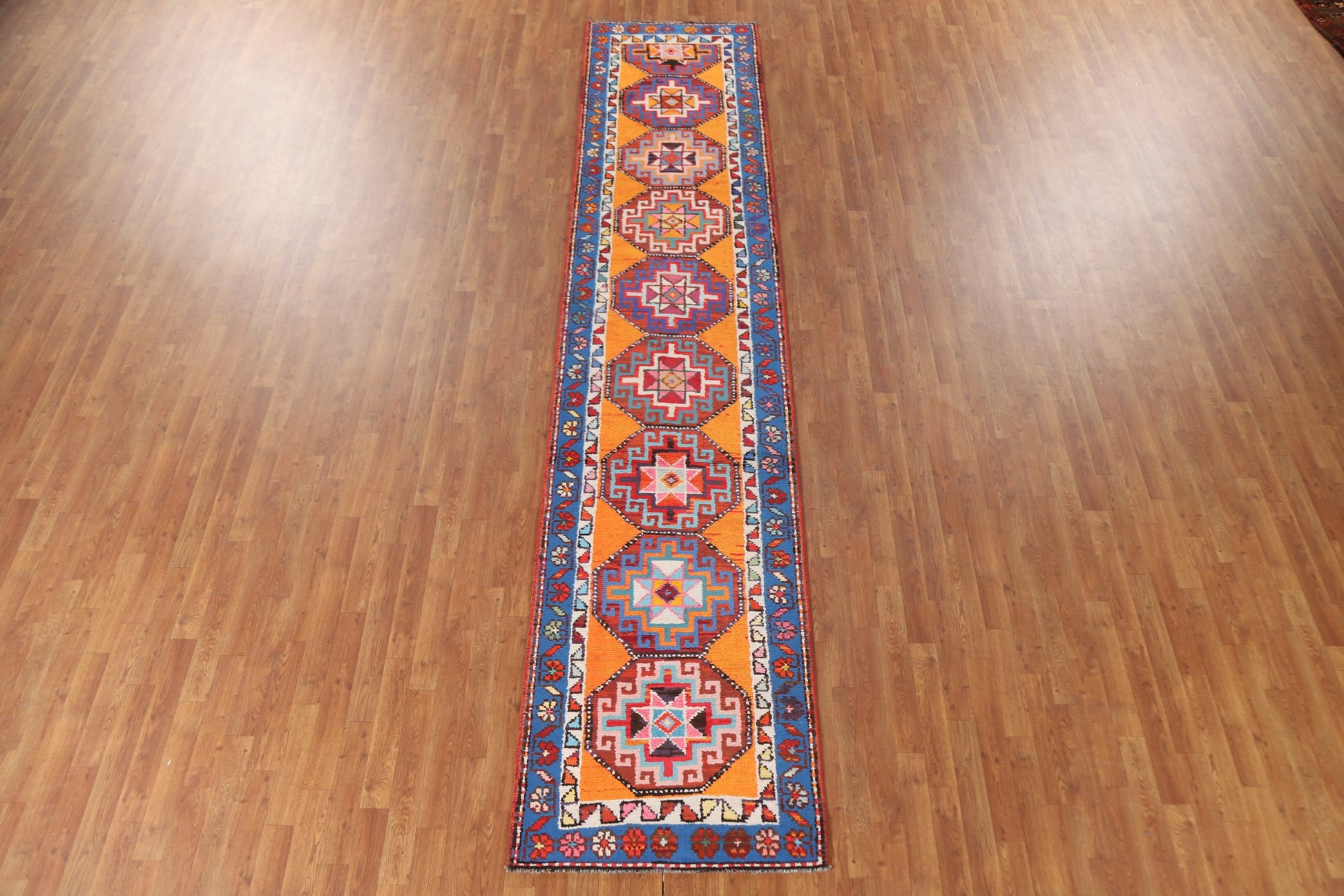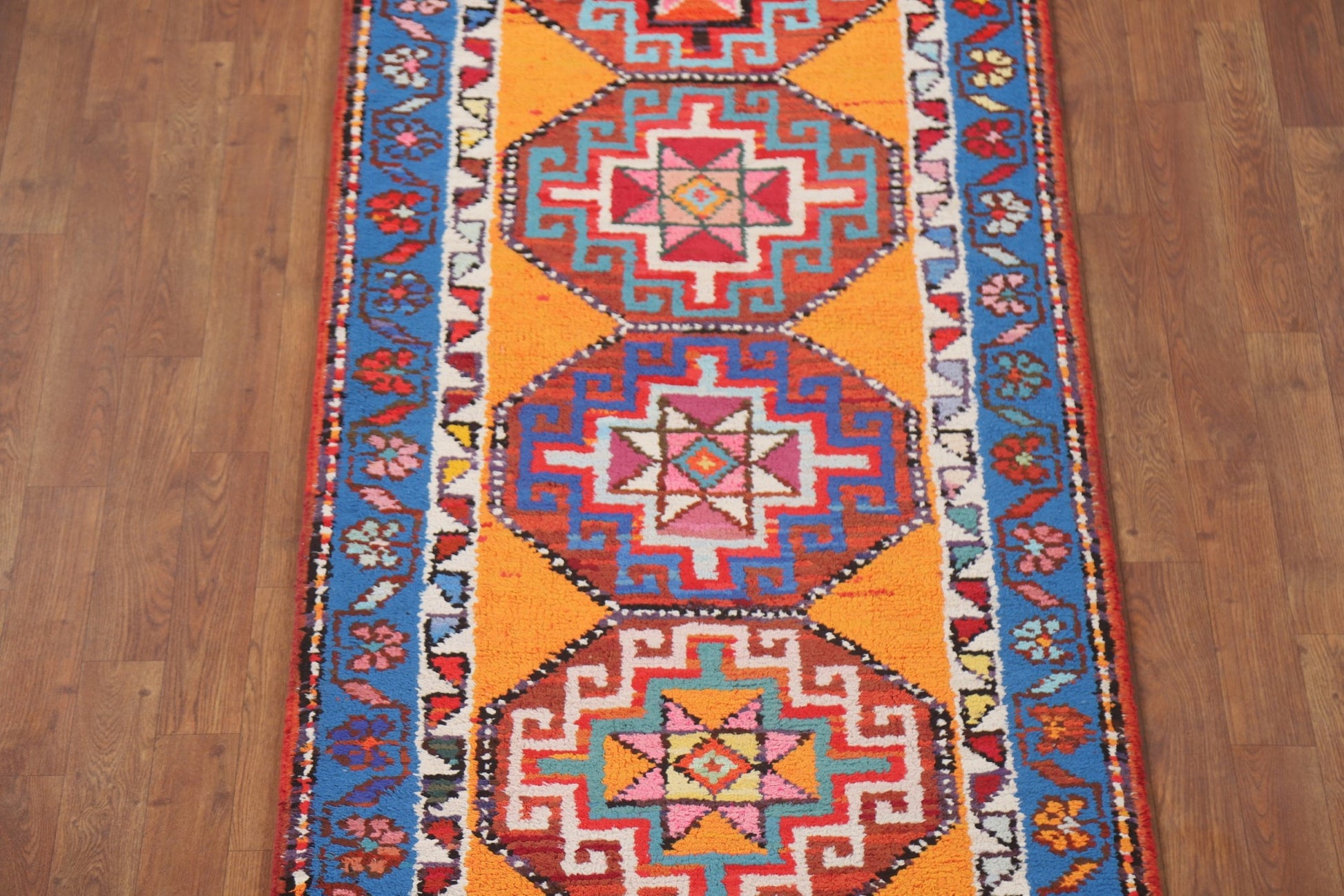 A Beautiful Genuine Turkey Anatolian rug is Hand Knotted by skillful weavers in Turkey with 100% Wool Material. This rug is in New, First Quality condition. dimensions are 11' 6'' X 2' 8'' in foot and 351 X 81 in centimeter. the primary color is Oranges & Rust.