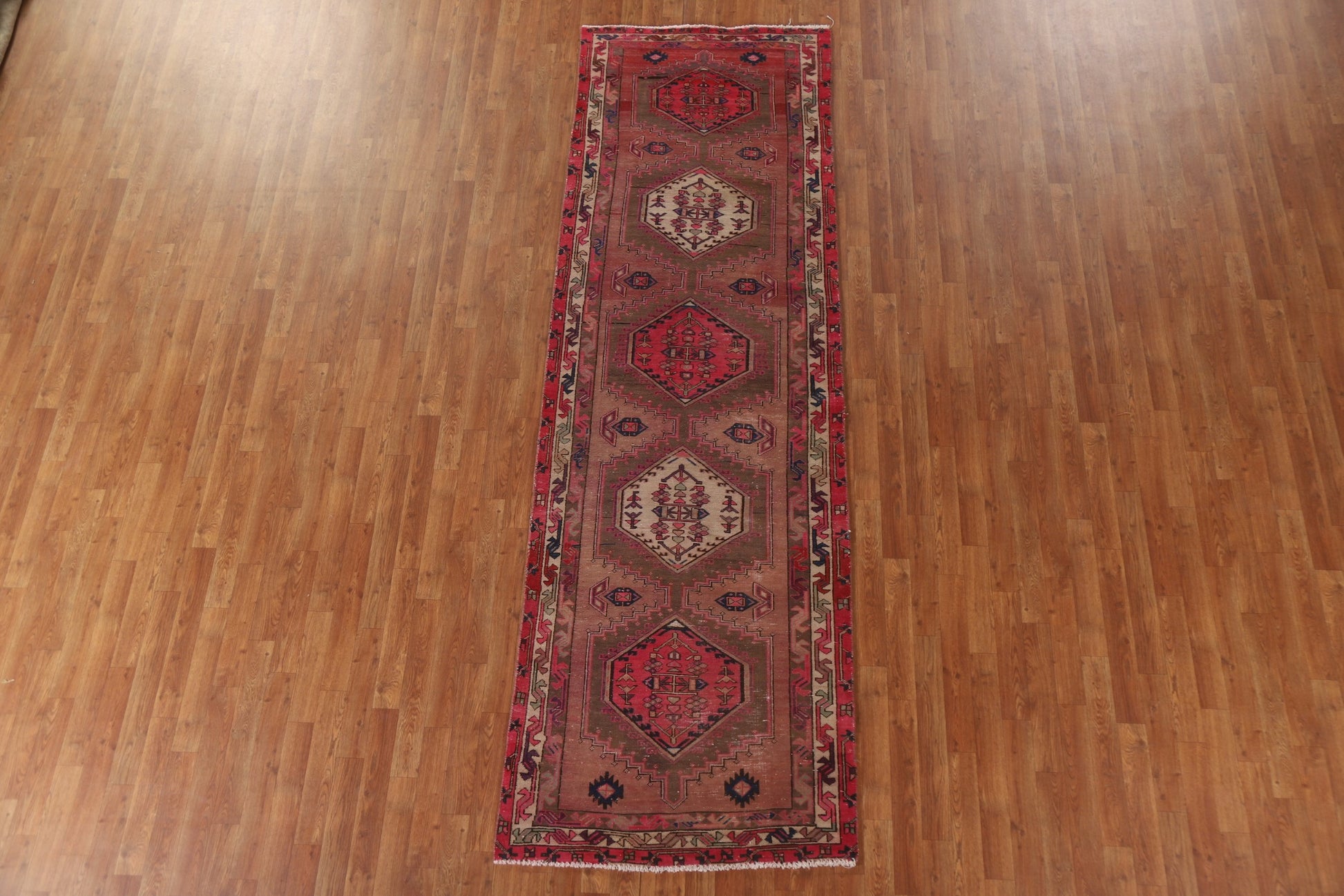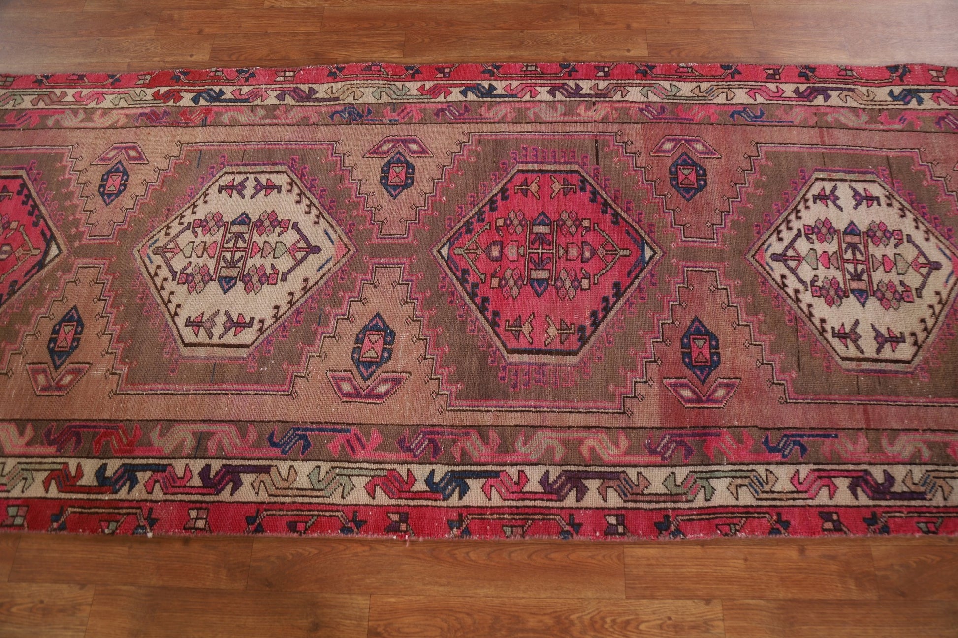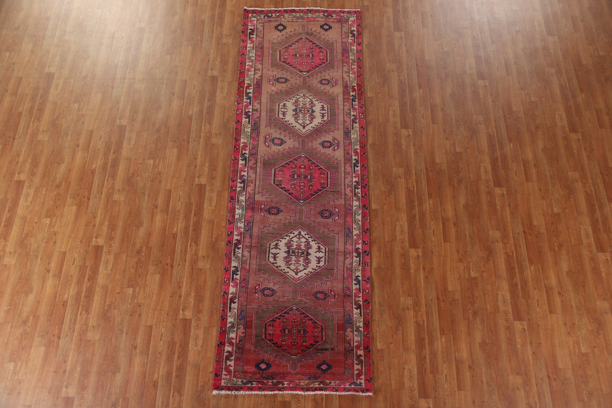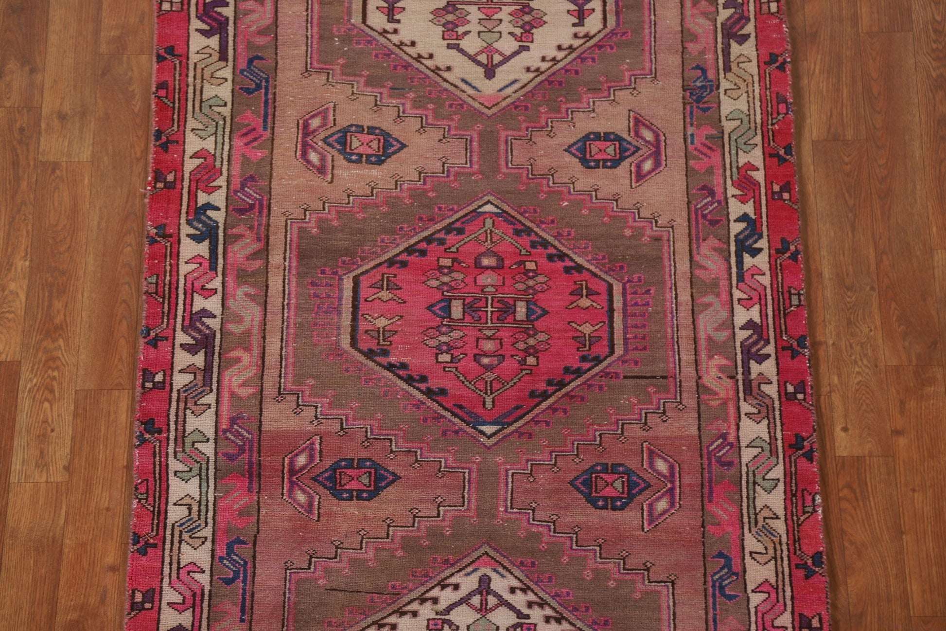 A Beautiful Genuine Persia ( Persia ) Ardebil rug is Hand Knotted by skillful weavers in Persia ( Persia ) with 100% Wool Material. This rug is in Very Good (Evenly Low Pile) condition. dimensions are 10' 7'' X 3' 4'' in foot and 323 X 102 in centimeter. the primary color is Pink.