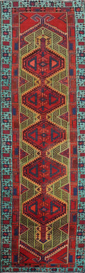A Beautiful Genuine Persia ( Persia ) Ardebil rug is Hand Knotted by skillful weavers in Persia ( Persia ) with 100% Wool Material. This rug is in Very Good (Abrash) condition. dimensions are 10' 8'' X 2' 10'' in foot and 325 X 86 in centimeter. the primary color is Red.