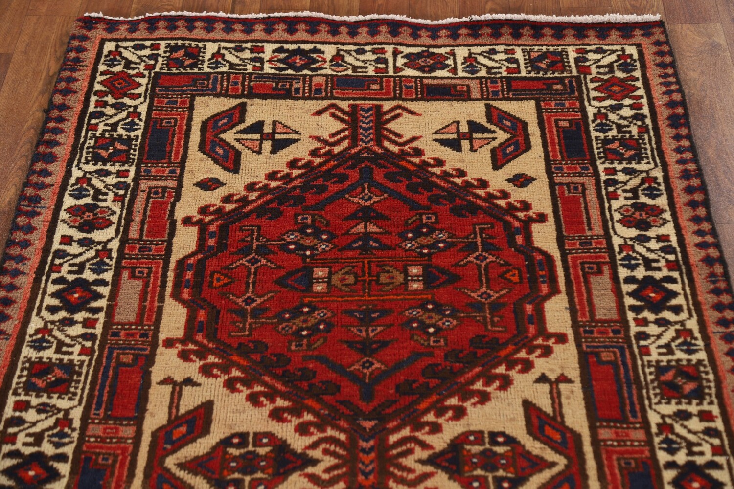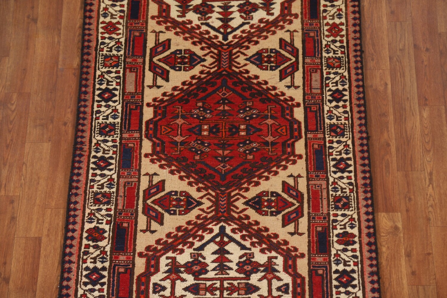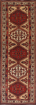 A Beautiful Genuine Persia ( Persia ) Ardebil rug is Hand Knotted by skillful weavers in Persia ( Persia ) with 100% Wool Material. This rug is in Very Good (Low Pile) condition. dimensions are 10' 11'' X 3' 3'' in foot and 333 X 99 in centimeter. the primary color is Beige & Ivories.