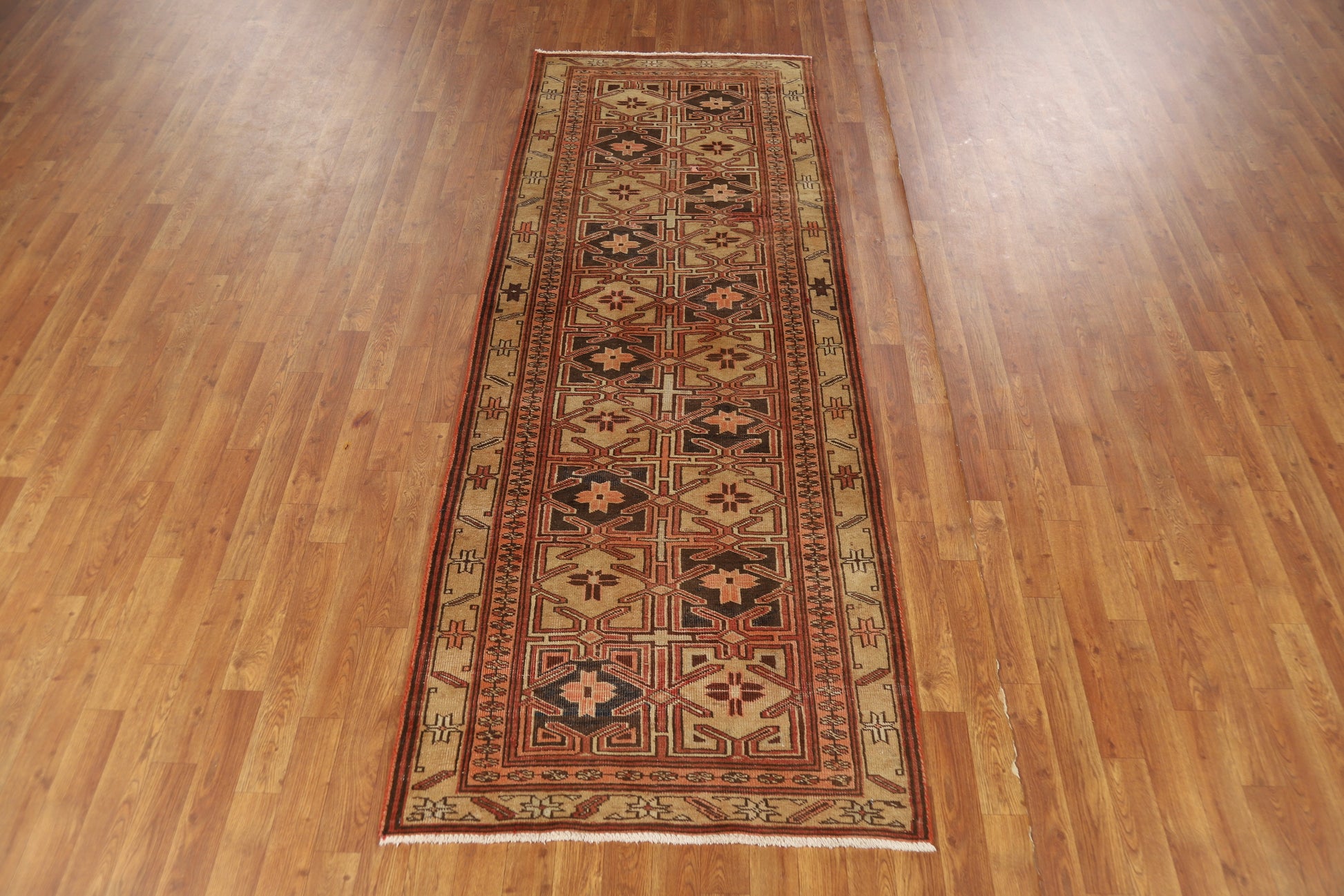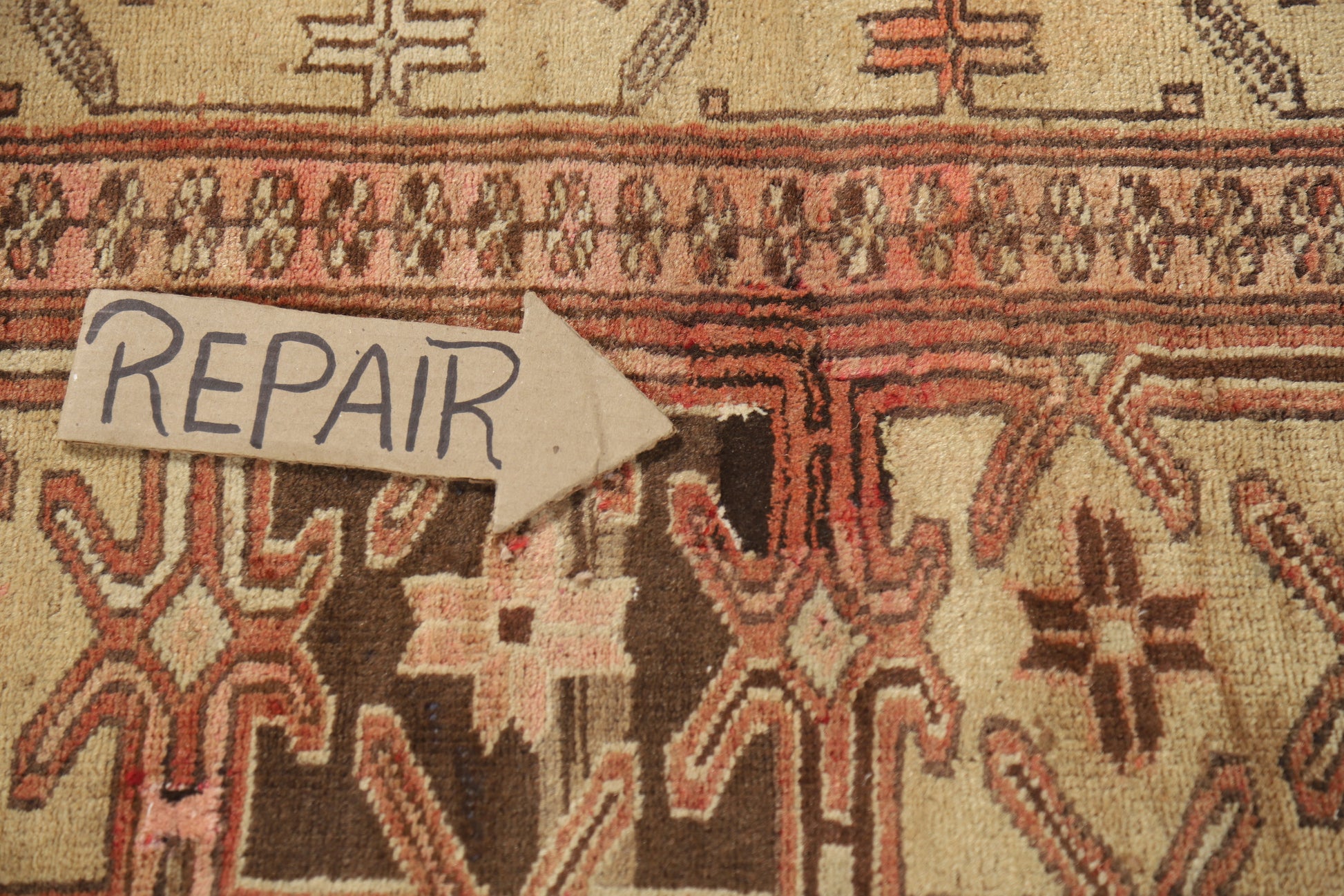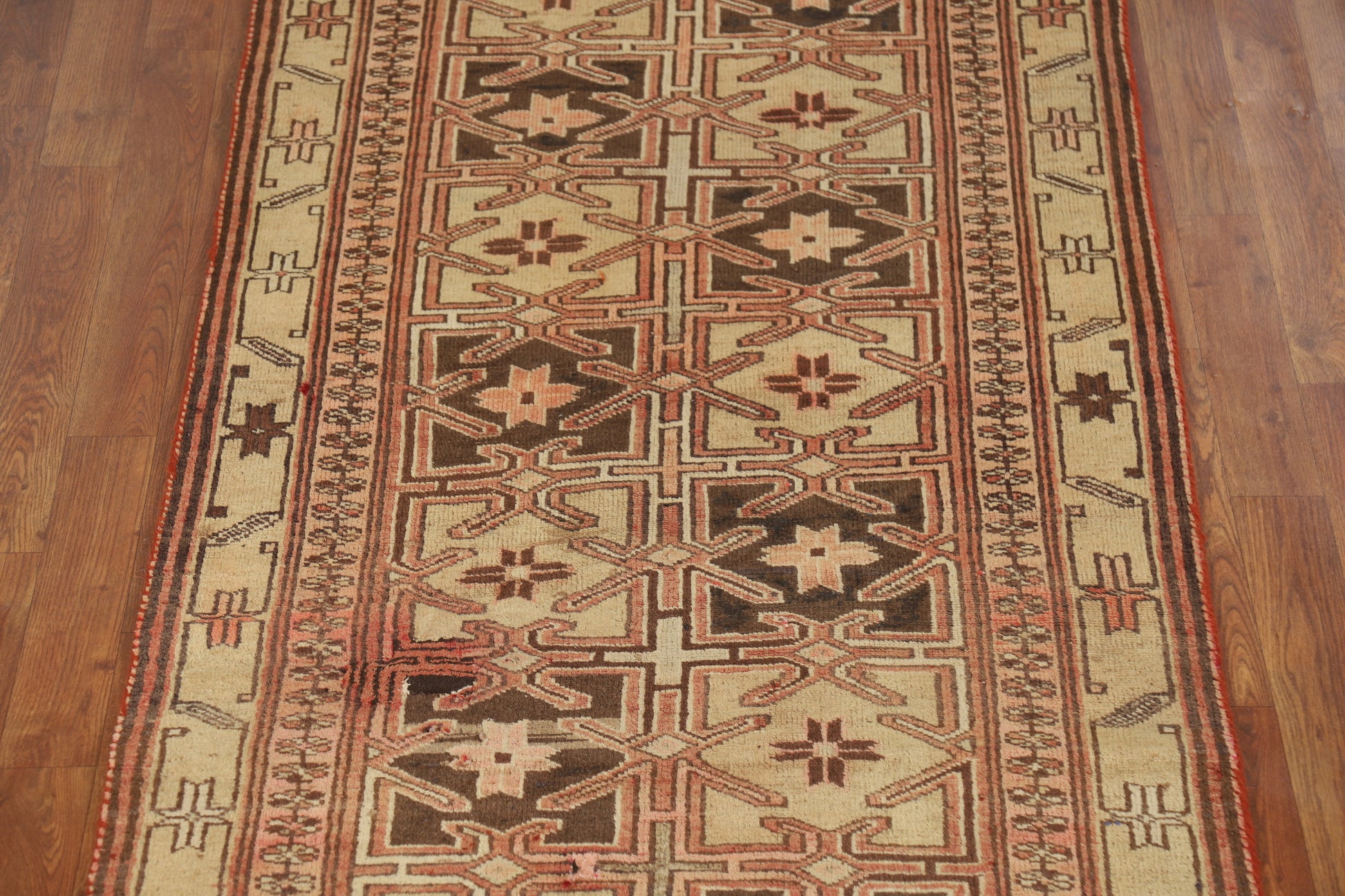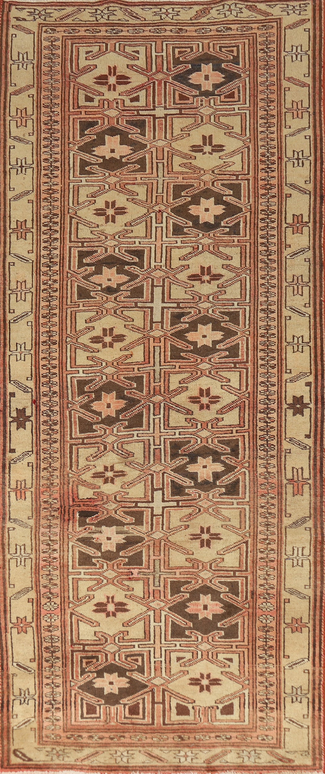 A Beautiful Genuine Persia ( Persia ) Ardebil rug is Hand Knotted by skillful weavers in Persia ( Persia ) with 100% Wool Material. This rug is in Very Good (Low Pile-Repairs) condition. dimensions are 8' 8'' X 3' 2'' in foot and 264 X 97 in centimeter. the primary color is Beige & Ivories.