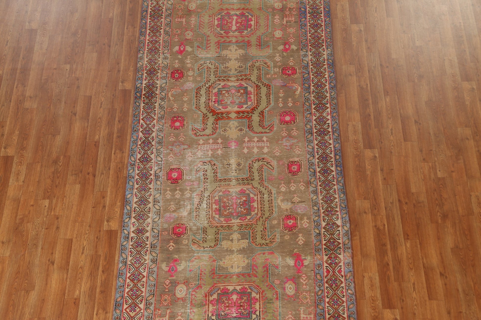 A Beautiful Genuine Persia ( Persia ) Ardebil rug is Hand Knotted by skillful weavers in Persia ( Persia ) with 100% Wool Material. This rug is in Very Good (Evenly Low Pile) condition. dimensions are 10' 1'' X 4' 4'' in foot and 307 X 132 in centimeter. the primary color is Brown.