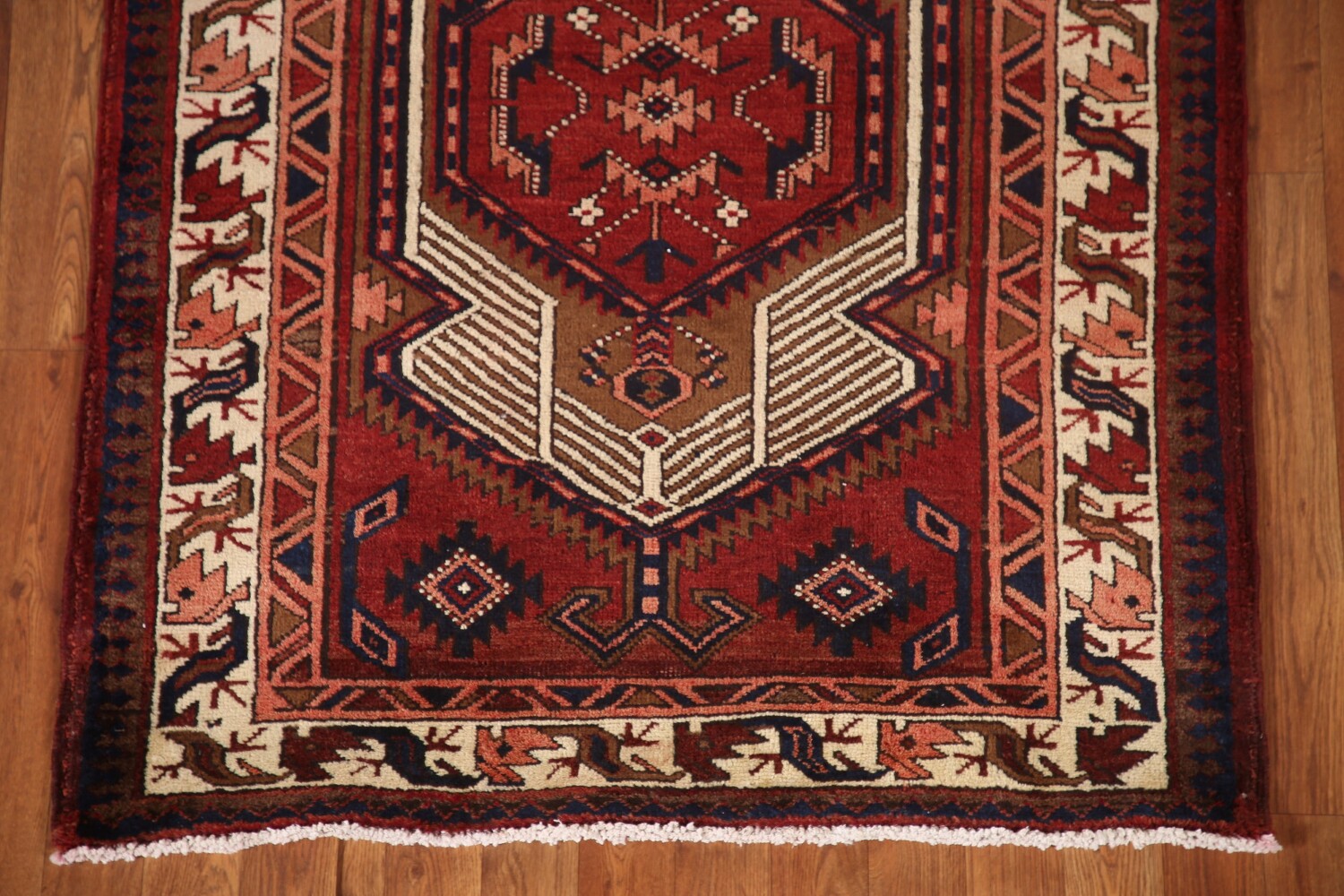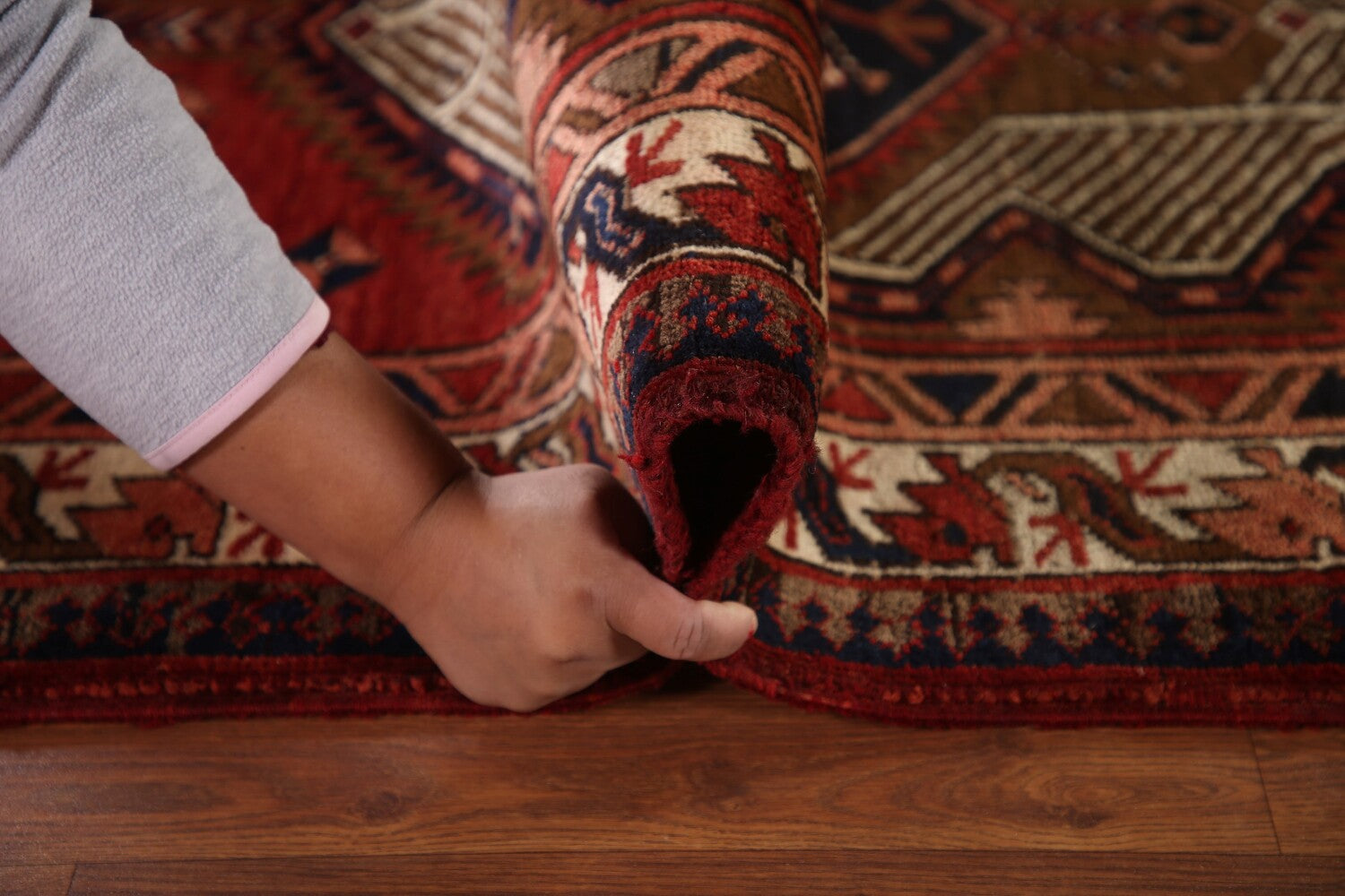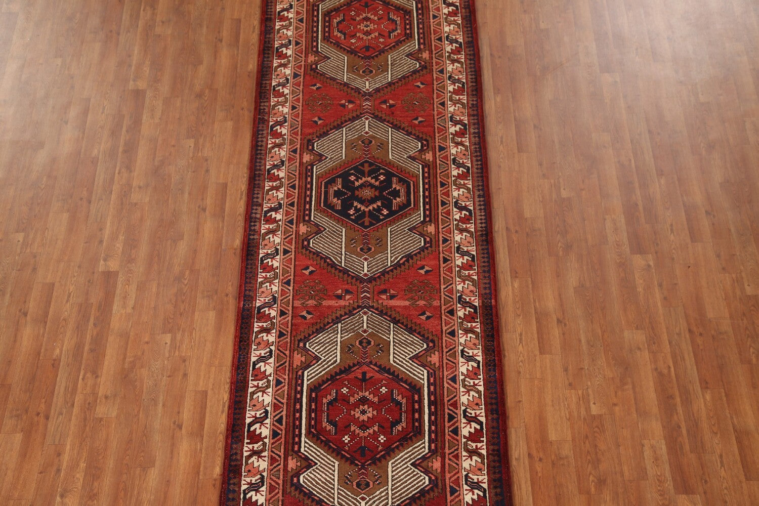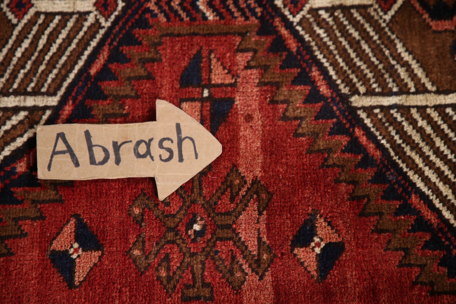 A Beautiful Genuine Persia ( Persia ) Ardebil rug is Hand Knotted by skillful weavers in Persia ( Persia ) with 100% Wool Material. This rug is in Very Good (Low Pile-Abrash) condition. dimensions are 11' 2'' X 3' 6'' in foot and 340 X 107 in centimeter. the primary color is Red.