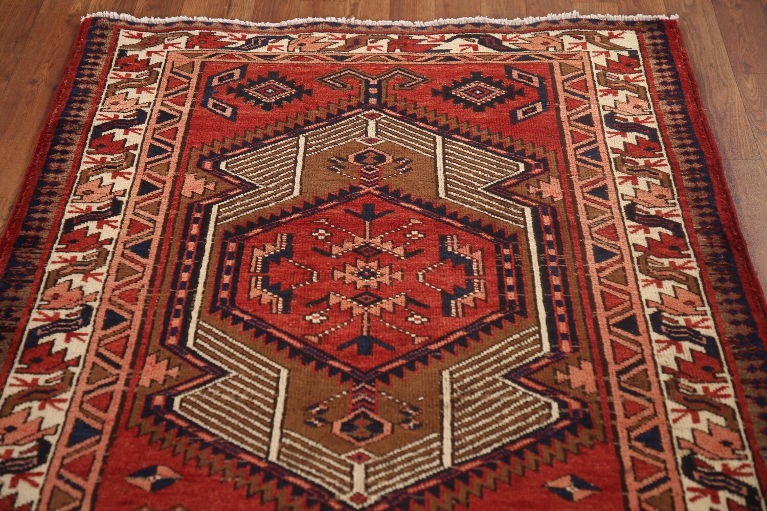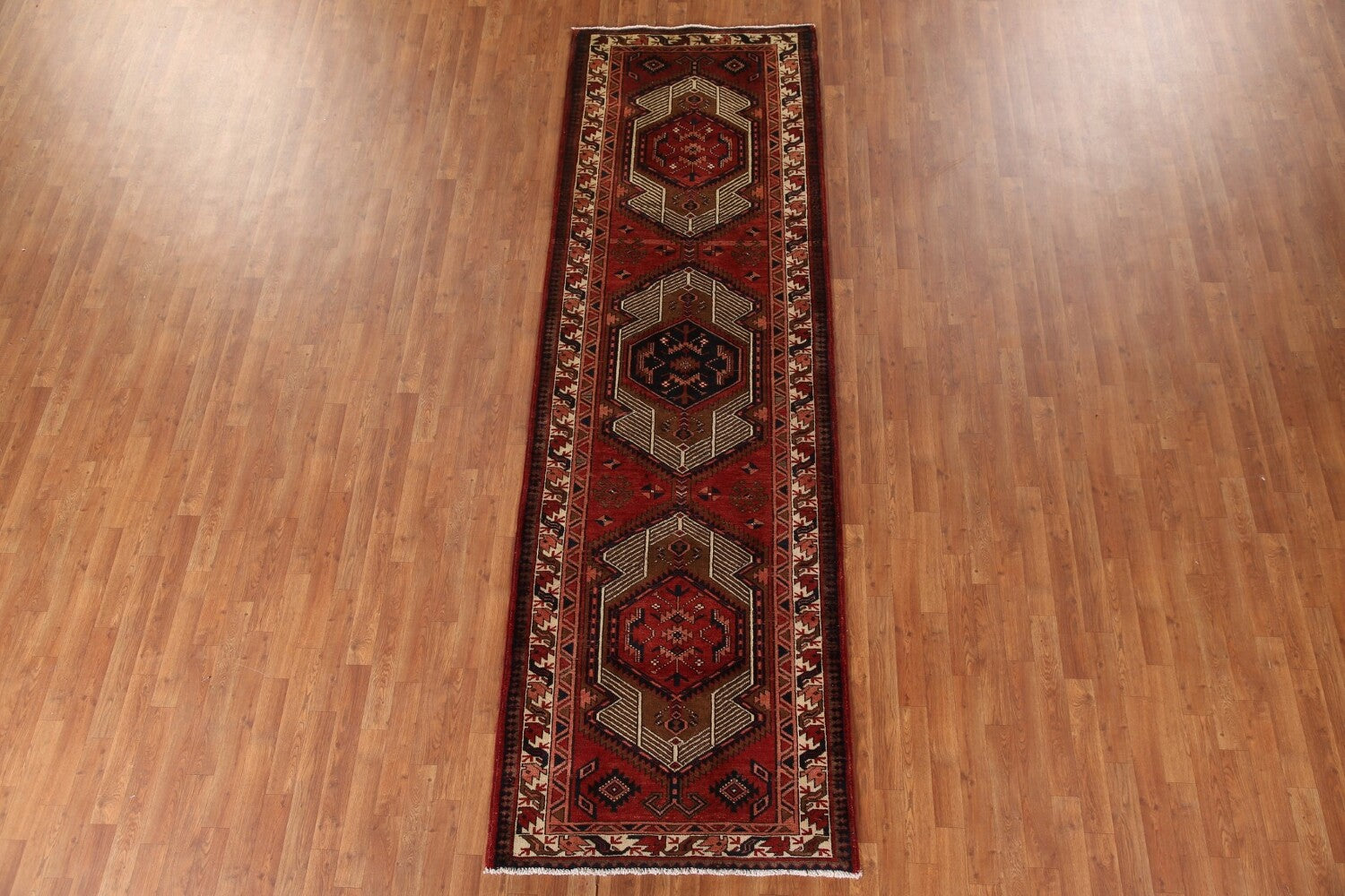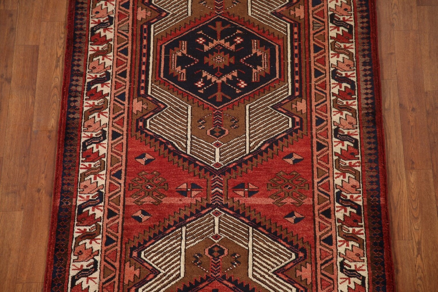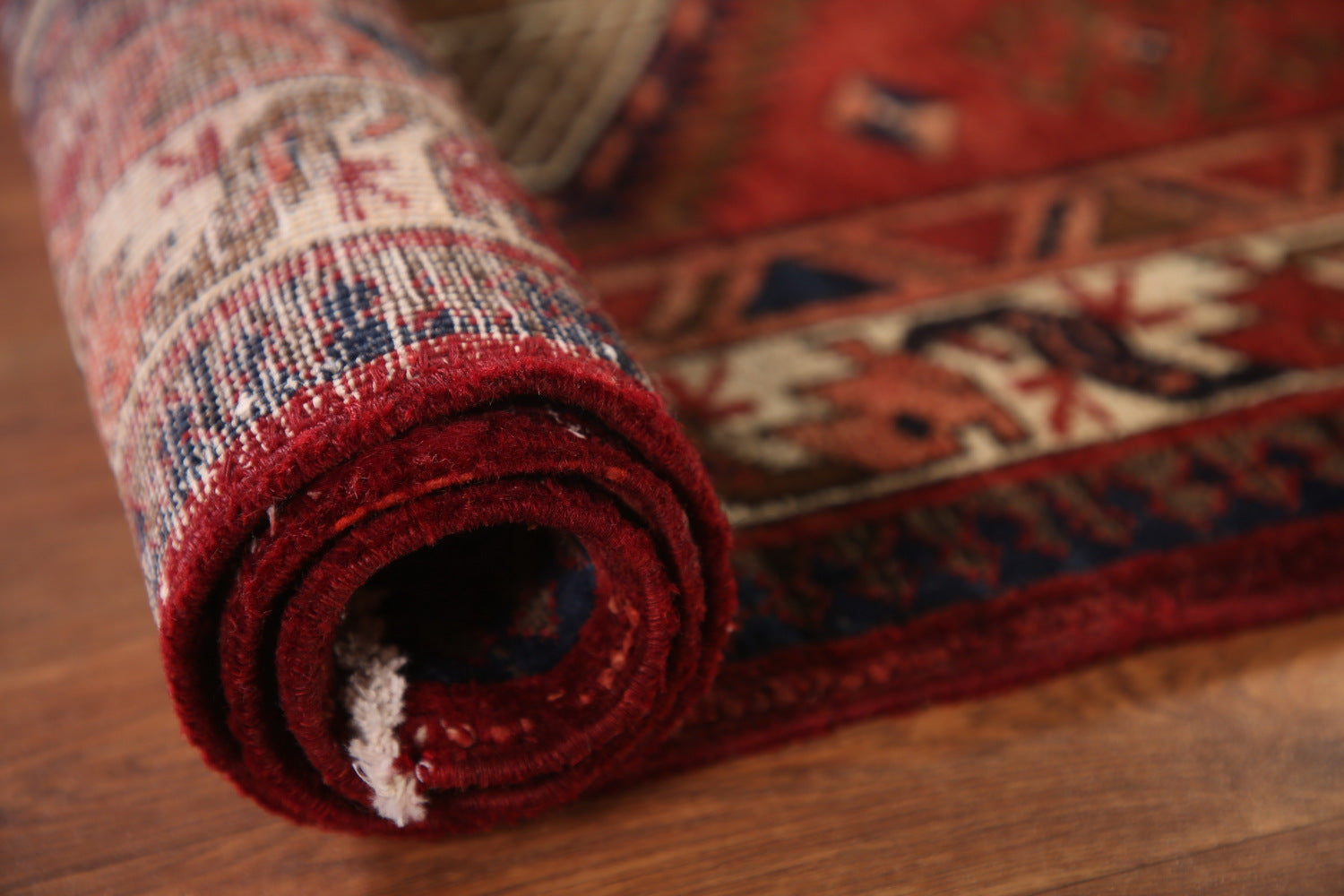 A Beautiful Genuine Persia ( Persia ) Ardebil rug is Hand Knotted by skillful weavers in Persia ( Persia ) with 100% Wool Material. This rug is in Very Good (Low Pile-Abrash) condition. dimensions are 11' 2'' X 3' 6'' in foot and 340 X 107 in centimeter. the primary color is Red.
