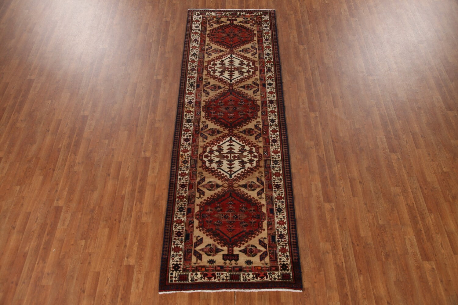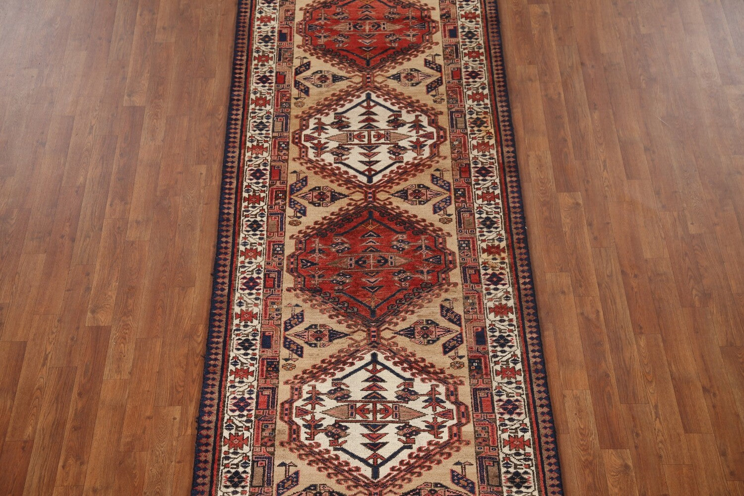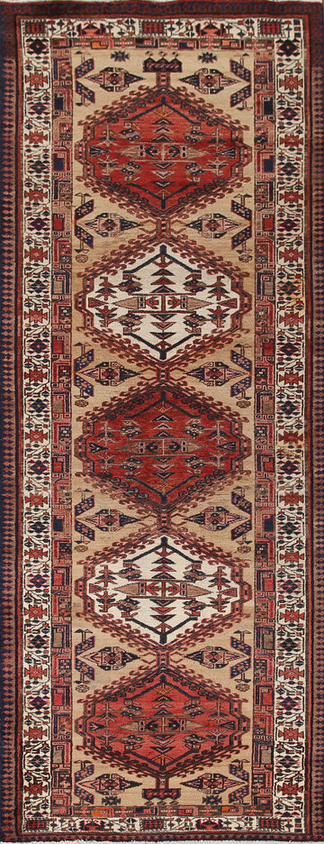 A Beautiful Genuine Persia ( Persia ) Ardebil rug is Hand Knotted by skillful weavers in Persia ( Persia ) with 100% Wool Material. This rug is in Very Good(Evenly Low Pile) condition. dimensions are 11' 1'' X 3' 6'' in foot and 338 X 107 in centimeter. the primary color is Beige & Ivories.