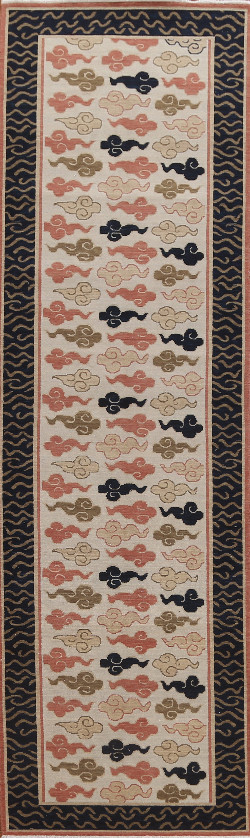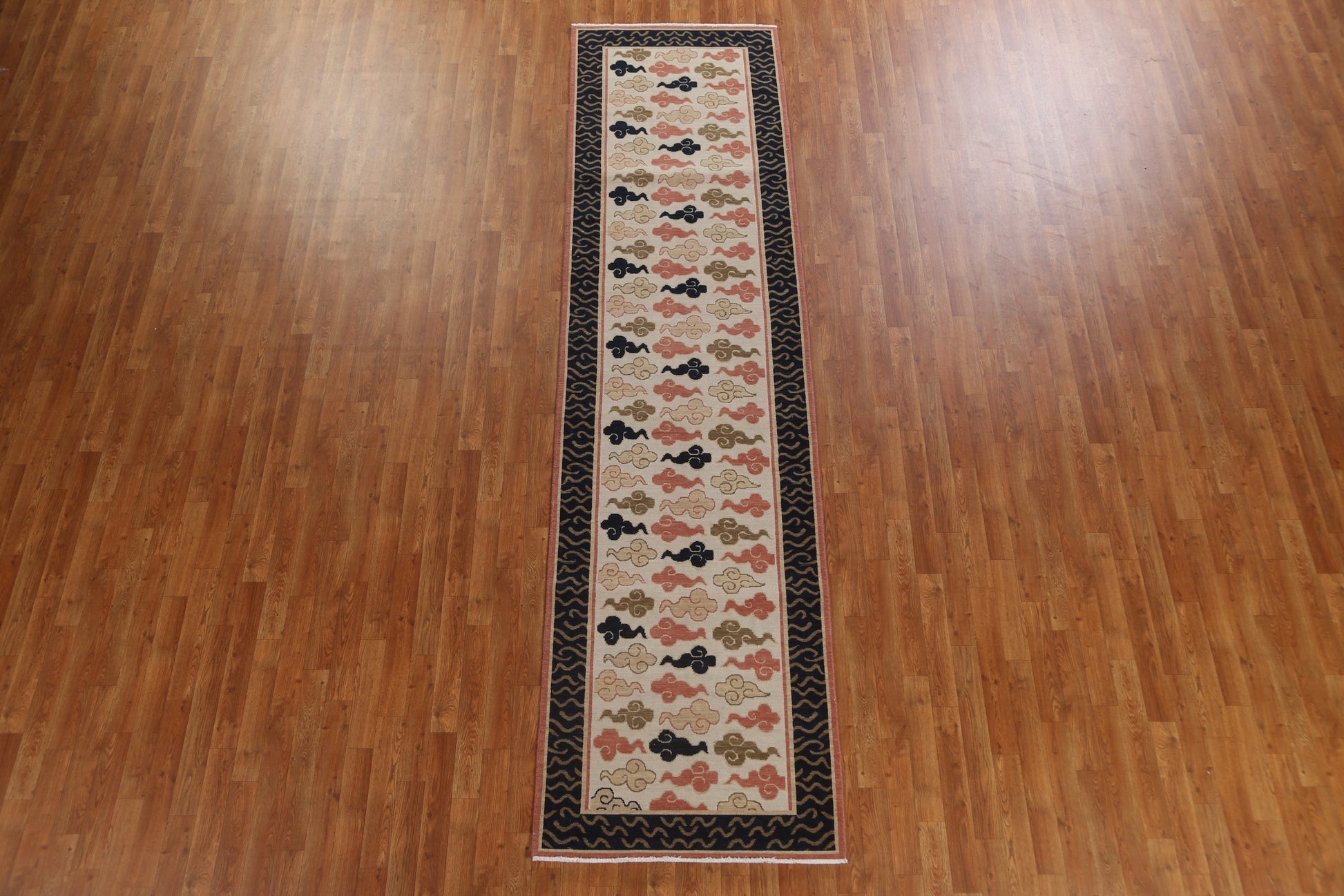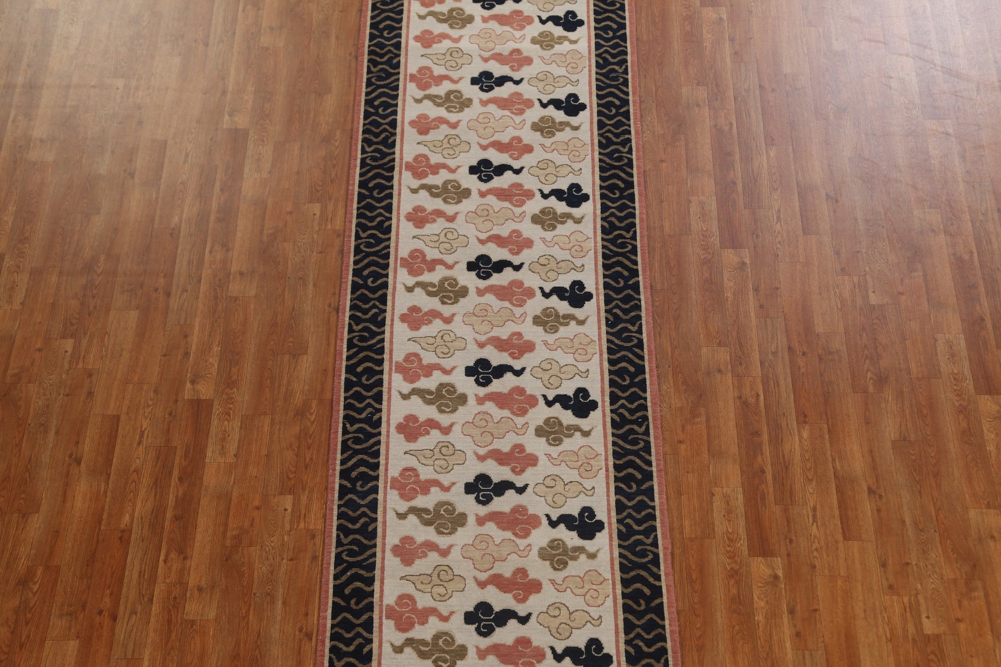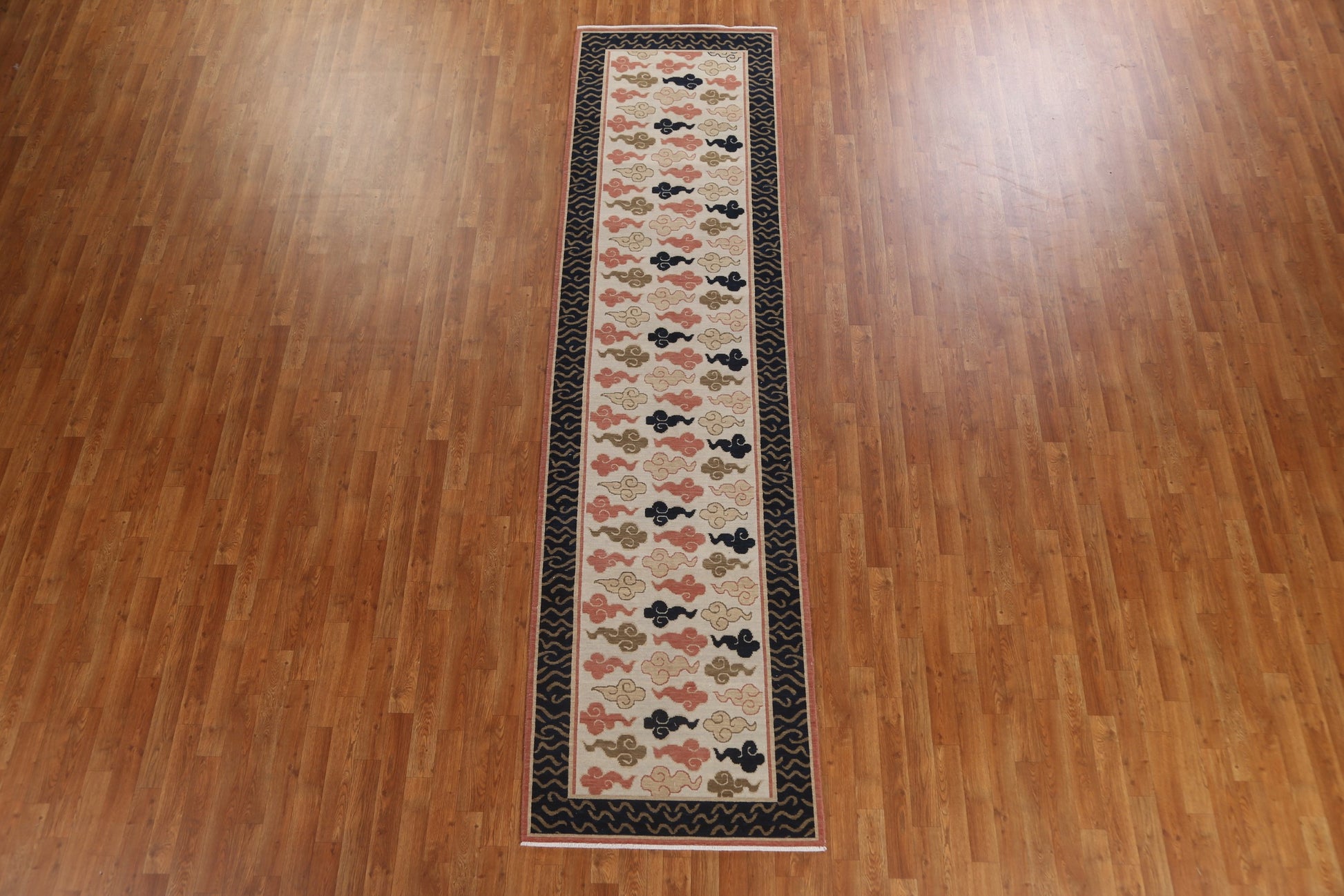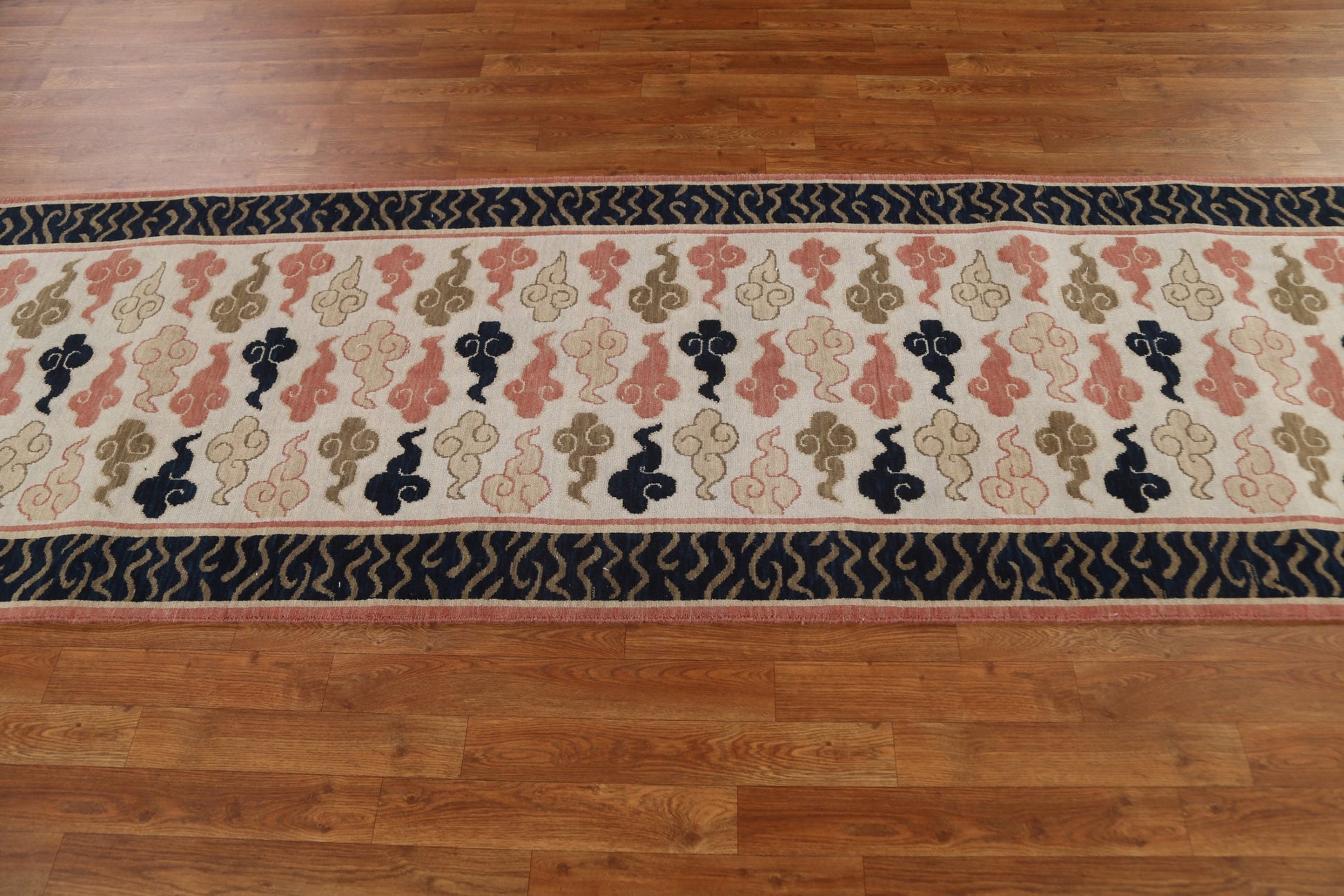 A Beautiful Genuine Turkey Art Deco rug is Hand Knotted by skillful weavers in Turkey with 100% Wool Material. This rug is in New, First Quality condition. dimensions are 11' 8'' X 2' 11'' in foot and 356 X 89 in centimeter. the primary color is Beige & Ivories.