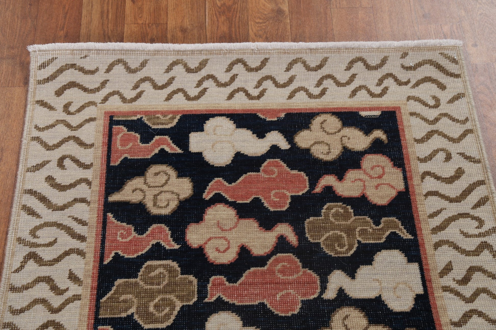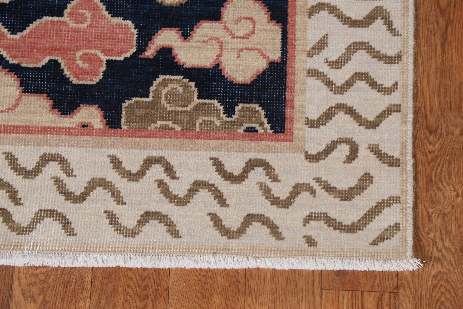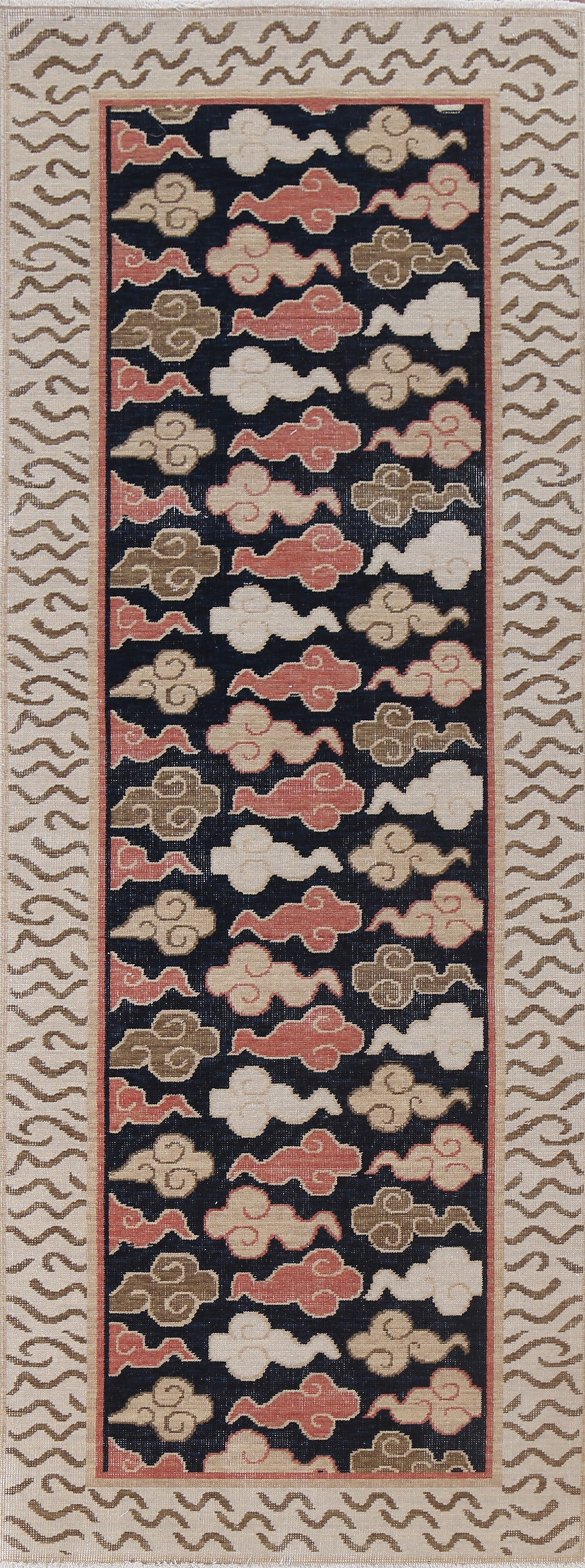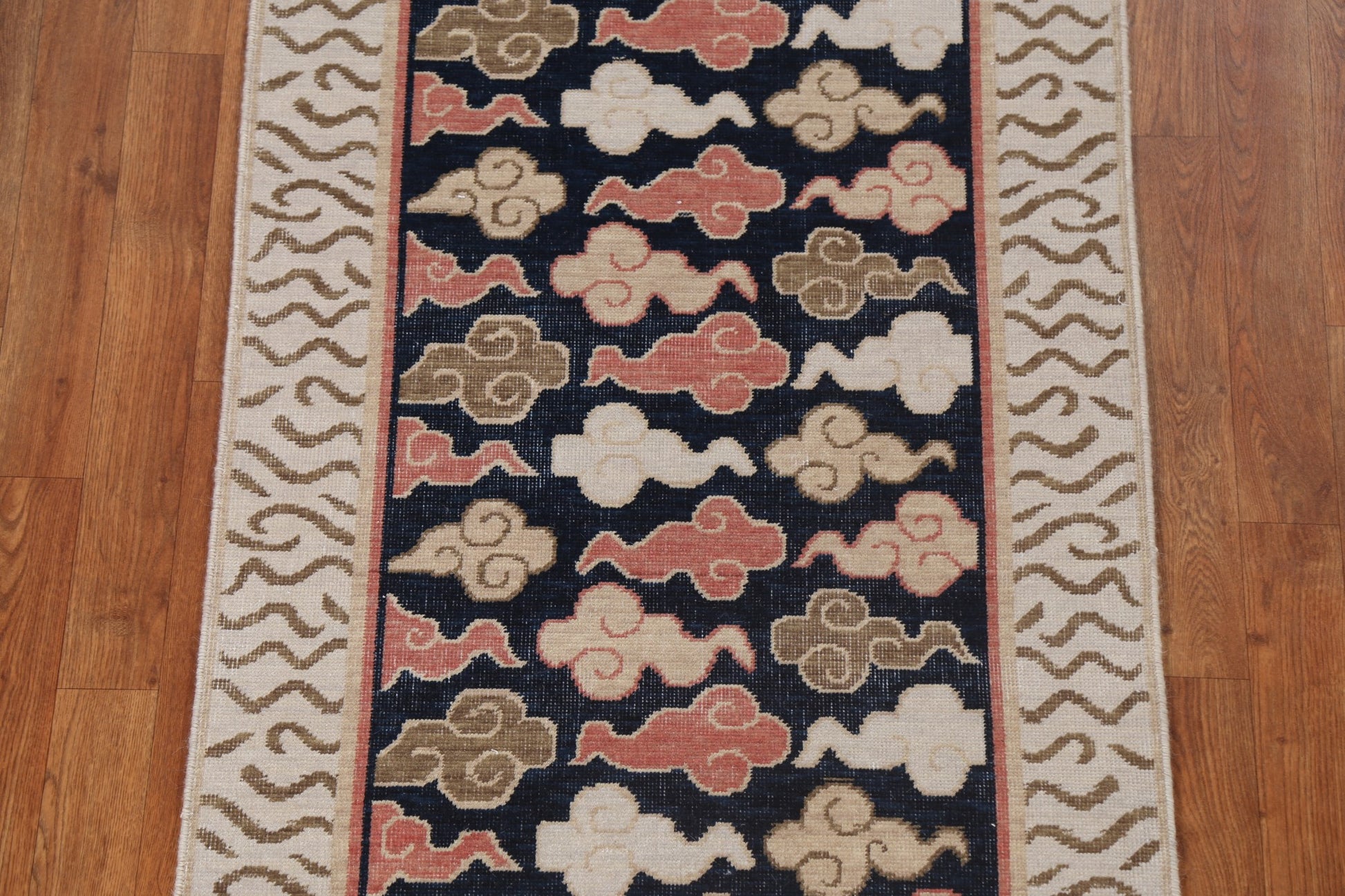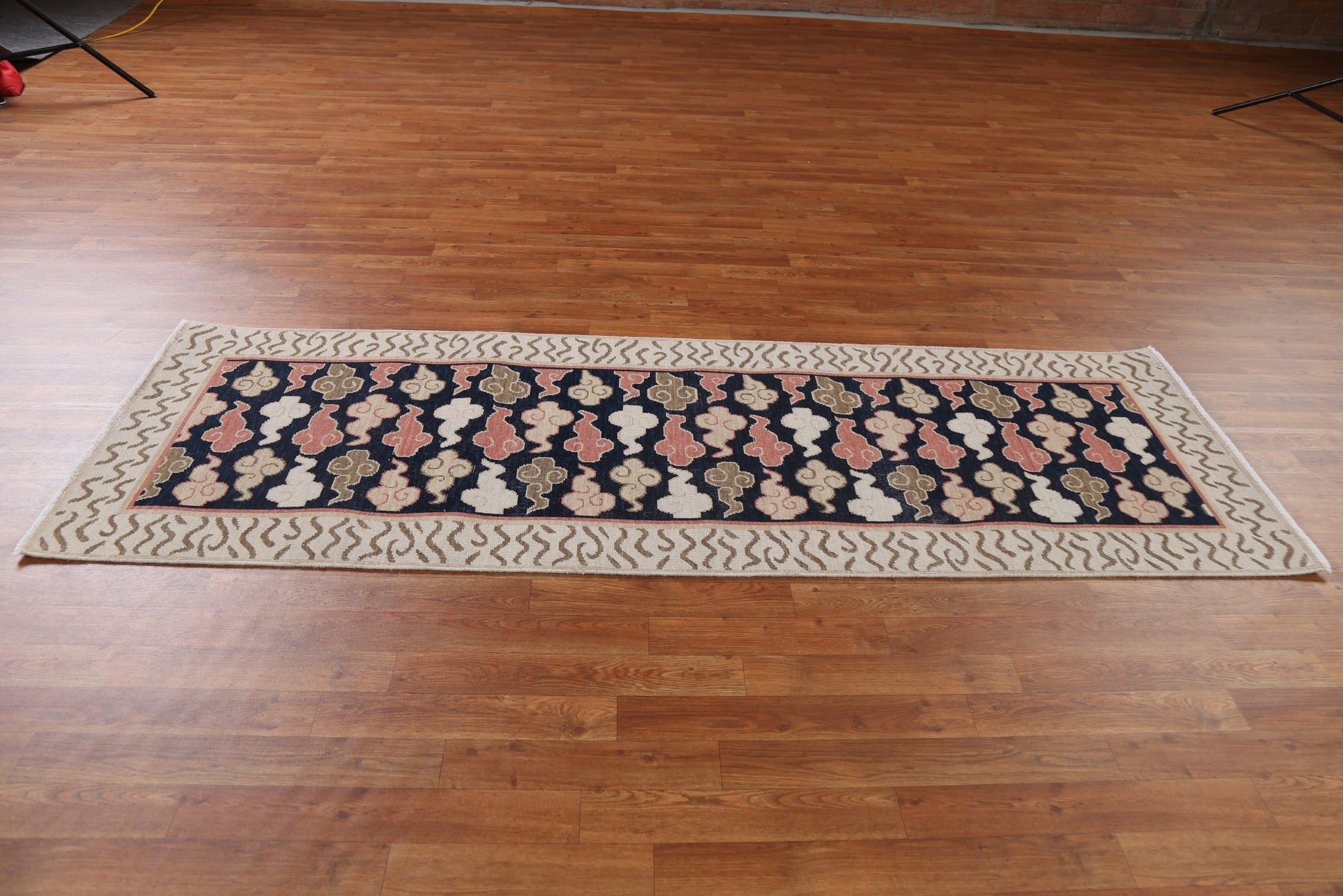 A Beautiful Genuine Turkey Art Deco rug is Hand Knotted by skillful weavers in Turkey with 100% Wool Material. This rug is in New, First Quality condition. dimensions are 7' 9'' X 2' 8'' in foot and 236 X 81 in centimeter. the primary color is Navy Blue & Blues.
