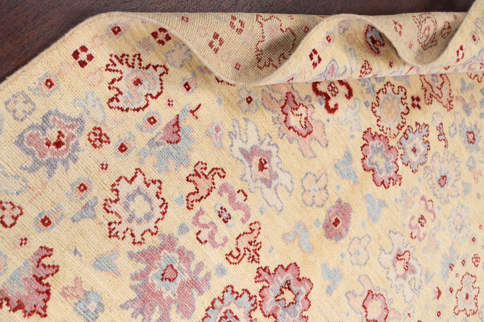 A Beautiful Genuine Turkey Oushak rug is Hand Knotted by skillful weavers in Turkey with 100% Wool Material. This rug is in New, First Quality condition. dimensions are 7' 10'' X 4' 11'' in foot and 239 X 150 in centimeter. the primary color is Yellow & Gold.