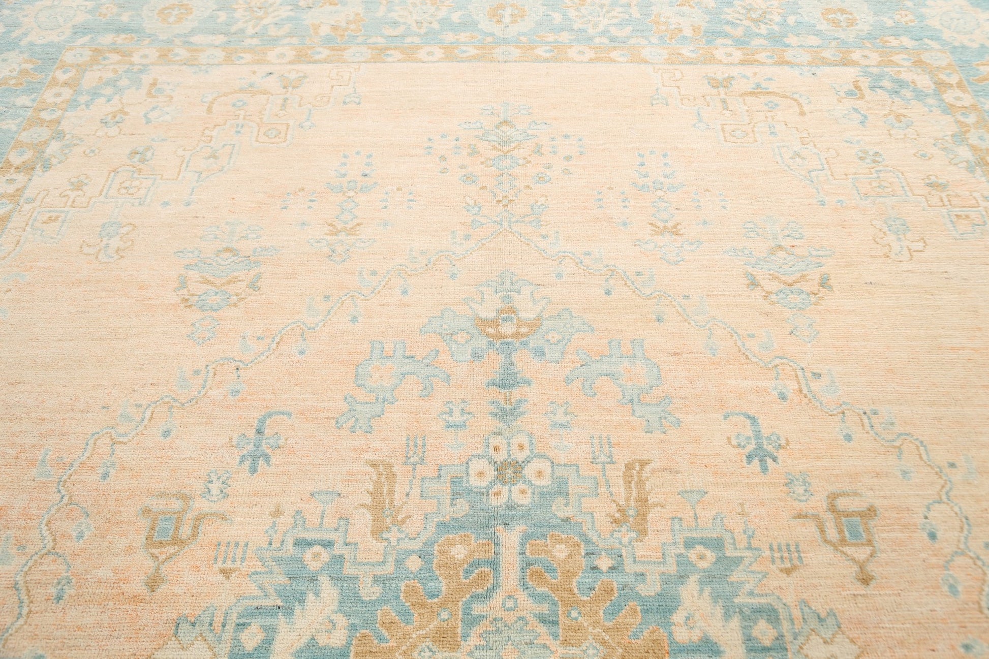 A Beautiful Genuine Turkey Oushak rug is Hand Knotted by skillful weavers in Turkey with 100% Wool Material. This rug is in New, First Quality condition. dimensions are 12' 0'' X 9' 0'' in foot and 366 X 274 in centimeter. the primary color is Peach.