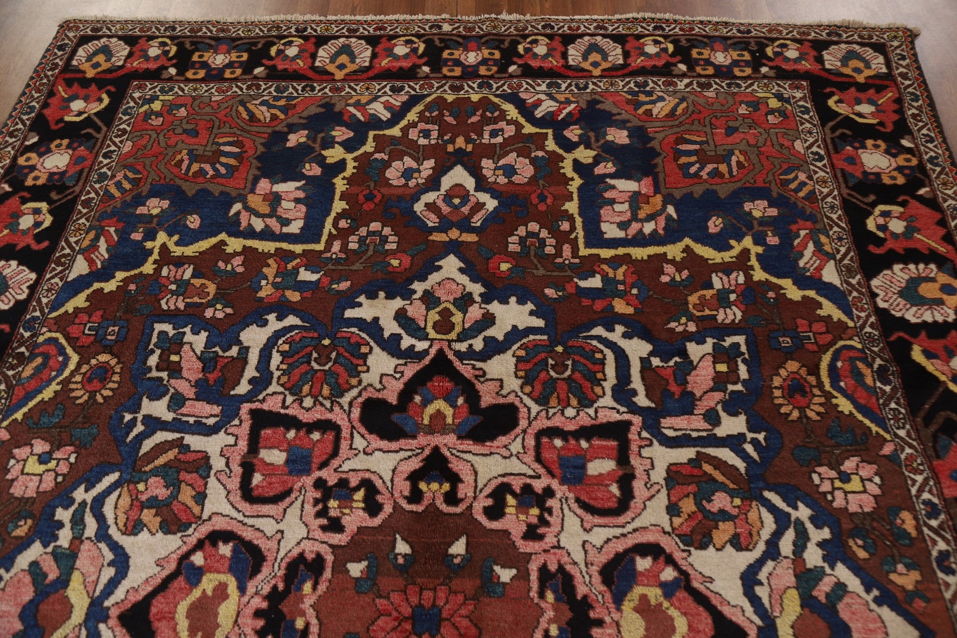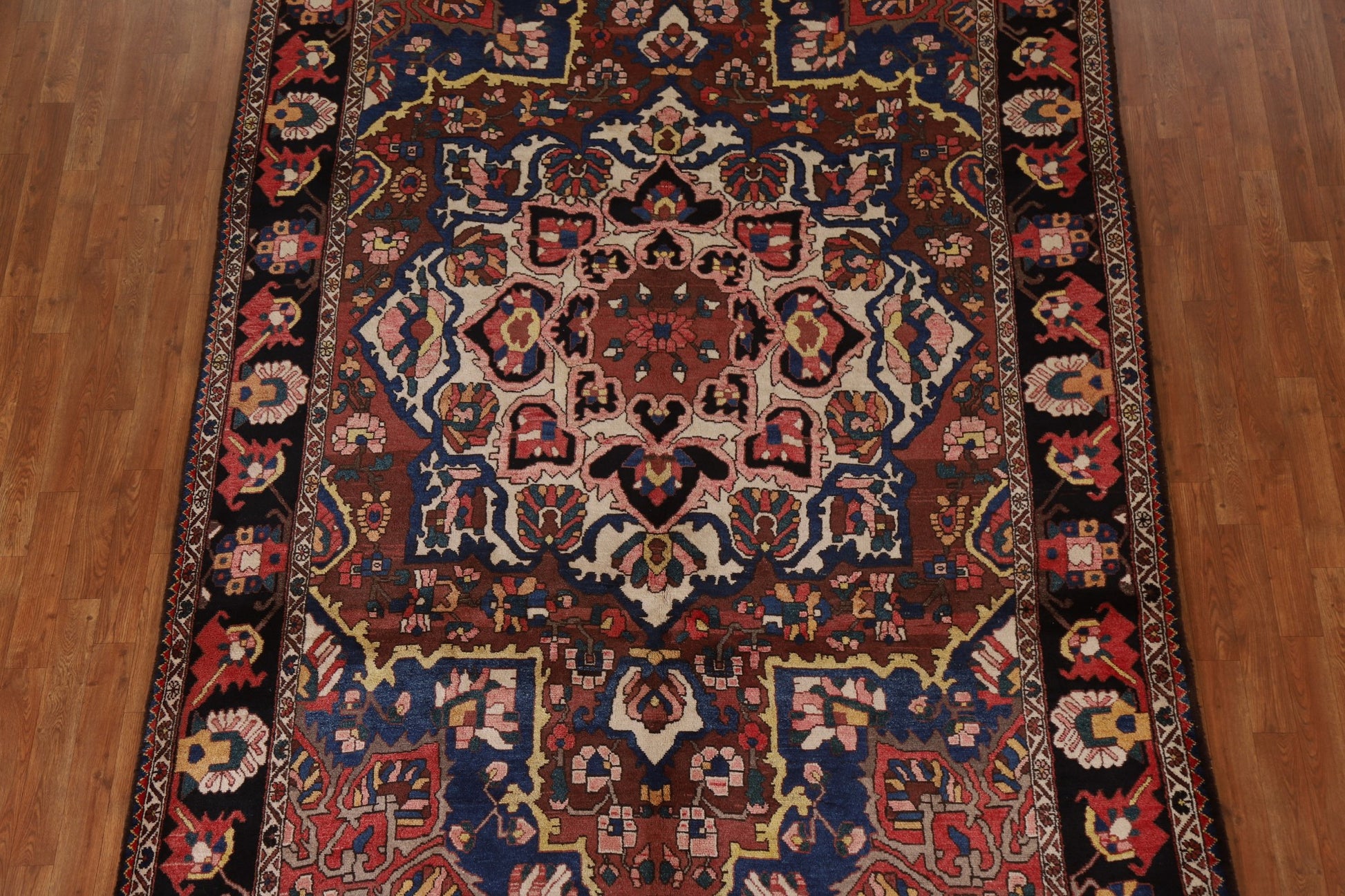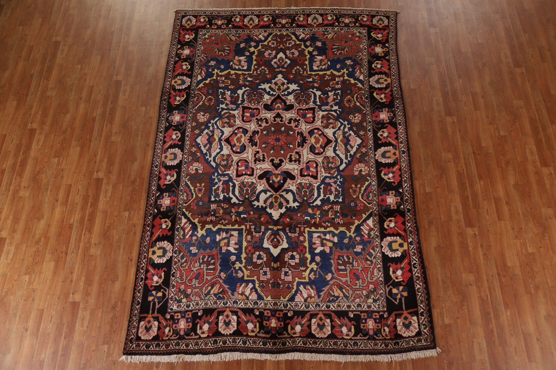 A Beautiful Genuine Persia ( Persia ) Bakhtiari rug is Hand Knotted by skillful weavers in Persia ( Persia ) with 100% Wool Material. This rug is in Excellent ( Abrash ) condition. dimensions are 10' 5'' X 6' 10'' in foot and 318 X 208 in centimeter. the primary color is Brown.
