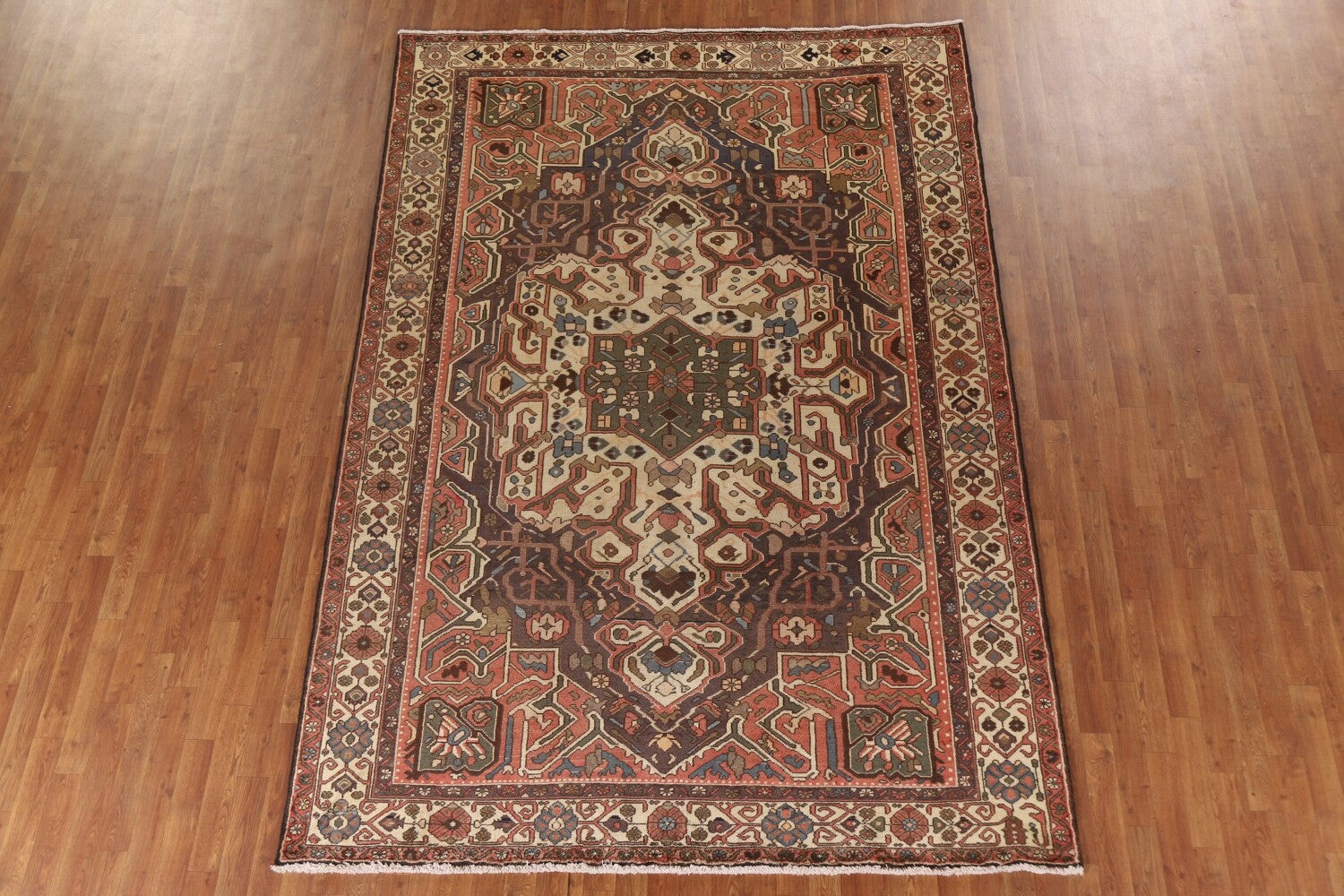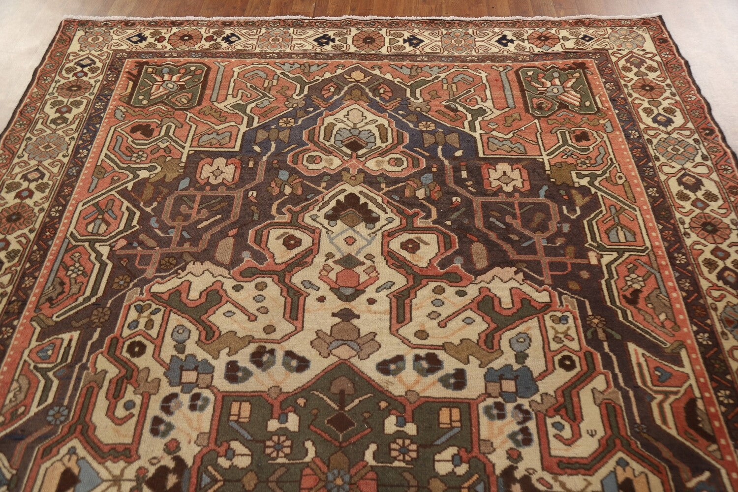 A Beautiful Genuine Persia ( Persia ) Bakhtiari rug is Hand Knotted by skillful weavers in Persia ( Persia ) with 100% Wool Material. This rug is in Very Good (Evenly Low Pile) condition. dimensions are 10' 2'' X 7' 1'' in foot and 310 X 216 in centimeter. the primary color is Beige & Ivories.