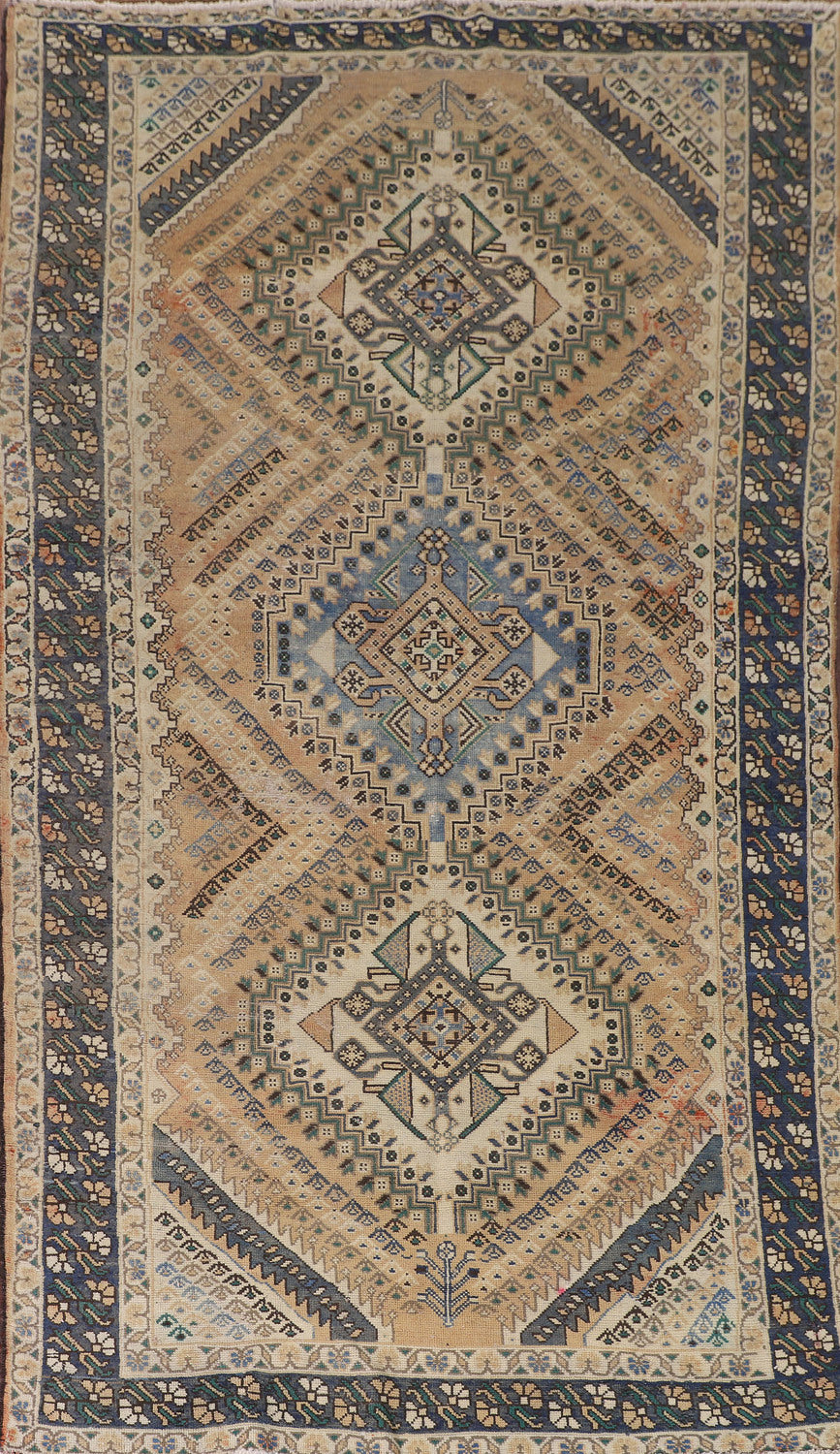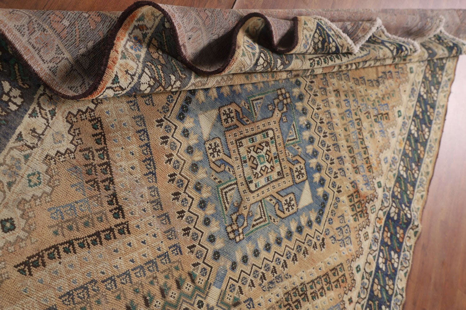 A Beautiful Genuine Persia ( Persia ) Bakhtiari rug is Hand Knotted by skillful weavers in Persia ( Persia ) with 100% Wool Material. This rug is in Very Good (Evenly Low Pile-Stain) condition. dimensions are 9' 9'' X 5' 4'' in foot and 297 X 163 in centimeter. the primary color is Peach.