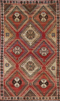 A Beautiful Genuine Persia ( Persia ) Bakhtiari rug is Hand Knotted by skillful weavers in Persia ( Persia ) with 100% Wool Material. This rug is in Very Good (Abrash) condition. dimensions are 7' 2'' X 4' 2'' in foot and 218 X 127 in centimeter. the primary color is Red.