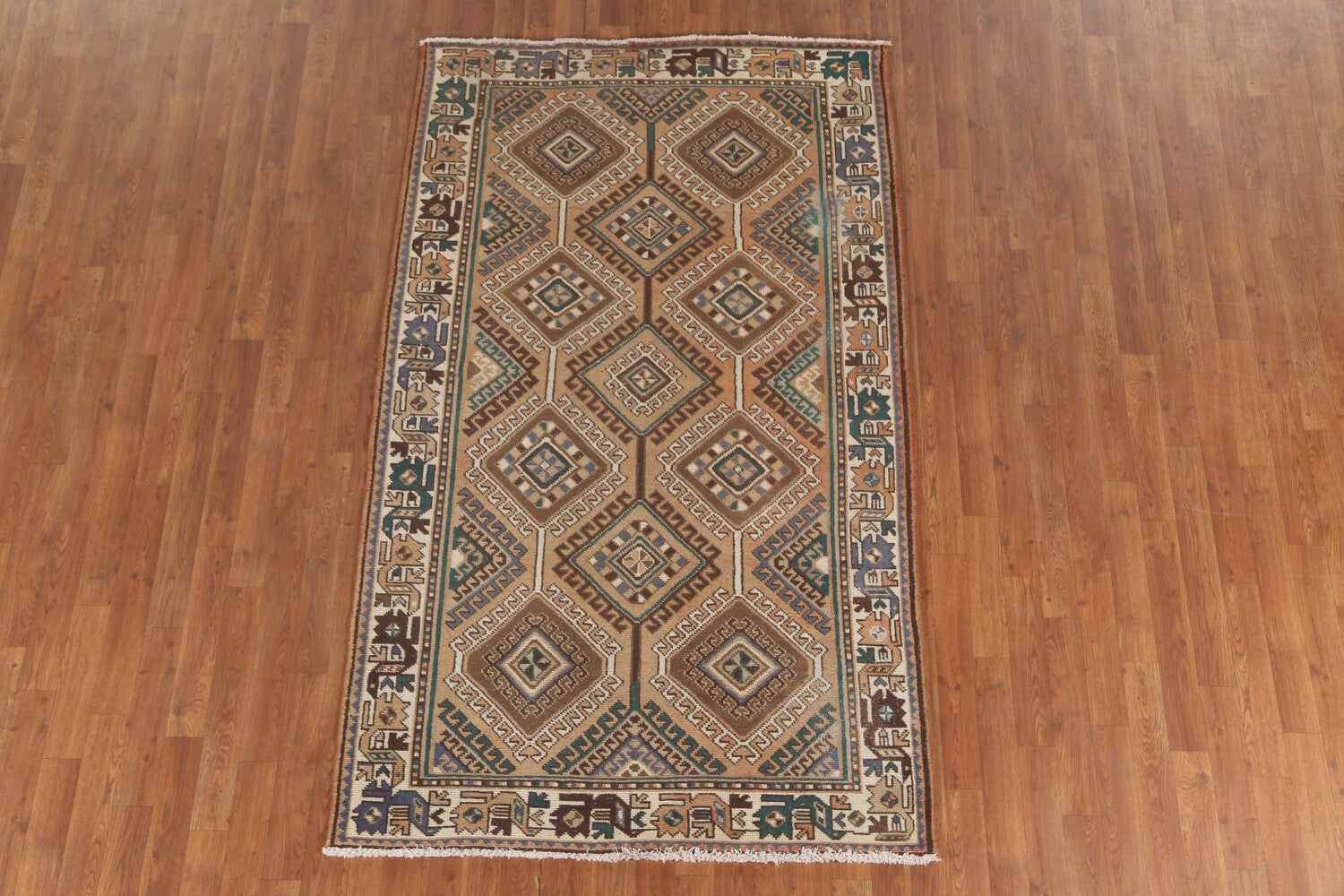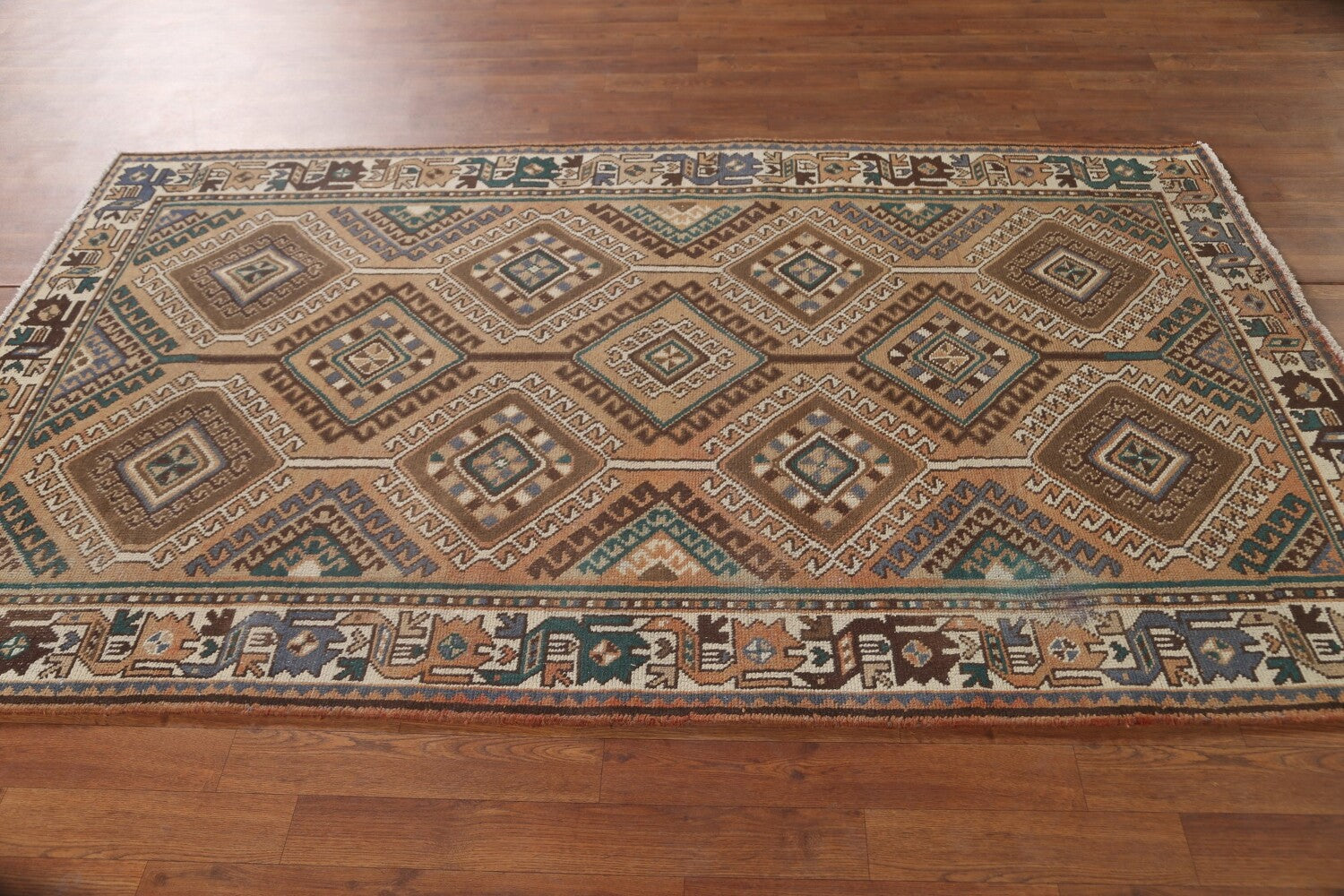 A Beautiful Genuine Persia ( Persia ) Bakhtiari rug is Hand Knotted by skillful weavers in Persia ( Persia ) with 100% Wool Material. This rug is in Very Good ( Low Pile ) condition. dimensions are 7' 3'' X 4' 5'' in foot and 221 X 135 in centimeter. the primary color is Peach.