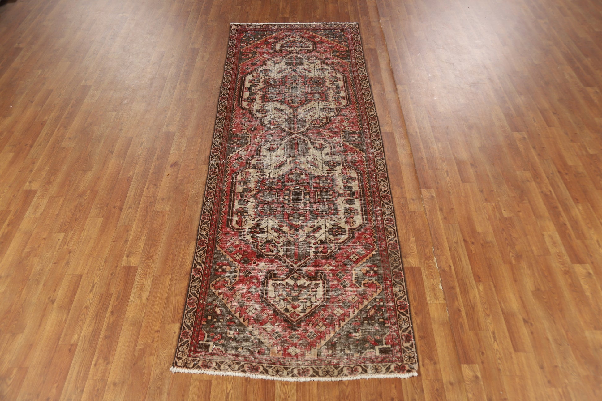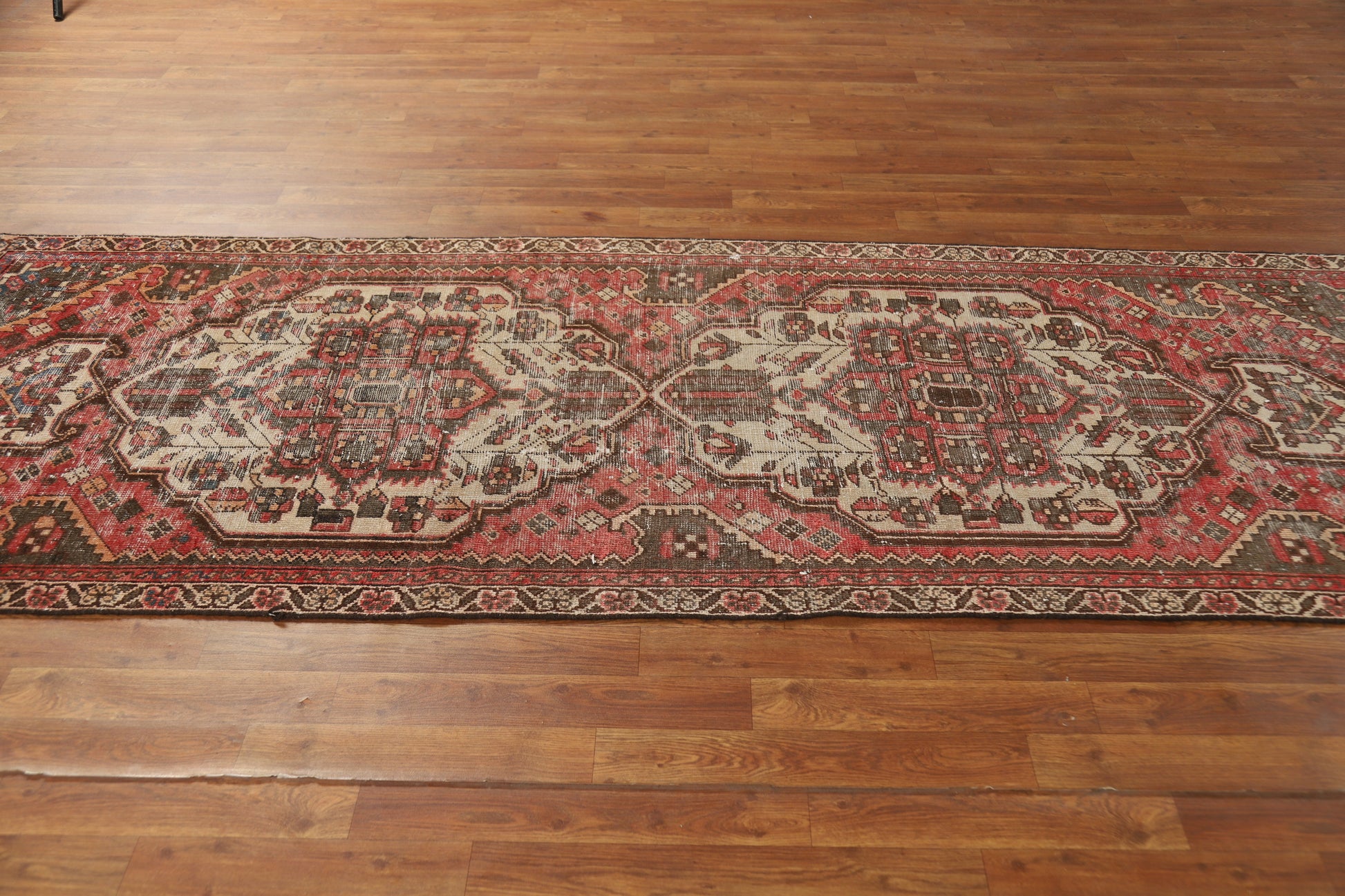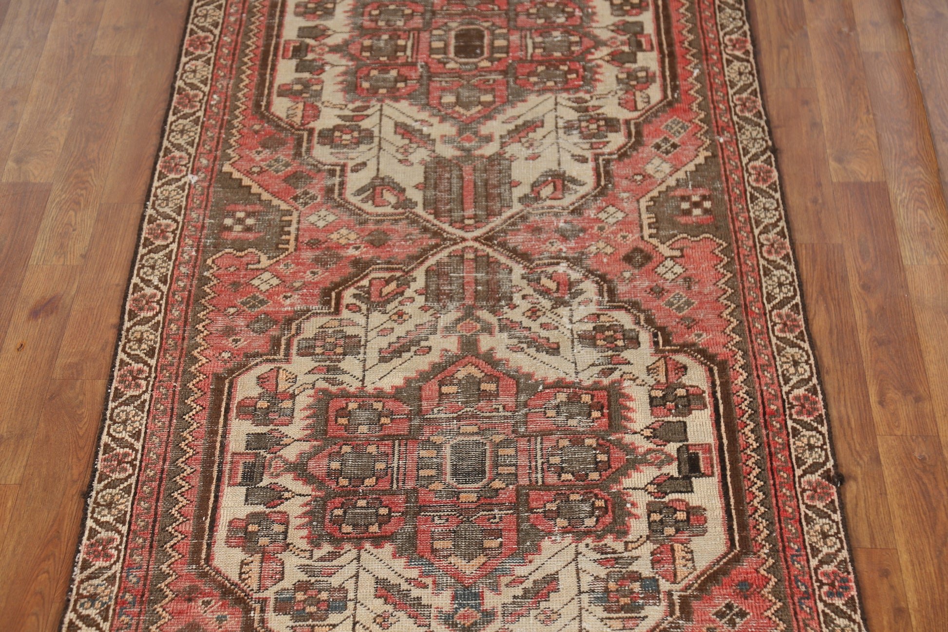 A Beautiful Genuine Persia ( Persia ) Bakhtiari rug is Hand Knotted by skillful weavers in Persia ( Persia ) with 100% Wool Material. This rug is in Very Good ( Low Pile ) condition. dimensions are 9' 7'' X 3' 4'' in foot and 292 X 102 in centimeter. the primary color is Pink.