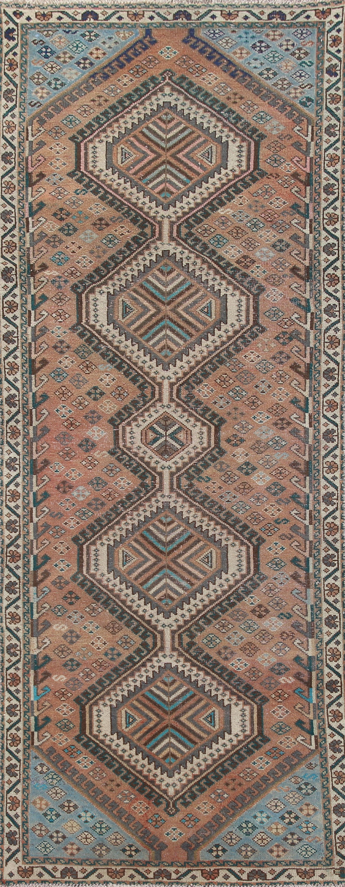 Geometric Bakhtiari Persian Runner Rug 4x10