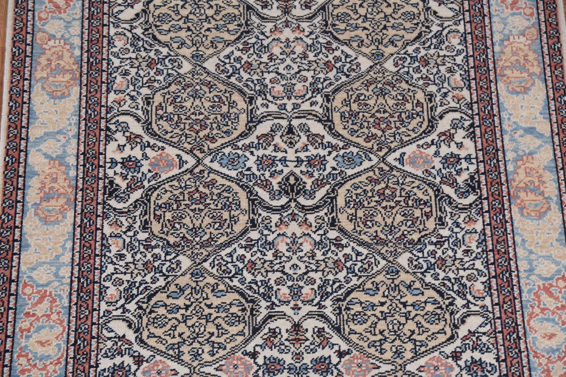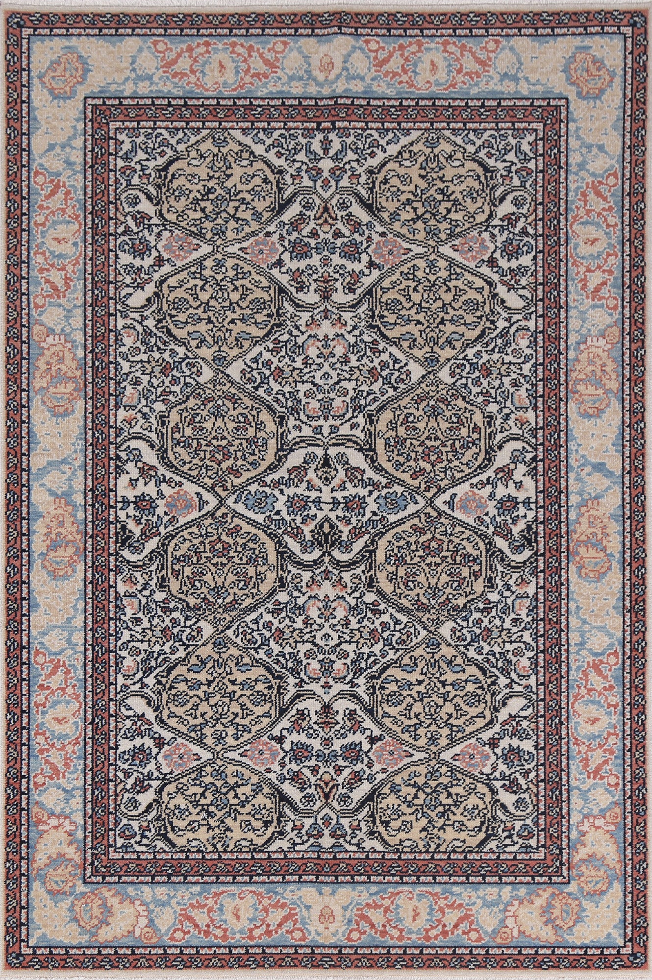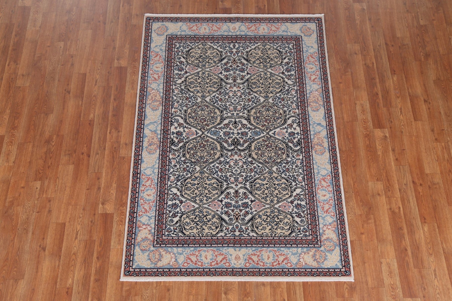 A Beautiful Genuine Turkey Bakhtiari rug is Hand Knotted by skillful weavers in Turkey with 100% Wool Material. This rug is in New, First Quality condition. dimensions are 5' 10'' X 3' 11'' in foot and 178 X 119 in centimeter. the primary color is Beige & Ivories.