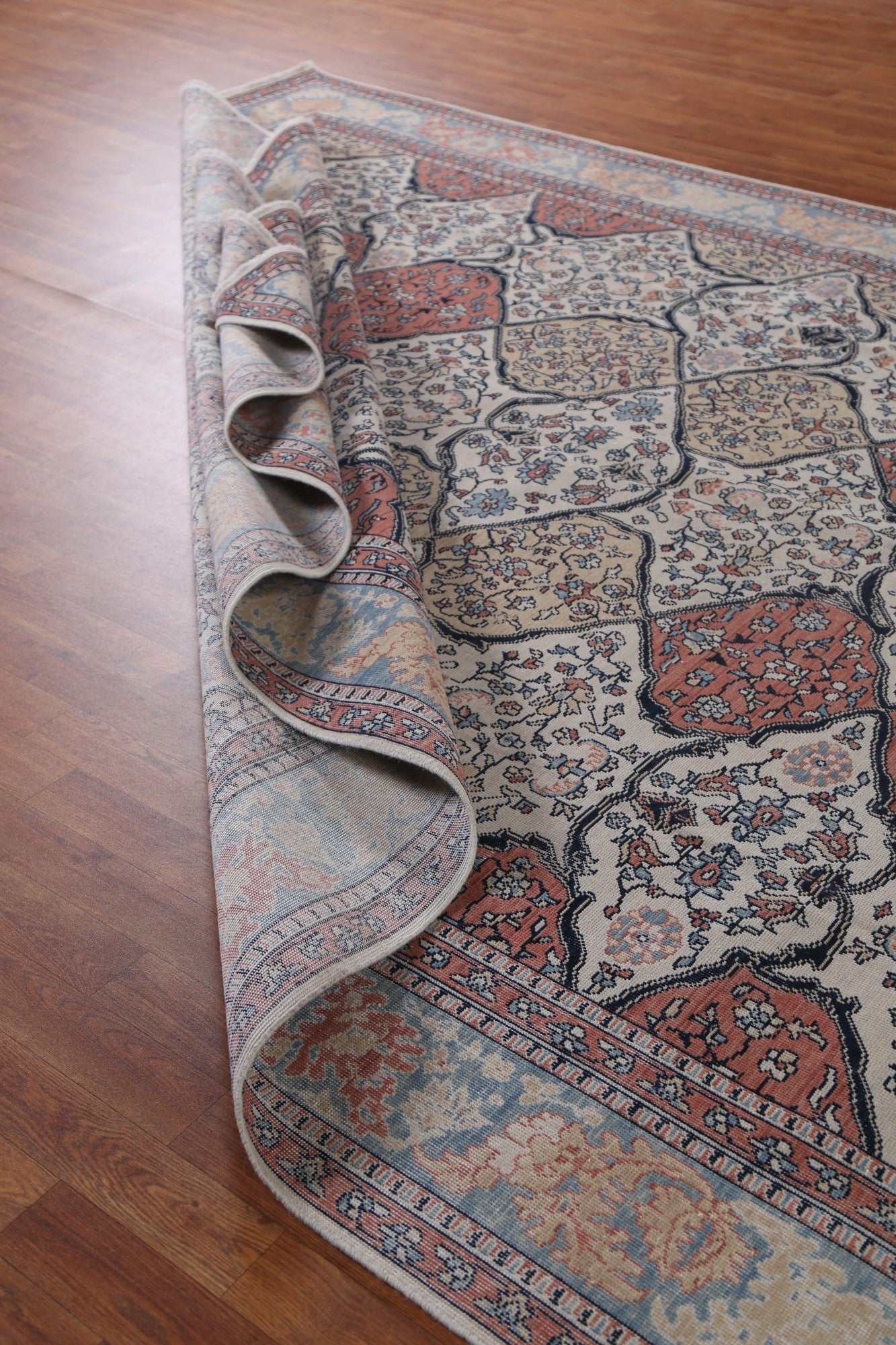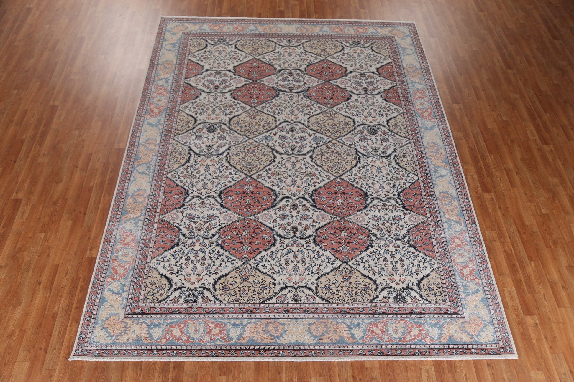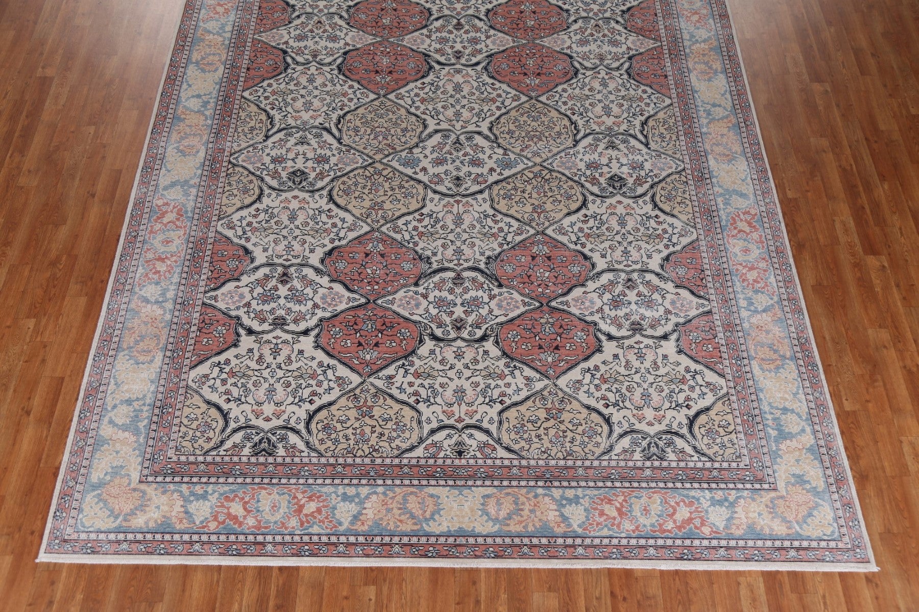 A Beautiful Genuine Turkey Bakhtiari rug is Hand Knotted by skillful weavers in Turkey with 100% Wool Material. This rug is in New, First Quality condition. dimensions are 12' 0'' X 9' 0'' in foot and 366 X 274 in centimeter. the primary color is Beige & Ivories.