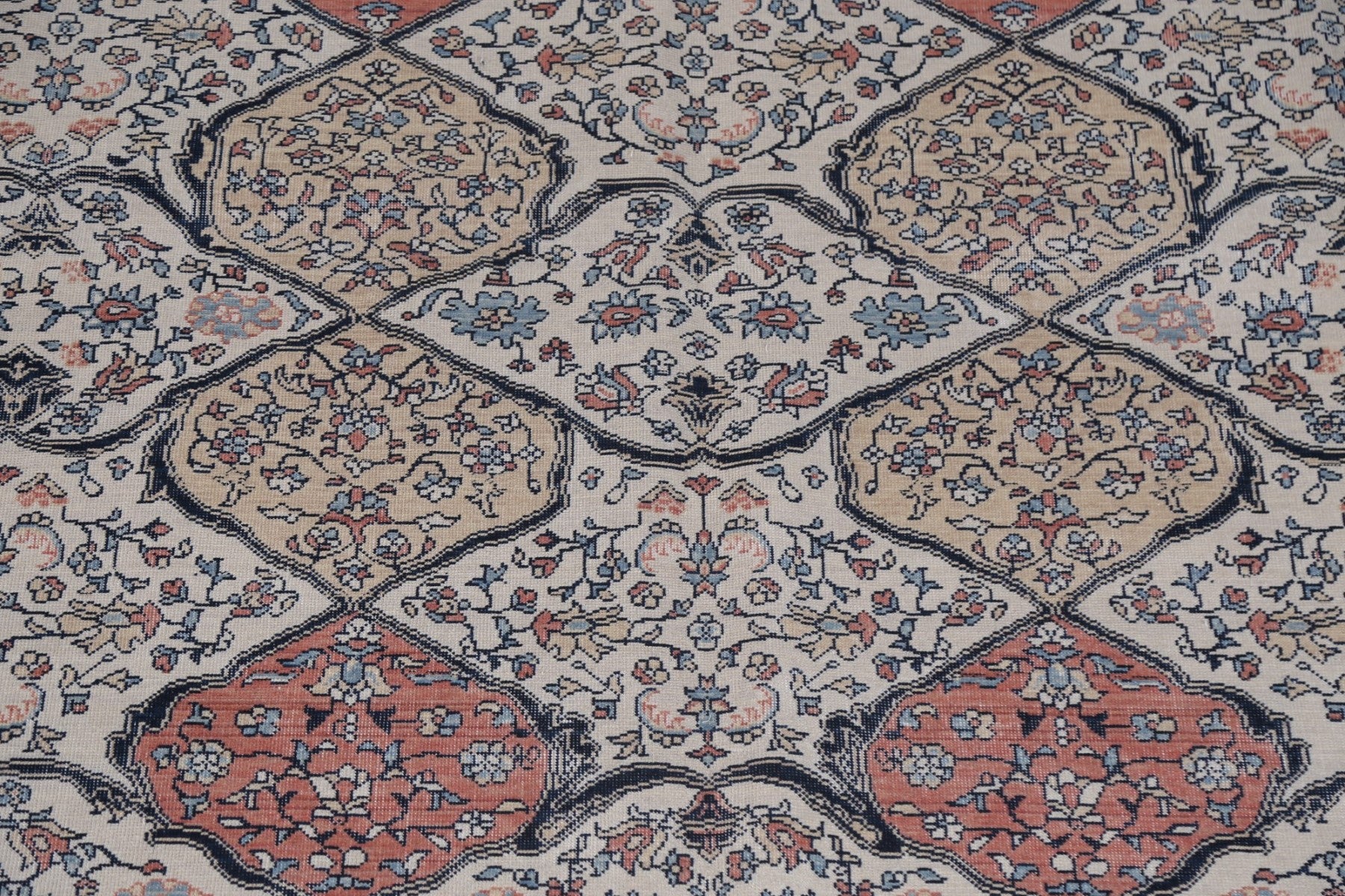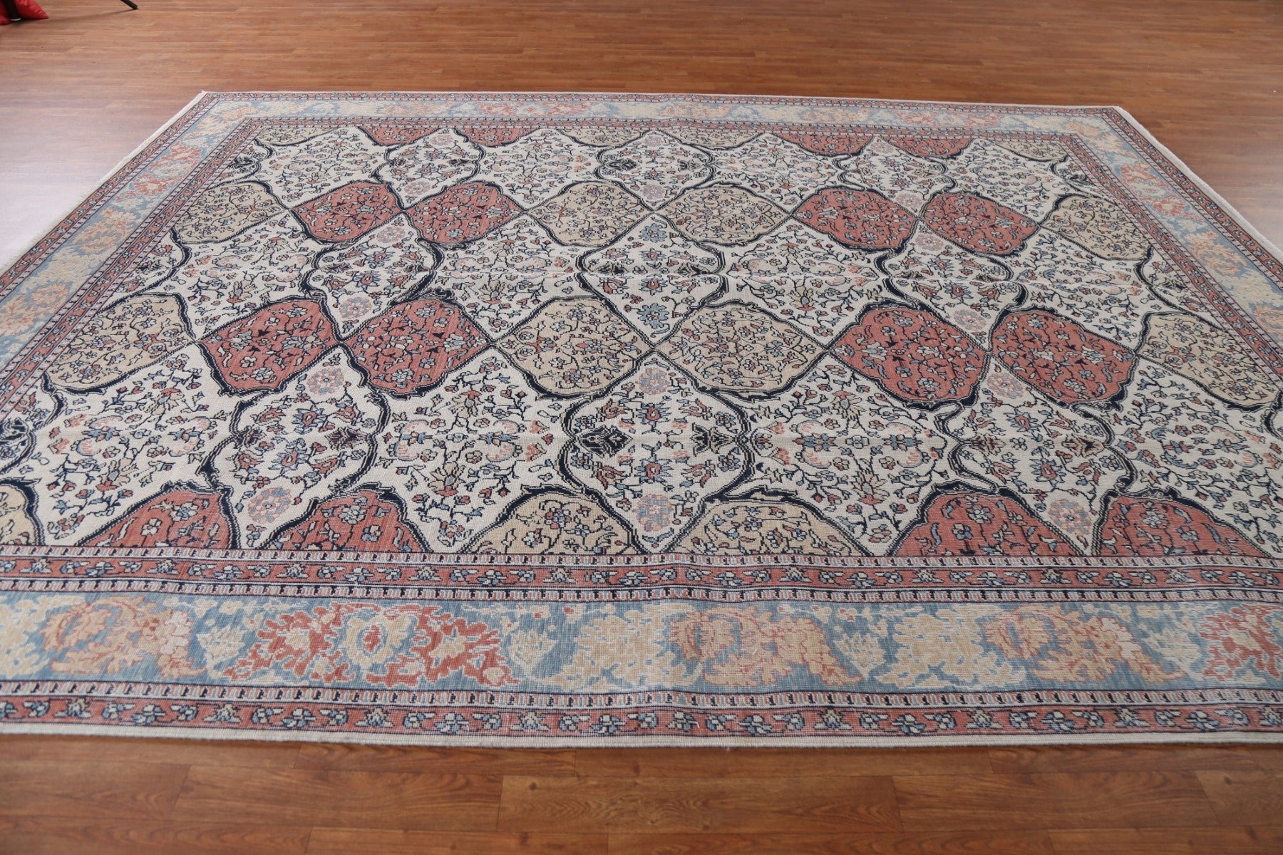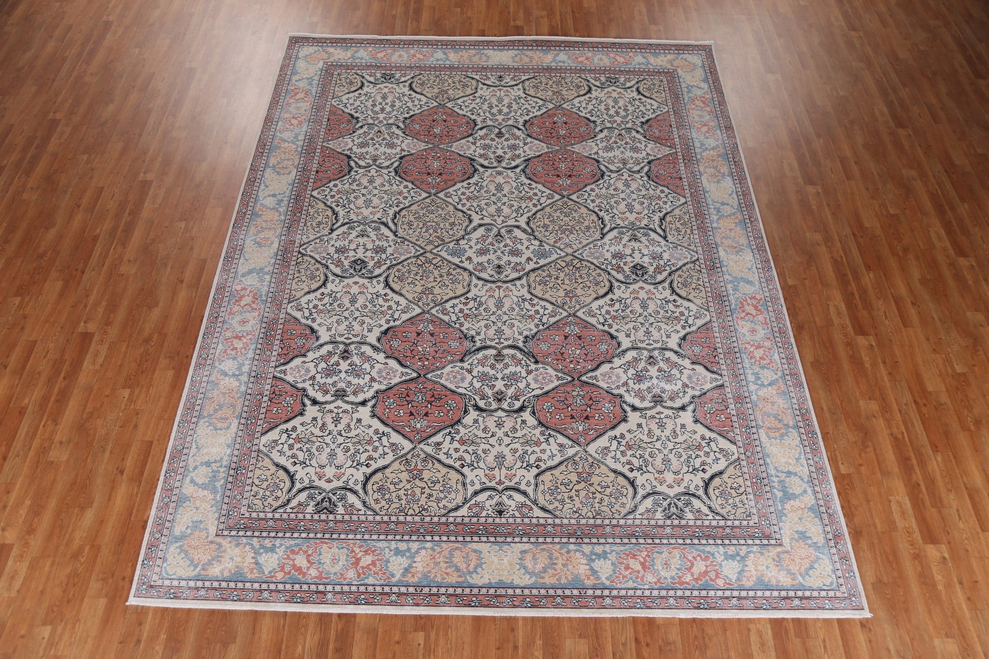 A Beautiful Genuine Turkey Bakhtiari rug is Hand Knotted by skillful weavers in Turkey with 100% Wool Material. This rug is in New, First Quality condition. dimensions are 12' 0'' X 9' 0'' in foot and 366 X 274 in centimeter. the primary color is Beige & Ivories.