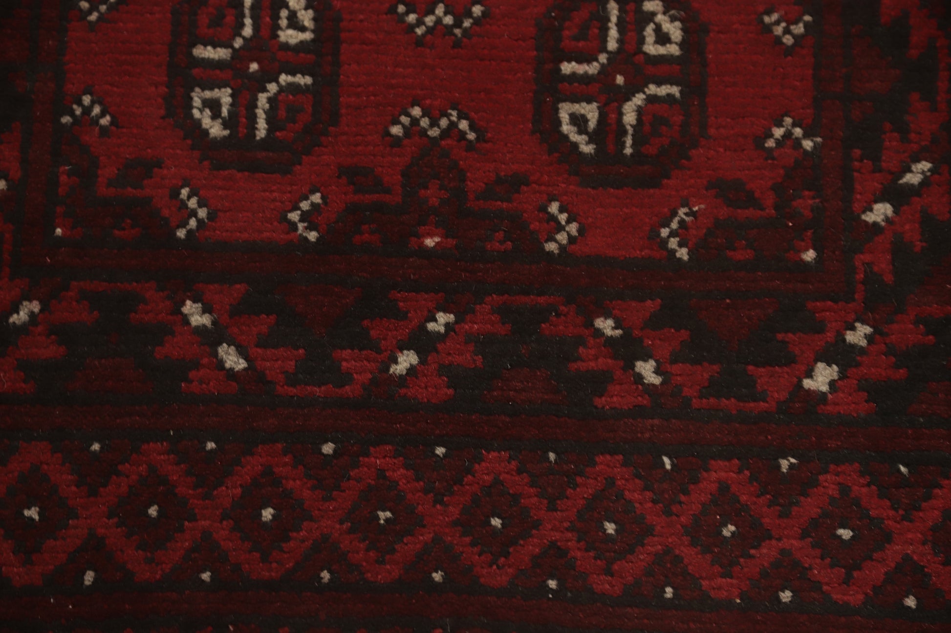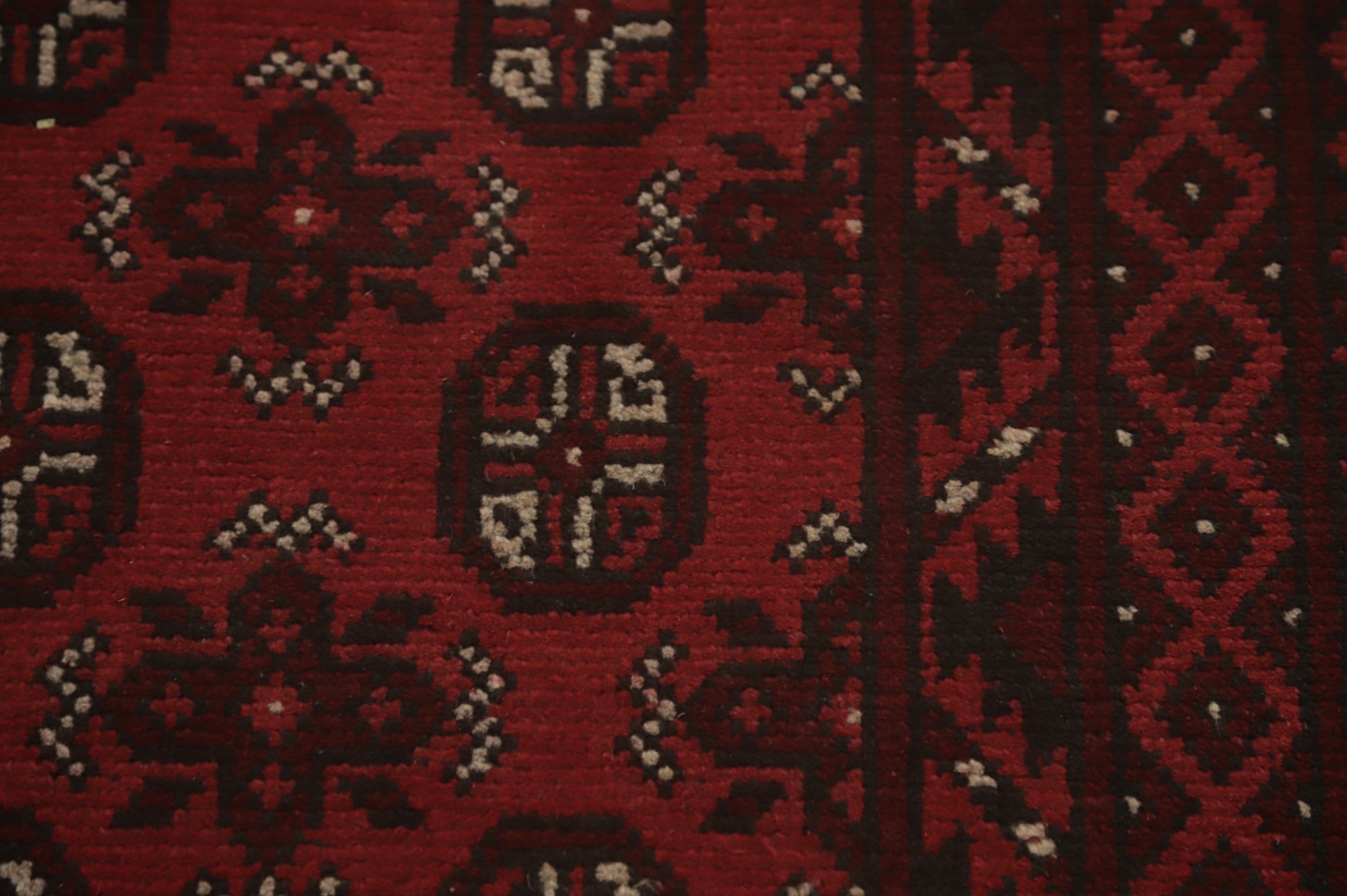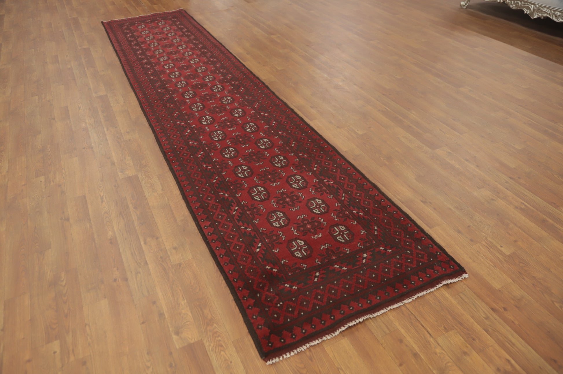 A Beautiful Genuine Afghanistan Balouch rug is Hand Knotted by skillful weavers in Afghanistan with 100% Wool Material. This rug is in New, First Quality condition. dimensions are 12' 7'' X 2' 8'' in foot and 384 X 81 in centimeter. the primary color is Red.