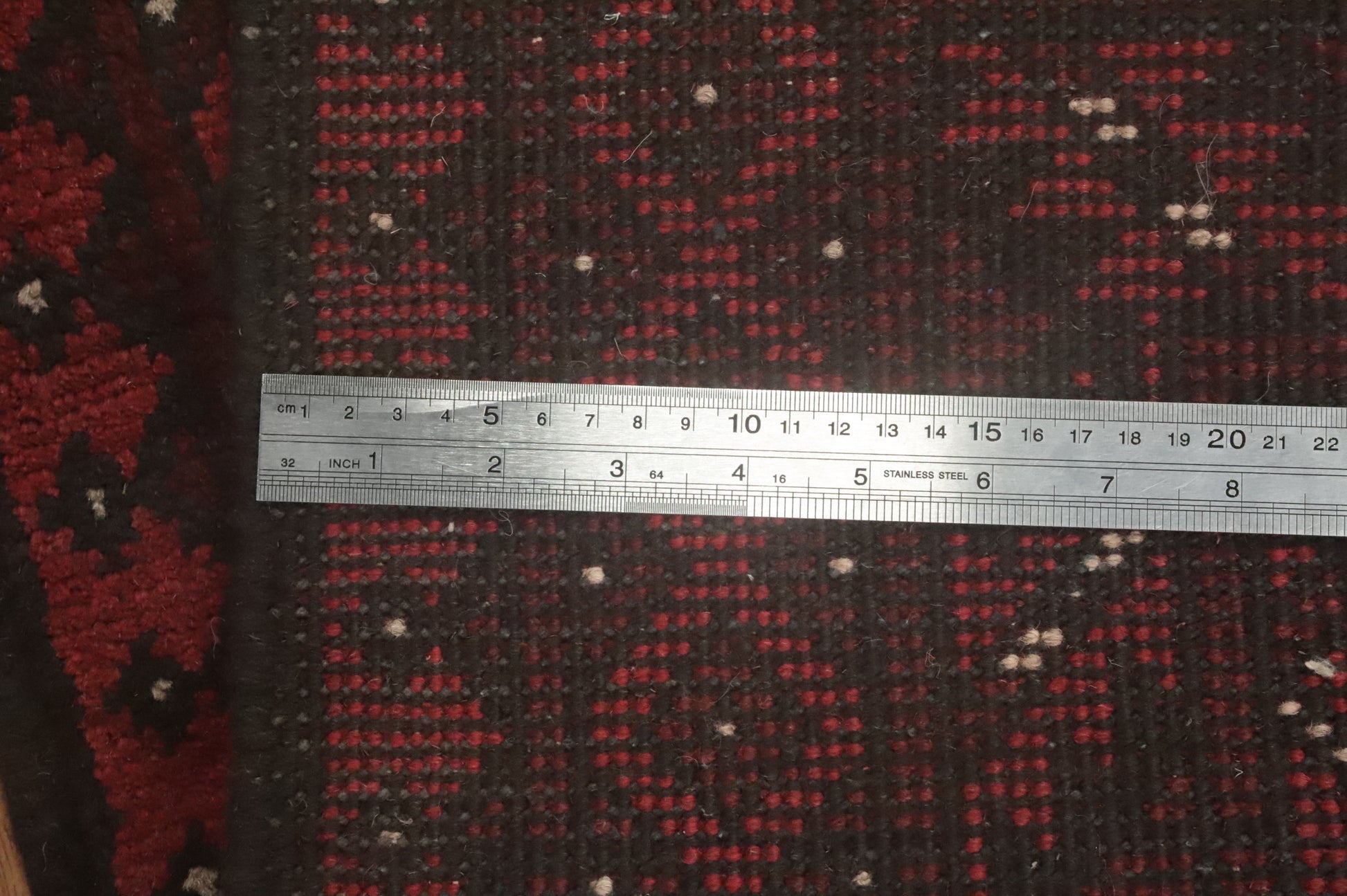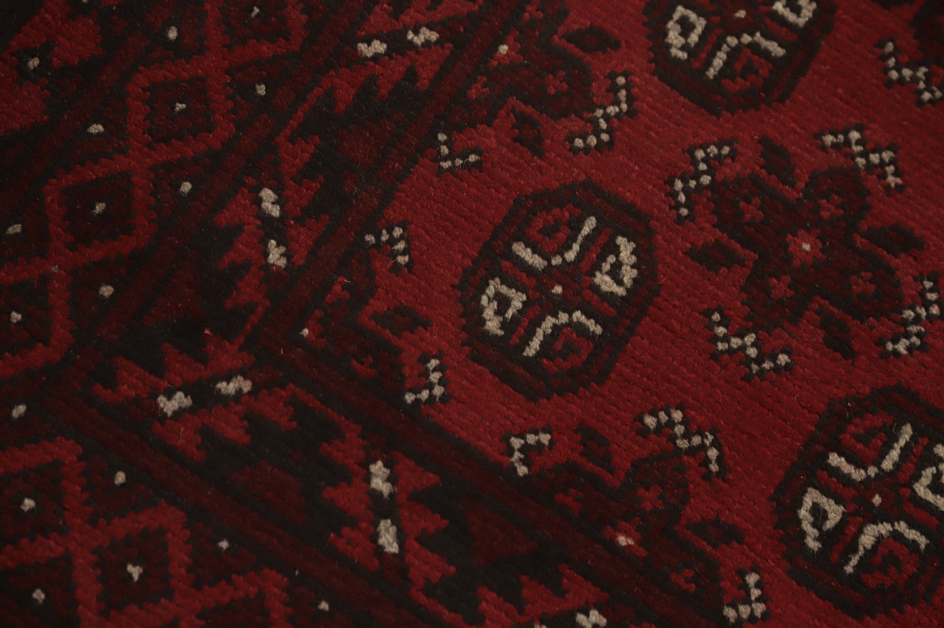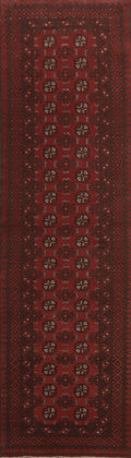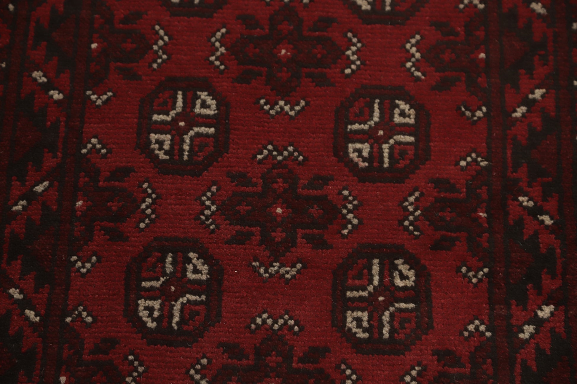 A Beautiful Genuine Afghanistan Balouch rug is Hand Knotted by skillful weavers in Afghanistan with 100% Wool Material. This rug is in New, First Quality condition. dimensions are 12' 7'' X 2' 8'' in foot and 384 X 81 in centimeter. the primary color is Red.