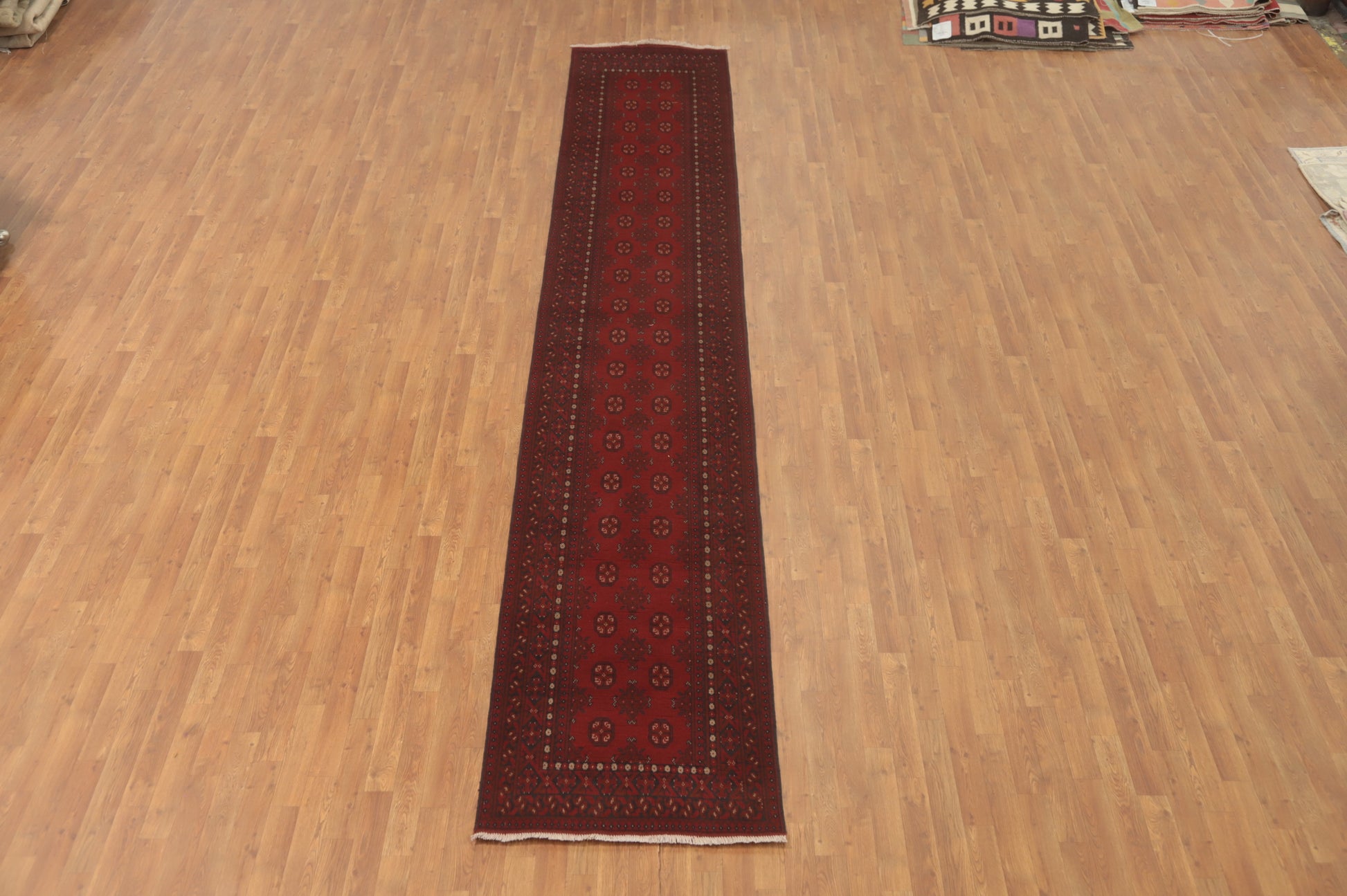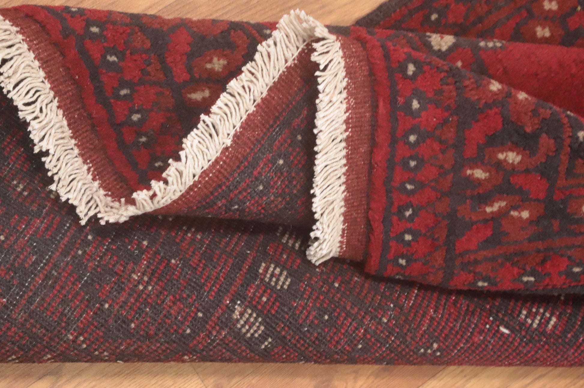 A Beautiful Genuine Afghanistan Balouch rug is Hand Knotted by skillful weavers in Afghanistan with 100% Wool Material. This rug is in New, First Quality condition. dimensions are 15' 11'' X 2' 9'' in foot and 485 X 84 in centimeter. the primary color is Red.