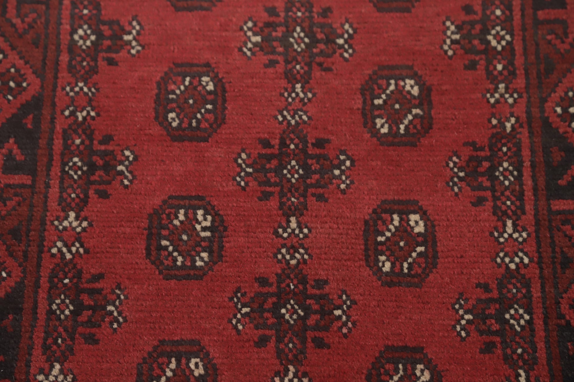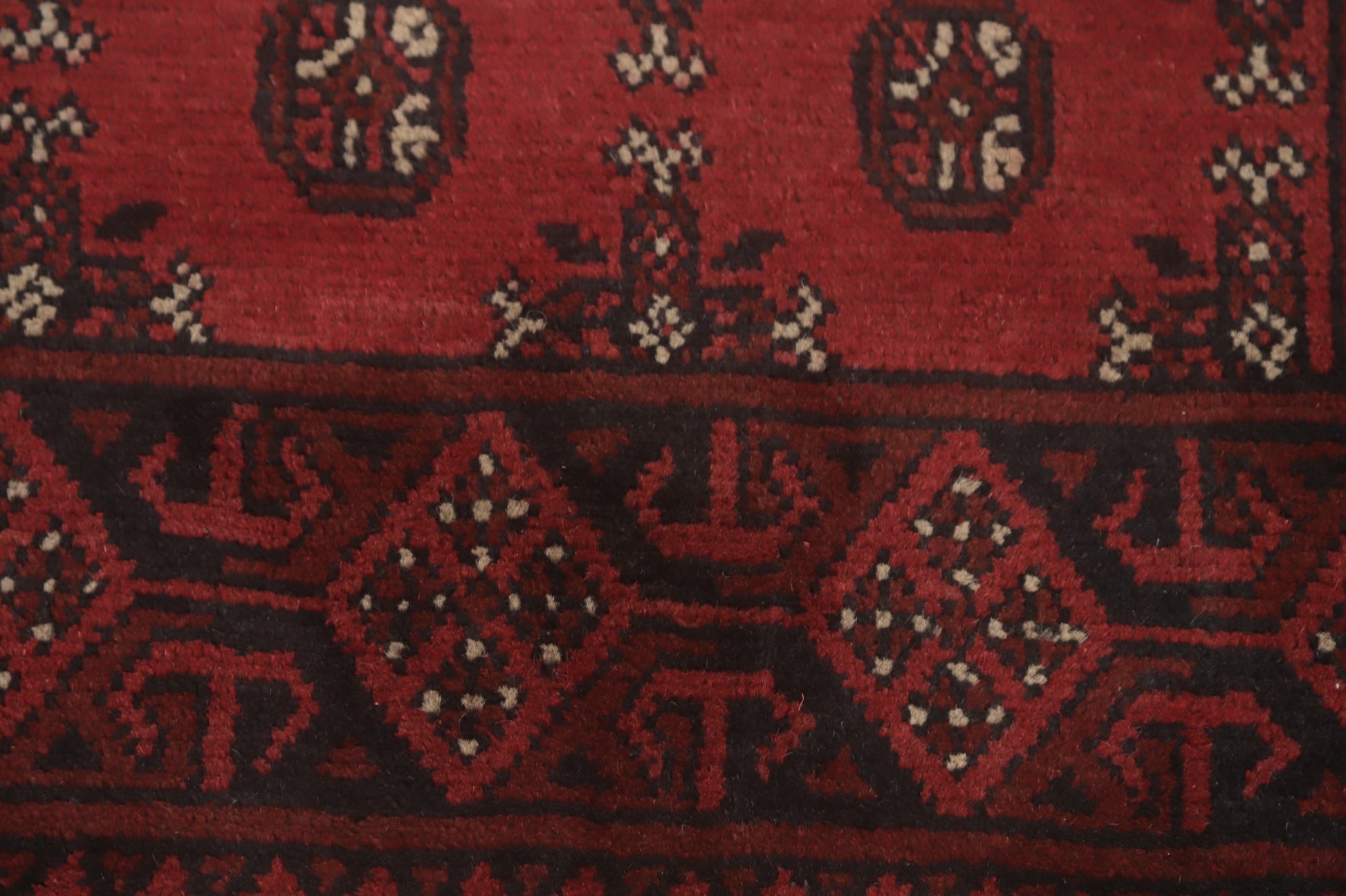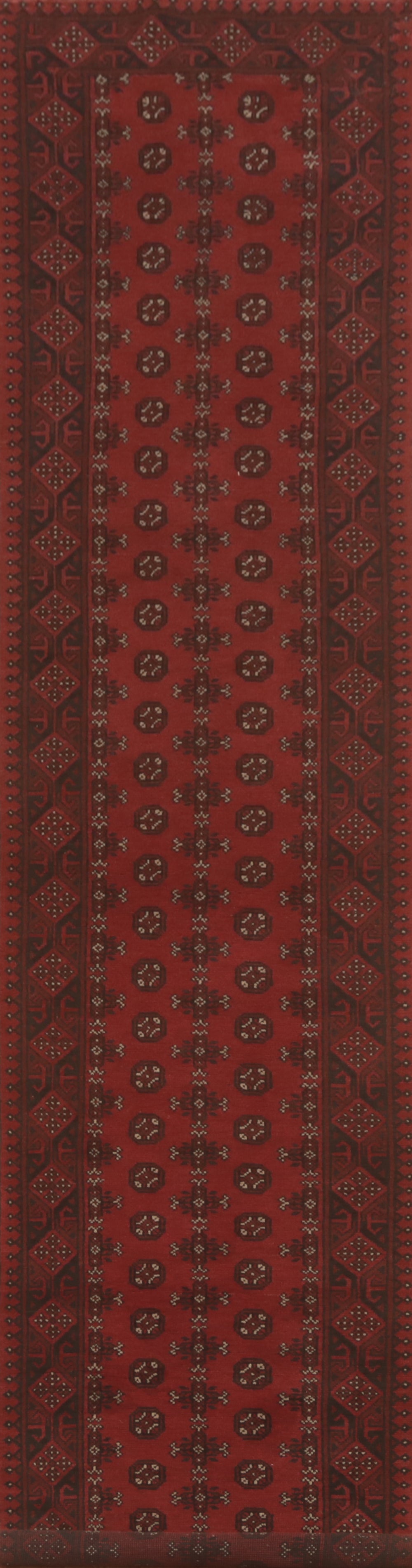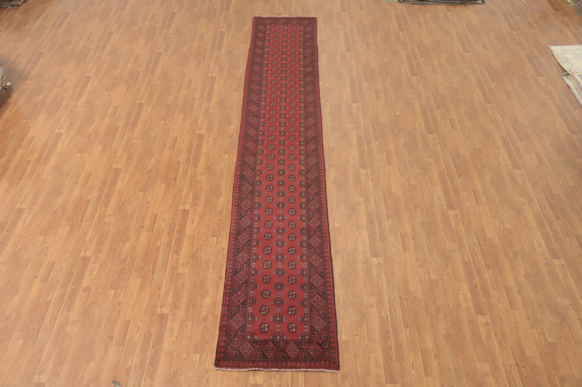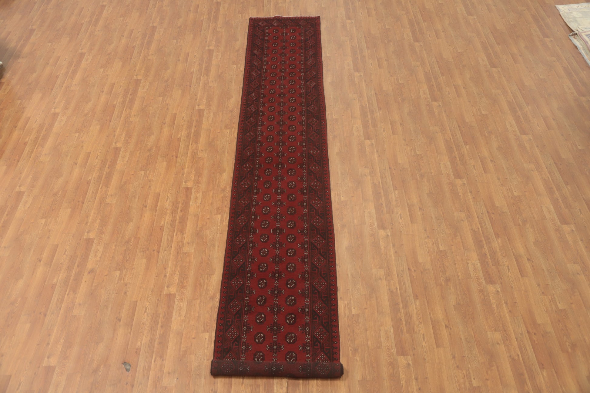 A Beautiful Genuine Afghanistan Balouch rug is Hand Knotted by skillful weavers in Afghanistan with 100% Wool Material. This rug is in New, First Quality condition. dimensions are 15' 7'' X 2' 7'' in foot and 475 X 79 in centimeter. the primary color is Red.
