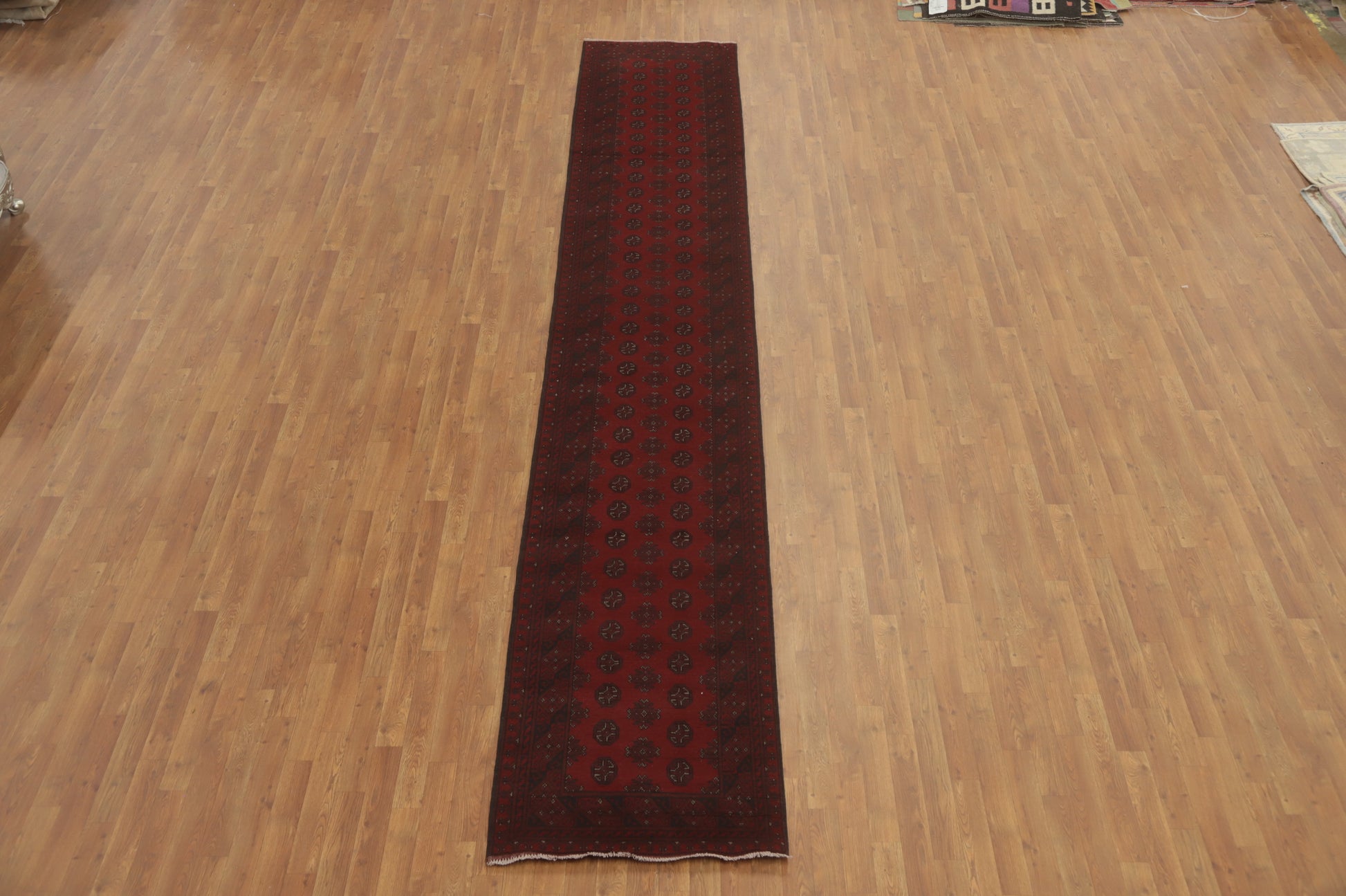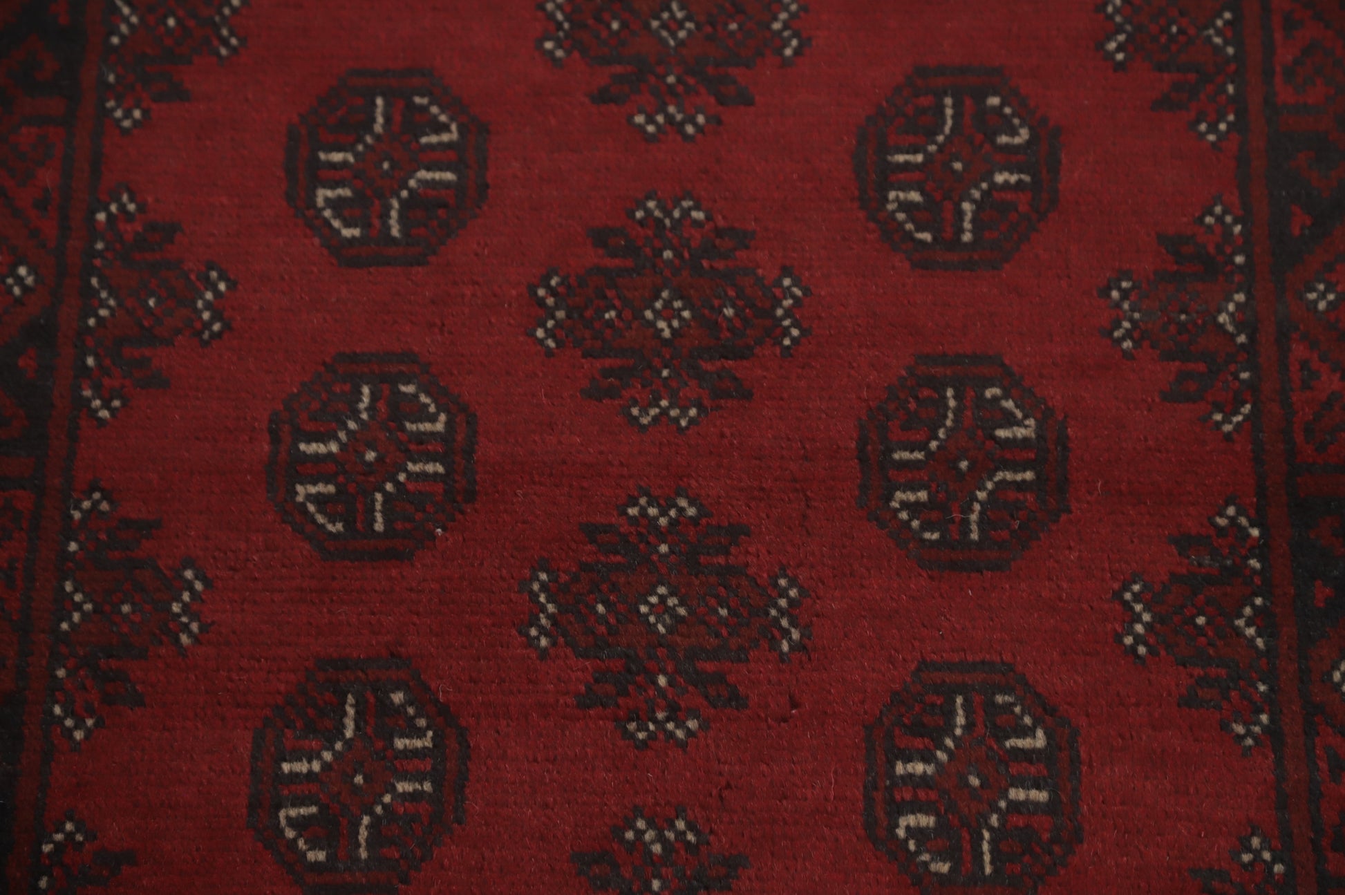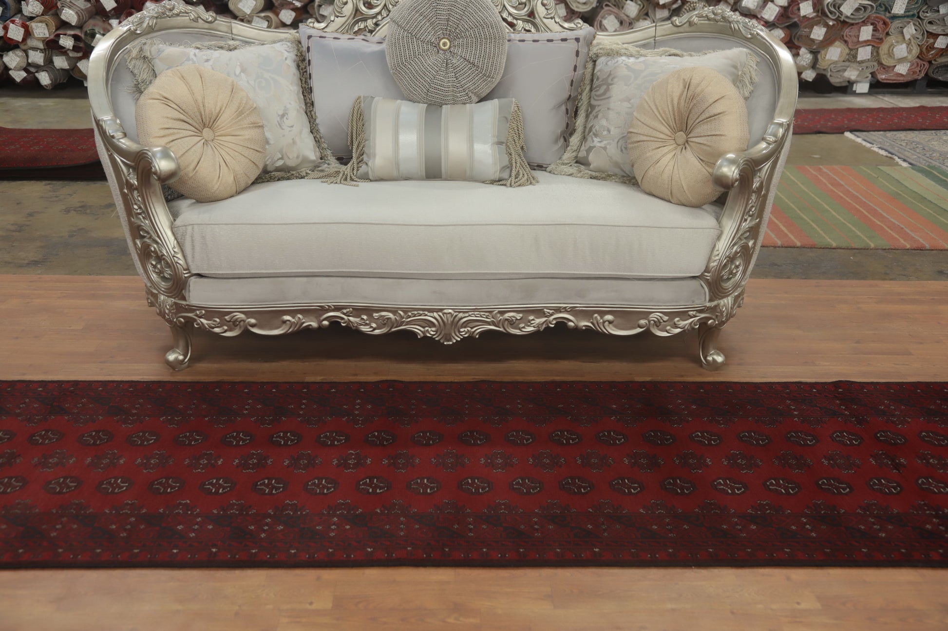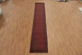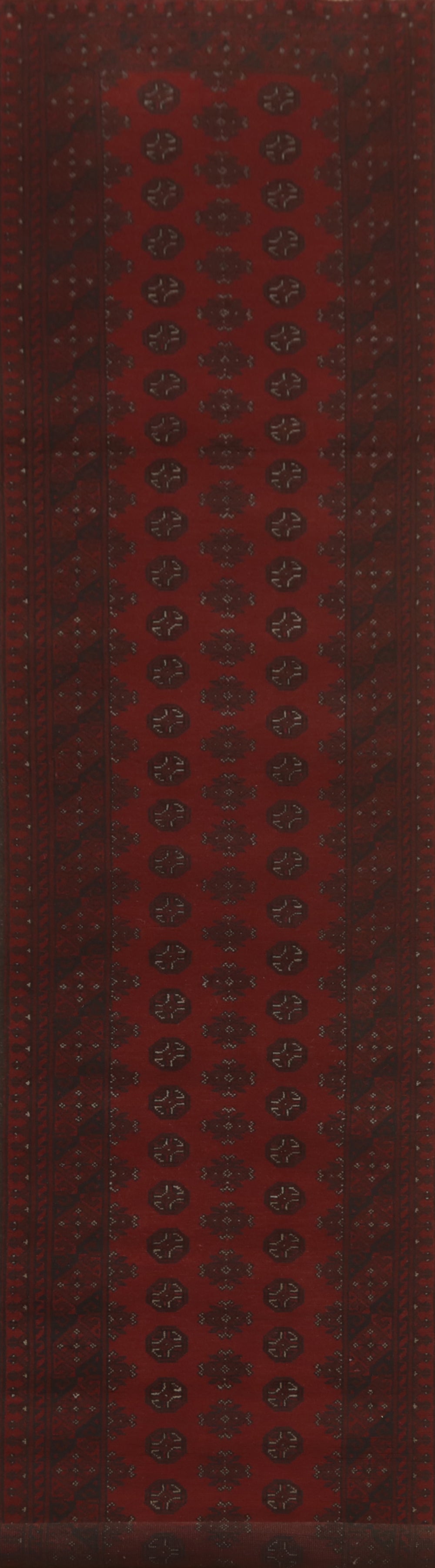 A Beautiful Genuine Afghanistan Balouch rug is Hand Knotted by skillful weavers in Afghanistan with 100% Wool Material. This rug is in New, First Quality condition. dimensions are 15' 8'' X 2' 9'' in foot and 478 X 84 in centimeter. the primary color is Red.