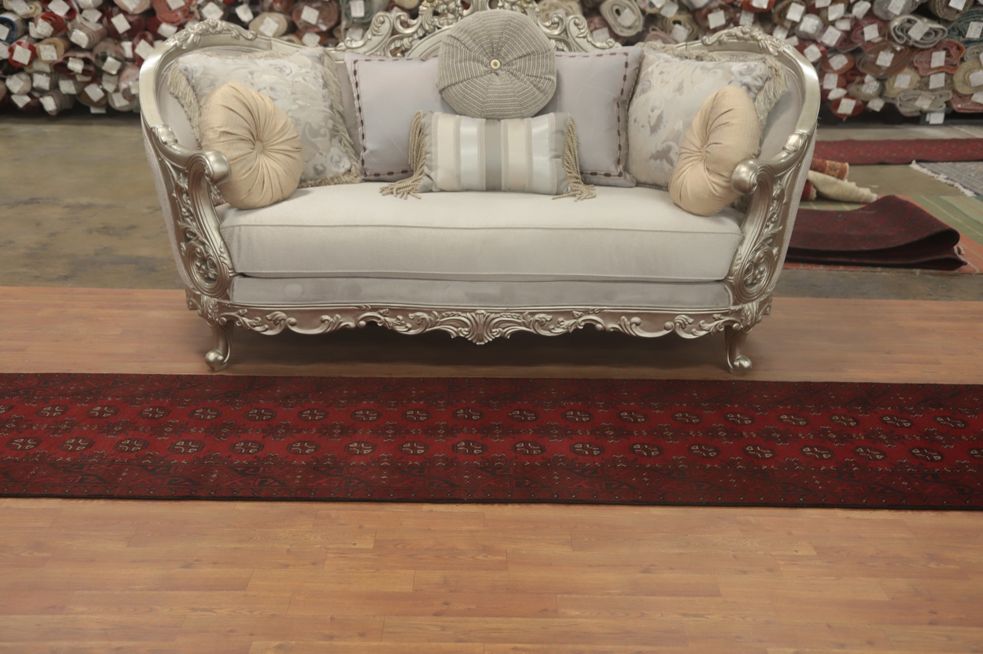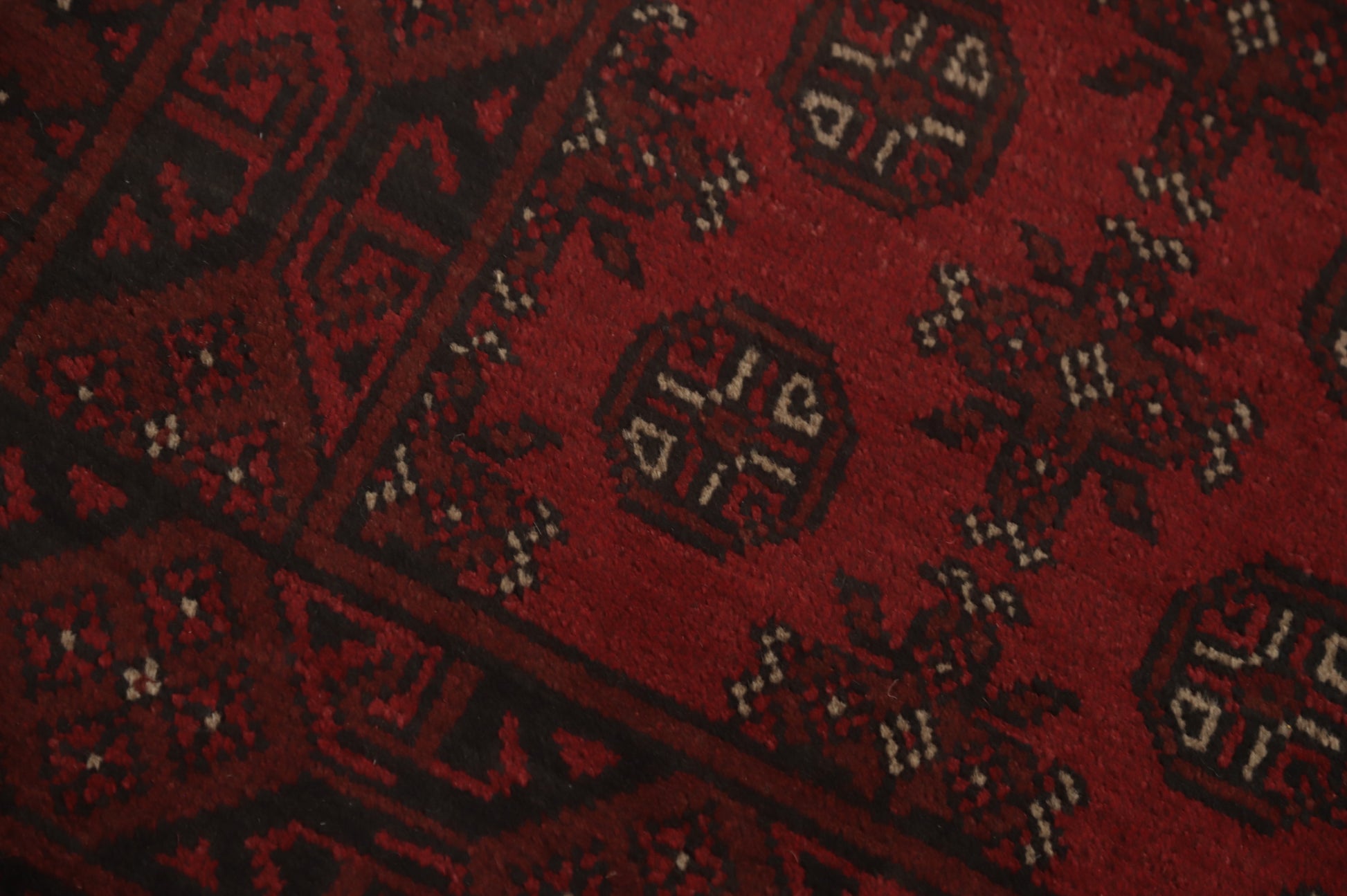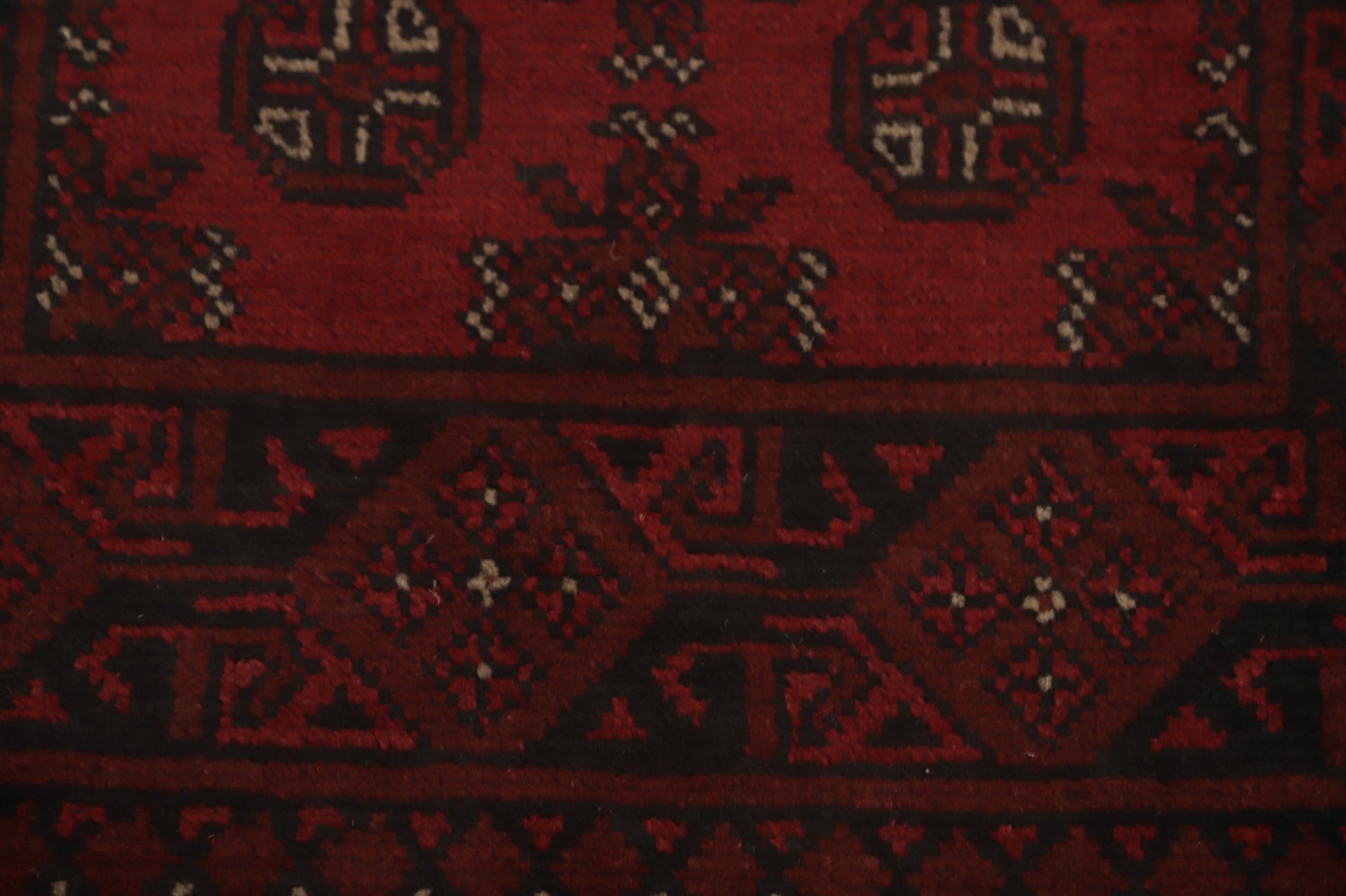 A Beautiful Genuine Afghanistan Balouch rug is Hand Knotted by skillful weavers in Afghanistan with 100% Wool Material. This rug is in New, First Quality condition. dimensions are 18' 6'' X 2' 6'' in foot and 564 X 76 in centimeter. the primary color is Red.