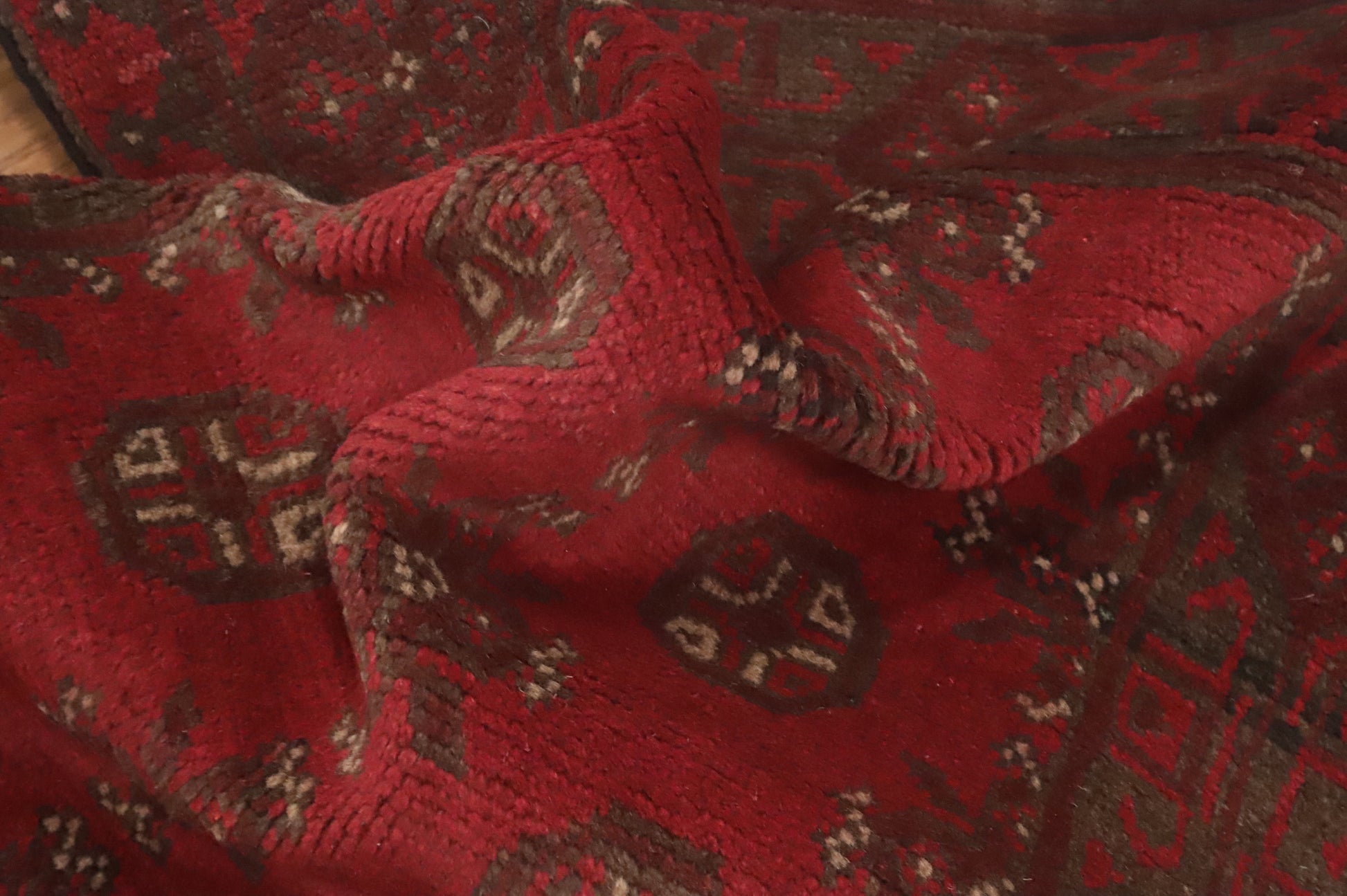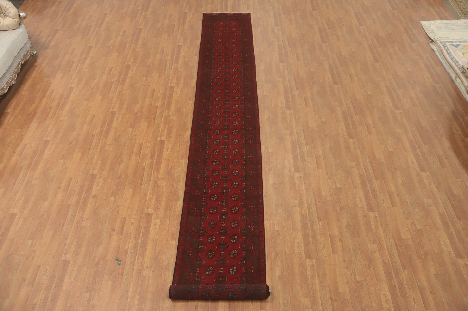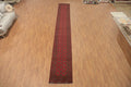 A Beautiful Genuine Afghanistan Balouch rug is Hand Knotted by skillful weavers in Afghanistan with 100% Wool Material. This rug is in New, First Quality condition. dimensions are 18' 7'' X 2' 7'' in foot and 566 X 79 in centimeter. the primary color is Red.