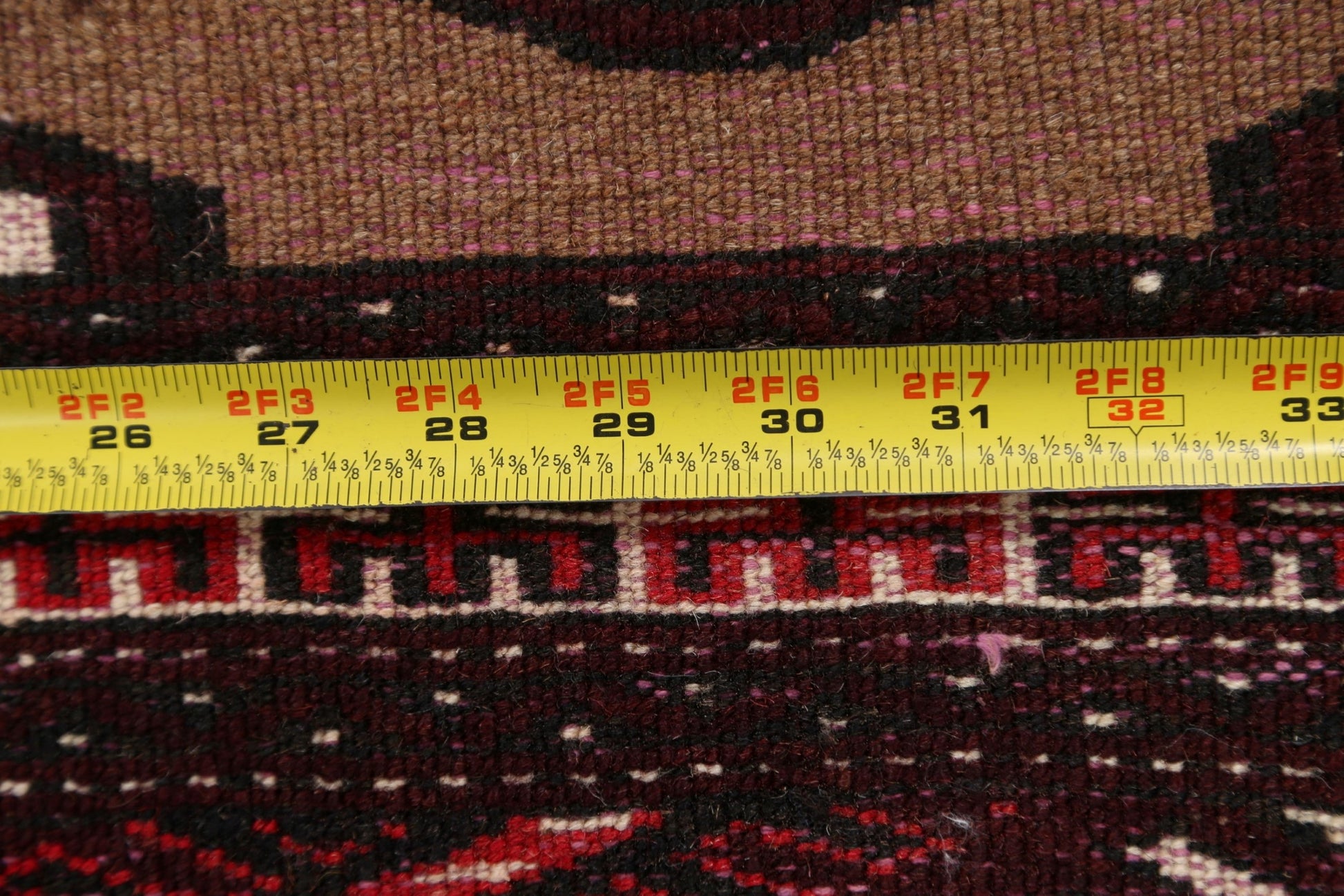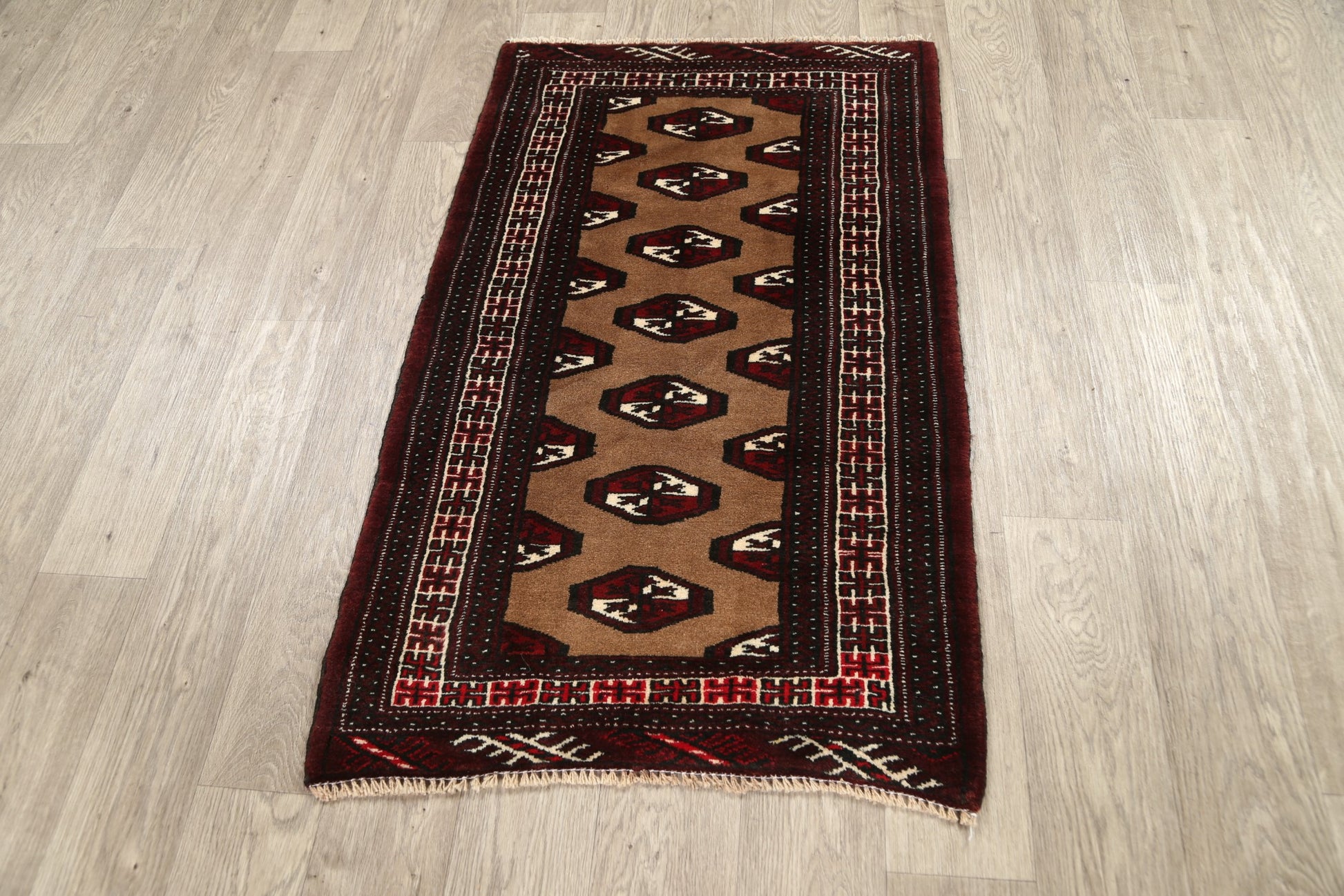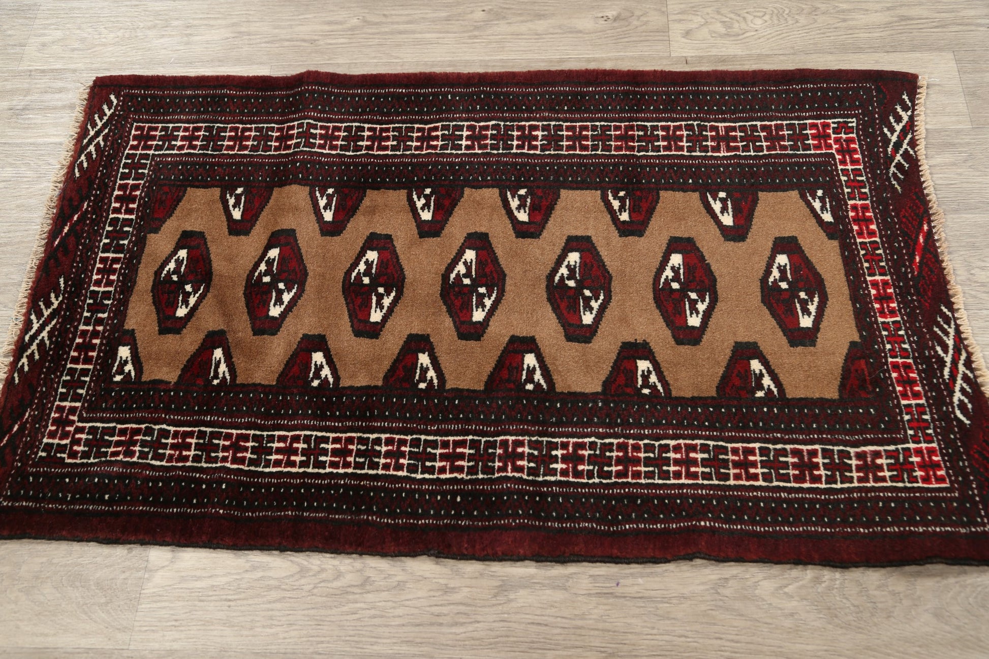 A Beautiful Genuine Persia ( Persia ) Balouch rug is Hand Knotted by skillful weavers in Persia ( Persia ) with 100% Wool Material. This rug is in New, First Quality condition. dimensions are 3' 11'' X 2' 4'' in foot and 119 X 71 in centimeter. the primary color is Brown.